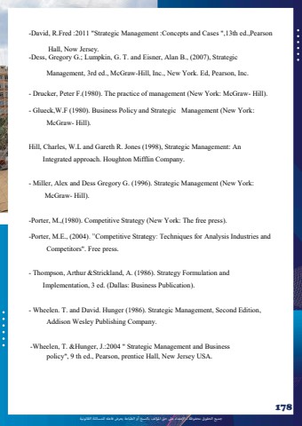 %u062c%u0645%u064a%u0639 %u0627%u0644%u062d%u0642%u0648%u0642 %u0645%u062d%u0641%u0648%u0638%u0629 %u0640 %u0627%u0625%u0644%u0639%u062a%u062f%u0627%u0621 %u0639%u0649%u0644 %u062d%u0642 %u0627%u0645%u0644%u0624%u0644%u0641 %u0628%u0627%u0644%u0646%u0633%u062e %u0623%u0648 %u0627%u0644%u0637%u0628%u0627%u0639%u0629 %u064a%u0639%u0631%u0636 %u0641%u0627%u0639%u0644%u0647 %u0644%u0644%u0645%u0633%u0627%u0626%u0644%u0629 %u0627%u0644%u0642%u0627%u0646%u0648%u0646%u064a%u0629178 Pearson.,ed 13th \,Cases and Concepts :Management Strategic \2011 :Fred.R, David- .Jersey Now, Hall Strategic), 2007., (B Alan, Eisner and. T. G, Lumpkin.; G Gregory, Dess-.Inc, Pearson, Ed. York New., Inc, Hill-McGraw., ed 3rd, Management .(Hill- McGraw: York New (management of practice The). 1980.(F Peter, Drucker- :York New (Management Strategic and Policy Business). 1980 (F.W,Glueck- .(Hill- McGraw An: Management Strategic), 1998 (Jones. R Gareth and L.W, Charles, Hill.Company Mifflin Houghton. approach Integrated :York New (Management Strategic). 1996. (G Gregory Dess and Alex, Miller- .(Hill- McGraw .(press free The: York New (Strategy Competitive). 1980.,(M, Porter-and Industries Analysis for Techniques: Strategy Competitive). %u201d2004., (E.M, Porter-.press Free\. Competitors and Formulation Strategy). 1986. (A, Strickland &Arthur, Thompson- .(Publication Business: Dallas. (ed 3, Implementation ,Edition Second, Management Strategic). 1986 (Hunger. David and. T. Wheelen- .Company Publishing Wesley Addison Business and Management Strategic \ 2004.:J, Hunger. &T, Wheelen -.USA Jersey New, Hall prentice, Pearson., ed th 9\, policy