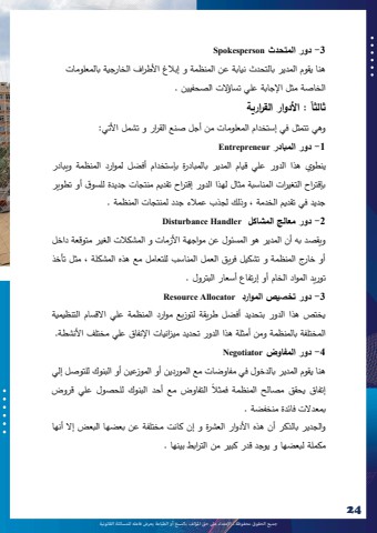 %u062c%u0645%u064a%u0639 %u0627%u0644%u062d%u0642%u0648%u0642 %u0645%u062d%u0641%u0648%u0638%u0629 %u0640 %u0627%u0625%u0644%u0639%u062a%u062f%u0627%u0621 %u0639%u0649%u0644 %u062d%u0642 %u0627%u0645%u0644%u0624%u0644%u0641 %u0628%u0627%u0644%u0646%u0633%u062e %u0623%u0648 %u0627%u0644%u0637%u0628%u0627%u0639%u0629 %u064a%u0639%u0631%u0636 %u0641%u0627%u0639%u0644%u0647 %u0644%u0644%u0645%u0633%u0627%u0626%u0644%u0629 %u0627%u0644%u0642%u0627%u0646%u0648%u0646%u064a%u062924193 -%u062f%u0648%u0631 %u0627%u0644%u0645%u062a%u062d%u062f%u062b Spokesperson%u0647%u0646%u0627 %u064a%u0642%u0648%u0645 %u0627%u0644%u0645%u062f%u064a%u0631 %u0628%u0627%u0644%u062a%u062d%u062f%u062b %u0646%u064a%u0627%u0628%u0629 %u0639%u0646 %u0627%u0644%u0645%u0646%u0638%u0645%u0629 %u0648 %u0625%u0628%u0627%u0644%u063a %u0627%u0623%u0644%u0637%u0631%u0627%u0641 %u0627%u0644%u062e%u0627%u0631%u062c%u064a%u0629 %u0628%u0627%u0644%u0645%u0639%u0644%u0648%u0645%u0627%u062a %u0627%u0644%u062e%u0627%u0635%u0629 %u0645%u062b%u0644 %u0627%u0625%u0644%u062c%u0627%u0628%u0629 %u0639%u0644%u064a %u062a%u0633%u0627%u0624%u0627%u0644%u062a %u0627%u0644%u0635%u062d%u0641%u064a%u064a%u0646 . %u064b : %u0627%u0623%u0644%u062f%u0648%u0627%u0631 %u0627%u0644%u0642 %u0627%u0631%u0631%u064a%u0629%u062b%u0627%u0644%u062b%u0627%u0648%u0647%u064a %u062a%u062a%u0645%u062b%u0644 %u0641%u064a %u0625%u0633%u062a%u062e%u062f%u0627%u0645 %u0627%u0644%u0645%u0639%u0644%u0648%u0645%u0627%u062a %u0645%u0646 %u0623%u062c%u0644 %u0635%u0646%u0639 %u0627%u0644%u0642%u0631%u0627%u0631 %u0648 %u062a%u0634%u0645%u0644 %u0627%u0623%u0644%u062a%u064a: 1 -%u062f%u0648%u0631 %u0627%u0644%u0645%u0628%u0627%u062f%u0631 Entrepreneur%u064a%u0646%u0637%u0648%u064a %u0647%u0630%u0627 %u0627%u0644%u062f%u0648%u0631 %u0639%u0644%u064a %u0642%u064a%u0627%u0645 %u0627%u0644%u0645%u062f%u064a%u0631 %u0628%u0627%u0644%u0645%u0628%u0627%u062f%u0631%u0629 %u0628%u0625%u0633%u062a%u062e%u062f%u0627%u0645 %u0623%u0641%u0636%u0644 %u0644%u0645%u0648%u0627%u0631%u062f %u0627%u0644%u0645%u0646%u0638%u0645%u0629 %u0648%u064a%u0628%u0627%u062f%u0631%u0628%u0625%u0642%u062a%u0631%u0627%u062d %u0627%u0644%u062a%u063a%u064a%u0631%u0627%u062a %u0627%u0644%u0645%u0646%u0627%u0633%u0628%u0629 %u0645%u062b%u0627%u0644 %u0644%u0647%u0630%u0627 %u0627%u0644%u062f%u0648%u0631 %u0625%u0642%u062a%u0631%u0627%u062d %u062a%u0642%u062f%u064a%u0645 %u0645%u0646%u062a%u062c%u0627%u062a %u062c%u062f%u064a%u062f%u0629 %u0644%u0644%u0633%u0648%u0642 %u0623%u0648 %u062a%u0637%u0648%u064a%u0631%u062c%u062f%u064a%u062f %u0641%u064a %u062a%u0642%u062f%u064a%u0645 %u0627%u0644%u062e%u062f%u0645%u0629 %u060c %u0648%u0630%u0644%u0643 %u0644%u062c%u0630%u0628 %u0639%u0645%u0627%u0644%u0621 %u062c%u062f%u062f %u0644%u0645%u0646%u062a%u062c%u0627%u062a %u0627%u0644%u0645%u0646%u0638%u0645%u0629 .2 -%u062f%u0648%u0631 %u0645%u0639%u0627%u0644%u062c %u0627%u0644%u0645%u0634%u0627%u0643%u0644 Handler Disturbance%u0648%u064a%u0642%u0635%u062f %u0628%u0647 %u0623%u0646 %u0627%u0644%u0645%u062f%u064a%u0631 %u0647%u0648 %u0627%u0644%u0645%u0633%u0626%u0648%u0644 %u0639%u0646 %u0645%u0648%u0627%u062c%u0647%u0629 %u0627%u0623%u0644%u0632%u0645%u0627%u062a %u0648 %u0627%u0644%u0645%u0634%u0643%u0627%u0644%u062a %u0627%u0644%u063a%u064a%u0631 %u0645%u062a%u0648%u0642%u0639%u0629 %u062f%u0627%u062e%u0644 %u0623%u0648 %u062e%u0627%u0631%u062c %u0627%u0644%u0645%u0646%u0638%u0645%u0629 %u0648 %u062a%u0634%u0643%u064a%u0644 %u0641%u0631%u064a%u0642 %u0627%u0644%u0639%u0645%u0644 %u0627%u0644%u0645%u0646%u0627%u0633%u0628 %u0644%u0644%u062a%u0639%u0627%u0645%u0644 %u0645%u0639 %u0647%u0630%u0647 %u0627%u0644%u0645%u0634%u0643%u0644%u0629 %u060c %u0645%u062b%u0644 %u062a%u0623%u062e%u0630 %u062a%u0648%u0631%u064a%u062f %u0627%u0644%u0645%u0648%u0627%u062f %u0627%u0644%u062e%u0627%u0645 %u0623%u0648 %u0625%u0631%u062a%u0641%u0627%u0639 %u0623%u0633%u0639%u0627%u0631 %u0627%u0644%u0628%u062a%u0631%u0648%u0644 . 3 -%u062f%u0648%u0631 %u062a%u062e%u0635%u064a%u0635 %u0627%u0644%u0645%u0648%u0627%u0631%u062f Allocator Resource%u064a%u062e%u062a%u0635 %u0647%u0630%u0627 %u0627%u0644%u062f%u0648%u0631 %u0628%u062a%u062d%u062f%u064a%u062f %u0623%u0641%u0636%u0644 %u0637%u0631%u064a%u0642%u0629 %u0644%u062a%u0648%u0632%u064a%u0639 %u0645%u0648%u0627%u0631%u062f %u0627%u0644%u0645%u0646%u0638%u0645%u0629 %u0639%u0644%u064a %u0627%u0627%u0644%u0642%u0633%u0627%u0645 %u0627%u0644%u062a%u0646%u0638%u064a%u0645%u064a%u0629 %u0627%u0644%u0645%u062e%u062a%u0644%u0641%u0629 %u0628%u0627%u0644%u0645%u0646%u0638%u0645%u0629 %u0648%u0645%u0646 %u0623%u0645%u062b%u0644%u0629 %u0647%u0630%u0627 %u0627%u0644%u062f%u0648%u0631 %u062a%u062d%u062f%u064a%u062f %u0645%u064a%u0632%u0627%u0646%u064a%u0627%u062a %u0627%u0625%u0644%u0646%u0641%u0627%u0642 %u0639%u0644%u064a %u0645%u062e%u062a%u0644%u0641 %u0627%u0623%u0644%u0646%u0634%u0637%u0629.4 -%u062f%u0648%u0631 %u0627%u0644%u0645 %u0641%u0627%u0648%u0636 Negotiator%u0647%u0646%u0627 %u064a%u0642%u0648%u0645 %u0627%u0644%u0645%u062f%u064a%u0631 %u0628%u0627%u0644%u062f%u062e%u0648%u0644 %u0641%u064a %u0645%u0641%u0627%u0648%u0636%u0627%u062a %u0645%u0639 %u0627%u0644%u0645%u0648%u0631%u062f%u064a%u0646 %u0623%u0648 %u0627%u0644%u0645%u0648%u0632%u0639%u064a%u0646 %u0623%u0648 %u0627%u0644%u0628%u0646%u0648%u0643 %u0644%u0644%u062a%u0648%u0635%u0644 %u0625%u0644%u064a %u064b %u0627%u0644%u062a%u0641%u0627%u0648%u0636 %u0645%u0639 %u0623%u062d%u062f %u0627%u0644%u0628%u0646%u0648%u0643 %u0644%u0644%u062d%u0635%u0648%u0644 %u0639%u0644%u064a %u0642%u0631%u0648%u0636 %u0625%u062a%u0641%u0627%u0642 %u064a%u062d%u0642%u0642 %u0645%u0635%u0627%u0644%u062d %u0627%u0644%u0645%u0646%u0638%u0645%u0629 %u0641%u0645%u062b%u0627%u0644%u0628%u0645%u0639%u062f%u0627%u0644%u062a %u0641%u0627%u0626%u062f%u0629 %u0645%u0646%u062e%u0641%u0636%u0629 . %u0648%u0627%u0644%u062c%u062f%u064a%u0631 %u0628%u0627%u0644%u0630%u0643%u0631 %u0623%u0646 %u0647%u0630%u0647 %u0627%u0623%u0644%u062f%u0648%u0627%u0631 %u0627%u0644