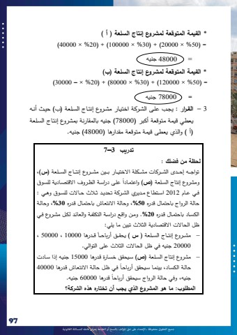 %u062c%u0645%u064a%u0639 %u0627%u0644%u062d%u0642%u0648%u0642 %u0645%u062d%u0641%u0648%u0638%u0629 %u0640 %u0627%u0625%u0644%u0639%u062a%u062f%u0627%u0621 %u0639%u0649%u0644 %u062d%u0642 %u0627%u0645%u0644%u0624%u0644%u0641 %u0628%u0627%u0644%u0646%u0633%u062e %u0623%u0648 %u0627%u0644%u0637%u0628%u0627%u0639%u0629 %u064a%u0639%u0631%u0636 %u0641%u0627%u0639%u0644%u0647 %u0644%u0644%u0645%u0633%u0627%u0626%u0644%u0629 %u0627%u0644%u0642%u0627%u0646%u0648%u0646%u064a%u062997* %u0627%u0644%u0642%u064a%u0645%u0629 %u0627%u0644%u0645%u062a%u0648%u0642 %u0629 %u0644%u0645%u0634%u0631%u0648%u0639 %u0625%u0646%u062a%u0627%u062c %u0627%u0644%u0633%u0645 %u0629 ) %u0623 (= )51 %u00d7 %21111( + )31 %u00d7 %111111( + )21 %u00d7 %41111)= 48111 %u062c%u0646%u064d%u0648* %u0627%u0644%u0642%u064a%u0645%u0629 %u0627%u0644%u0645%u062a%u0648%u0642 %u0629 %u0644%u0645%u0634%u0631%u0648%u0639 %u0625%u0646%u062a%u0627%u062c %u0627%u0644%u0633%u0645 %u0629 )%u0628(= )51 %u00d7 %121111( + )31 %u00d7 %81111( + )21 %u2013 %u00d7 %31111)= 78111 %u062c%u0646%u064a%u06473 %u2013 %u0627%u0644%u0642%u0627%u0631%u0627%u0631 : %u064a%u062c%u0640%u0628 %u0639%u0645%u0640%u0649 %u0627%u0644%u0634%u0640%u0631%u0643%u0629 %u0627%u062e%u062a%u064a%u0640%u0627%u0631 %u0645%u0634%u0640%u0631%u0648%u0639 %u0625%u0646%u062a%u0640%u0627%u062c %u0627%u0644%u0633%u0640%u0645%u0639%u0629 )%u0628( %u062d%u064a%u0640%u062b %u0623%u0646%u0640%u0647 %u064a%u0639%u0637%u064a %u0642%u064a%u0645%u0629 %u0645%u062a%u0648%u0642%u0639%u0629 %u0623%u0643%u0628%u0631 )78111 )%u062c%u0646%u064a%u0647 %u0628%u0627%u0644%u0645%u0642%u0627%u0631%u0646%u0629 %u0628%u0645%u0634%u0631%u0648%u0639 %u0625%u0646%u062a%u0640%u0627%u062c %u0627%u0644%u0633%u0640%u0645%u0639%u0629 )%u0623 ( %u0648%u0627%u0644%u0630 %u064a%u0639%u0637%u0649 %u0642%u064a%u0645%u0629 %u0645%u062a%u0648%u0642%u0639%u0629 %u0645%u0642%u062f%u0627%u0631%u0647%u0627 )48111 )%u062c%u0646%u064a%u0647.%u062a%u062f%u0631%u064a%u0628 7%uf02d3%u0644%u062d%u0638%u0629 %u0645%u0646 %u0641%u0636%u0645%u0643 :%u062a%u0648%u0627%u062c%u0640%u0640%u0640%u0647 %u0625%u062d%u0640%u0640%u0640%u062f%u0649 %u0627%u0644%u0634%u0640%u0640%u0640%u0631%u0643%u0627%u062a %u0645%u0634%u0640%u0640%u0640%u0643%u0645%u0629 %u0627%u0627%u0644%u062e%u062a%u064a%u0640%u0640%u0640%u0627%u0631 %u0628%u0640%u0640%u0640%u064a%u0646 %u0645%u0634%u0640%u0640%u0640%u0631%u0648%u0639 %u0625%u0646%u062a%u0640%u0640%u0640%u0627%u062c %u0627%u0644%u0633%u0640%u0640%u0640%u0645%u0639%u0629 )%u0633(%u060c %u064b %u0639%u0645%u0640%u0649 %u062f %u0627%u0631%u0633%u0640%u0629 %u0627%u0644%u0638%u0640%u0631%u0648%u0641 %u0627%u0627%u0644%u0642%u062a%u0635%u0640%u0627%u062f%u064a%u0629 %u0644%u0645%u0633%u0640%u0648%u0642%u0648%u0645%u0634%u0631%u0648%u0639 %u0625%u0646%u062a%u0627%u062c %u0627%u0644%u0633%u0640%u0645%u0639%u0629 )%u0635( %u0648%u0627%u0639%u062a%u0645%u0640%u0627%u062f%u0627%u0641%u0640%u0640%u064a %u0639%u0640%u0640%u0627%u0645 2112 %u0627%u0633%u0640%u0640%u062a%u0637%u0627%u0639 %u0645%u0640%u0640%u062f%u064a%u0631 %u0627%u0644%u0634%u0640%u0640%u0631%u0643%u0629 %u062a%u062d%u062f%u064a%u0640%u0640%u062f %u062b%u0640%u0640%u0627%u0644%u062b %u062d%u0640%u0640%u0627%u0627%u0644%u062a %u0644%u0645%u0633%u0640%u0640%u0648%u0642 %u0648%u0647%u0640%u0640%u064a :%u062d%u0627%u0644%u0629 %u0627%u0644%u0631%u0648%u0627%u062c %u0628%u0627%u062d%u062a%u0645%u0627%u0644 %u0642%u062f%u0631%u0627 55 %u060c%%u0648%u062d%u0627%u0644%u0629 %u0627%u0627%u0644%u0646%u062a%u0639%u0640%u0627%u0634 %u0628%u0627%u062d%u062a%u0645%u0640%u0627%u0644 %u0642%u0640%u062f%u0631%u0627 35 %u060c%%u0648%u062d%u0627%u0644%u0640%u0629 %u0627%u0644%u0643%u0633%u0640%u0627%u062f %u0628%u0627%u062d%u062a%u0645%u0640%u0627%u0644 %u0642%u0640%u062f%u0631%u0627 25 .%%u0648%u0645%u0640%u0646 %u0648%u0627%u0642%u0640%u0639 %u062f%u0631%u0627%u0633%u0640%u0629 %u0627%u0644%u062a%u0643%u0645%u0641%u0640%u0629 %u0648%u0627%u0644%u0639%u0627%u0626%u0640%u062f %u0644%u0643%u0640%u0644 %u0645%u0634%u0640%u0631%u0648%u0639 %u0641%u0640%u064a %u0638%u0644 %u0627%u0644%u062d%u0627%u0627%u0644%u062a %u0627%u0627%u0644%u0642%u062a%u0635%u0627%u062f%u064a%u0629 %u0627%u0644%u062b%u0627%u0644%u062b %u062a%u0628%u064a%u0646 %u0645%u0627 %u064a%u0645%u064a:%u064b %u0642%u0640%u0640%u0640%u062f%u0631%u0647%u0627 11111 51111 %u2013 %u0645%u0634%u0640%u0640%u0640%u0631%u0648%u0639 %u0625%u0646%u062a%u0640%u0640%u0640%u0627%u062c %u0627%u0644%u0633%u0640%u0640%u0640%u0645%u0639%u0629 ) %u0633 ( %u064a%u062d%u0642%u0640%u0640%u0640%u063a %u0623%u0631%u0628%u0627%u062d%u0640%u0640%u0640%u062721111 %u062c%u0646%u064a%u0647 %u0641%u064a %u0638%u0644 %u0627%u0644%u062d%u0627%u0627%u0644%u062a %u0627%u0644%u062b%u0627%u0644%u062b %u0639%u0645%u0649 %u0627%u0644%u062a%u0648%u0627%u0644%u064a.%u2013 %u0645%u0634%u0631%u0648%u0639 %u0625%u0646%u062a%u0627%u062c %u0627%u0644%u0633%u0640%u0645%u0639%u0629 )%u0635( %u0633%u0640%u064a%u062d%u0642%u063a %u062e%u0633%u0640%u0627%u0631%u0629 %u0642%u0640%u062f%u0631%u0647%u0627 15111 %u062c%u0646%u064a%u0640%u0647 %u0625%u0630%u0627 %u0633%u0640%u0627%u062f%u062a %u062d%u0627%u0644%u0640%u0629 %u0627%u0644%u0643%u0633%u0640%u0627%u062f %u0628%u064a%u0646%u0645%u0640%u0627 %u0633%u0640%u064a%u062d%u0642%u063a %u0623%u0631%u0628%u0627%u062d%u0640%u0627 %u0642%u0640%u062f%u0631%u0647%u0627 41111 %u064b %u0641%u0640%u064a %u0638%u0640%u0644 %u062d%u0627%u0644%u0640%u0629 %u0627%u0627%u0644%u0646%u062a%u0639%u0640%u0627%u0634%u062c%u0646%u064a%u0647 %u0648%u0641%u064a %u062d%u0627%u0644%u0629 %u0627%u0644%u0631%u0648%u0627%u062c %u0633%u064a%u062d%u0642%u063a %u0623%u0631%u0628%u0627%u062d%u0627 61111 %u062c%u0646%u064a%u0647. %u064b %u0642%u062f%u0631%u0647%u0627%u0627%u0644%u0645%u0637%u0645%u0648%u0628: %u0645%u0627 %u0649%u0648 %u0627%u0644%u0645%u0634%u0631%u0648%u0639 %u0627%u0644%u0630%u064a %u064a %u0628 %u0623%u0646 %u062a%u062e%u062a%u0627%u0631%u0647 %u0649%u0630%u0647 %u0627%u0644%u0634%u0631%u0643%u0629%u061f