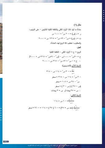 %u062c%u0645%u064a%u0639 %u0627%u0644%u062d%u0642%u0648%u0642 %u0645%u062d%u0641%u0648%u0638%u0629 %u0640 %u0627%u0625%u0644%u0639%u062a%u062f%u0627%u0621 %u0639%u0649%u0644 %u062d%u0642 %u0627%u0645%u0644%u0624%u0644%u0641 %u0628%u0627%u0644%u0646%u0633%u062e %u0623%u0648 %u0627%u0644%u0637%u0628%u0627%u0639%u0629 %u064a%u0639%u0631%u0636 %u0641%u0627%u0639%u0644%u0647 %u0644%u0644%u0645%u0633%u0627%u0626%u0644%u0629 %u0627%u0644%u0642%u0627%u0646%u0648%u0646%u064a%u0629210210%u0645%u062b%u0627%u0644 )6 )%u0645%u0646%u0634%u0623%u0629 %u0645%u0627 %u0644%u0647%u0627 %u062f%u0627%u0644%u062a%u0627 %u0627%u0625%u0644%u064a%u0631%u0627%u062f %u0627%u0644%u0643%u0644%u0649 %u0648%u0627%u0644%u062a%u0643%u0644%u0641%u0629 %u0627%u0644%u0643%u0644%u064a%u0629 %u0627%u0644%u062a%u0627%u0644%u064a%u062a%u064a%u0646 - %u0639%u0644%u0649 %u0627%u0644%u062a%u0631%u062a%u064a%u0628: 2 %u0631 = %u062f )%u0633( = - 2 %u0633+ 1000 %u06333 %u062a = %u062f )%u0633( = %u0633+ 1315 %u0633 + 2000 2 - 59 %u0633%u0648%u0627%u0644%u0645%u0637%u0644%u0648%u0628: %u062a%u0639%u0638%u064a%u0645 %u062f%u0627%u0644%u0629 %u0627%u0644%u0631%u0628%u062d %u0644%u0647%u0630%u0647 %u0627%u0644%u0645%u0646%u0634%u0623%u0629. %u0627%u0644%u062d%u0644: %u0627%u0644%u0631%u0628%u062d = %u062d = %u0627%u0625%u0644%u064a%u0631%u0627%u062f %u0627%u0644%u0643%u0644%u0649 - %u0627%u0644%u062a%u0643%u0644%u0641%u0629 %u0627%u0644%u0643%u0644%u064a%u0629 %u062d = -2%u06333 + 1000%u0633 - ]%u0633 2+ 1315%u0633 + 2000 ]2 - 59%u06332 - 315 %u0633 - 2000 3 + 57 %u0633%uf05c %u062d = - %u0633%u0627%u0644%u0634%u0631%u0637 %u0627%u0644%u0627%u0644%u0632%u0645 )%u0627%u0644%u0636%u0631%u0648%u0631%u064a(: %u062f %u062d = - 3 %u0633 %u062f %u0633+ 114 %u0633 - 315 2+ 114 %u0633 - 315 = %u0635%u0641%u0631 2 - 3 %u0633- 38 %u0633 + 105 = %u0635%u0641%u0631 2 %u0633)%u0633 - 35 ( ) %u0633 - 3 = ) %u0635%u0641%u0631 %uf05c %u0633 = 35 %u0648%u062d%u062f%u0629 %u0623%u0648 %u0633 = 3 %u0648%u062d%u062f%u0627%u062a %u0627%u0644%u0634%u0631%u0637 %u0627%u0644%u0643%u0627%u0641%u064a : %u062d %u062f22= - 6 %u0633 + 114 %u062f %u0633%u062d %u062f22)%u0639%u0646%u062f %u0633 = 35 - = )6 ( 35 + ) 114 - = 96 < %u0635%u0641%u0631 %u062f %u0633