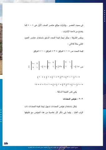 %u062c%u0645%u064a%u0639 %u0627%u0644%u062d%u0642%u0648%u0642 %u0645%u062d%u0641%u0648%u0638%u0629 %u0640 %u0627%u0625%u0644%u0639%u062a%u062f%u0627%u0621 %u0639%u0649%u0644 %u062d%u0642 %u0627%u0645%u0644%u0624%u0644%u0641 %u0628%u0627%u0644%u0646%u0633%u062e %u0623%u0648 %u0627%u0644%u0637%u0628%u0627%u0639%u0629 %u064a%u0639%u0631%u0636 %u0641%u0627%u0639%u0644%u0647 %u0644%u0644%u0645%u0633%u0627%u0626%u0644%u0629 %u0627%u0644%u0642%u0627%u0646%u0648%u0646%u064a%u06292624%u0641%u0649 %u0645%u062d%u064a%u062f%u062f %u0627%u0644%u0639%u0646%u0635%u0631 . %u0648%u0625%u0634%u0627%u0631%u0627%u062a %u0645%u0648%u0627%u0642%u0639 %u0639%u0646%u0627%u0635%u0631 %u0627%u0644%u0635%u0641 %u0627%u0623%u0644%u0648%u0644 %u0647%u0649 + - + %u0643%u0645%u0627 %u064a%u062a%u0636%u062d %u0645%u0646 %u0642%u0627%u0639%u062f%u0629 %u0627%u0625%u0644%u0634%u0627%u0631%u0627%u062a . %u0648%u0628%u0646%u0641%u0633 %u0627%u0644%u0637%u0631%u064a%u0642%u0629 %u060c %u064a%u0645%u0643%u0646 %u0625%u064a%u062c%u0627%u062f %u0642%u064a%u0645%u0629 %u0627%u0644%u0645%u062d%u062f%u062f %u0627%u0644%u0633%u0627%u0628%u0642 %u0628%u0627%u0633%u062a%u062e%u062f%u0627%u0645 %u0639%u0646%u0627%u0635%u0631 %u0627%u0644%u0639%u0645%u0648%u062f %u064b %u0643%u0627%u0622%u0644%u062a%u0649 :%u0627%u0644%u062b%u0627%u0646%u0649 %u0645%u062b%u0627%u0644%u0642%u064a%u0645%u0629 %u0627%u0644%u0645%u062d%u062f%u062f %u0635 = 1 %u00d7 %u0627%u0644%u0645%u0631%u0627%u0641%u0642 + 3 %u00d7 %u0627%u0644%u0645%u0631%u0627%u0641%u0642 - 1 %u00d7 %u0627%u0644%u0645%u0631%u0627%u0641%u0642%u0635 =1+ [ -] 3- [ + ] 1[ -] = -1 ( 1 - 2 + ) 3 ( 2 + 1 + ) 1 ( 4 + 1) = -1- ( 1 + ) 3 ( 3 + ) 1 ( 5 = ) 1 + 9 + 5 = 15%u0648%u0647%u0649 %u0646%u0641%u0633 %u0627%u0644%u0646%u062a%u064a%u062c%u0629 %u0627%u0644%u0633%u0627%u0628%u0642%u0629 . 2-2 : %u062e%u0648%u0627%u0635 %u0627%u0644%u0645%u062d%u062f%u062f%u0627%u062a %u064a %u0630%u0627%u062a %u064f%u0645%u0643%u0646 %u0628%u0627%u0633%u062a%u062e%u062f%u0627%u0645 %u062e%u0648%u0627%u0635 %u0627%u0644%u0645%u062d%u062f%u062f%u0627%u062a %u062a%u0633%u0647%u064a%u0644 %u0625%u064a%u062c%u0627%u062f %u0642%u064a%u0645%u0629 %u0627%u0644%u0645%u062d%u062f%u062f%u0627%u062a%u0627%u0644%u0631%u062a%u0628 %u0627%u0644%u0639%u0644%u064a%u0627 . %u0648%u0641%u064a%u0645%u0627 %u064a%u0644%u0649 %u0646%u0630%u0643%u0631 %u0643%u0644 %u062e%u0627%u0635%u064a%u0629 %u0645%u0646 %u0647%u0630%u0647 %u0627%u0644%u062e%u0648%u0627%u0635 %u0645%u0639 %u062a%u0637%u0628%u064a%u0642%u0647%u0627 2- 11 22- 11 11 21 1