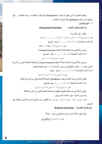 %u062c%u0645%u064a%u0639 %u0627%u0644%u062d%u0642%u0648%u0642 %u0645%u062d%u0641%u0648%u0638%u0629 %u0640 %u0627%u0625%u0644%u0639%u062a%u062f%u0627%u0621 %u0639%u0649%u0644 %u062d%u0642 %u0627%u0645%u0644%u0624%u0644%u0641 %u0628%u0627%u0644%u0646%u0633%u062e %u0623%u0648 %u0627%u0644%u0637%u0628%u0627%u0639%u0629 %u064a%u0639%u0631%u0636 %u0641%u0627%u0639%u0644%u0647 %u0644%u0644%u0645%u0633%u0627%u0626%u0644%u0629 %u0627%u0644%u0642%u0627%u0646%u0648%u0646%u064a%u062942%u0648%u062a%u0646%u0642%u0633%u0645 %u0627%u0644%u0645%u062a%u063a%u064a%u0631%u0627%u062a %u0625%u0644%u0649 %u0645%u062a%u063a%u064a%u0631%u0627%u062a %u0643%u0645%u064a%u0629 Quantitative %u0645%u062b%u0644 %u0623%u0637%u0648%u0627%u0644 %u0627%u0644%u0637%u0627%u0644%u0628%u060c %u062f%u0631%u062c%u0627%u062a %u0627%u0644%u0637%u0627%u0644%u0628 ... %u0627%u0644%u062e%u060c %u0648%u0645%u062a%u063a%u064a%u0631%u0627%u062a %u0646%u0648%u0639%u064a%u0629 Qualitative %u0645%u062b%u0644 %u062a%u0642%u062f%u064a%u0631%u0627%u062a %u0627%u0644%u0637%u0627%u0644%u0628. 2 %u2013 %u0623%u0646%u0648%u0627%u0639 %u0627%u0644%u062f%u0648%u0627%u0644: )%u0623( %u0627%u0644%u062f%u0648%u0627%u0644 %u0643%u062b%u064a%u0631%u0629 %u0627%u0644%u062d%u062f%u0648%u062f: Functions Polynomial%u0648%u062a%u0643%u0648%u0646 %u0639%u0644%u0649 %u0627%u0644%u0635%u0648%u0631%u0629: 3 + ........... + %u0623%u0646 %u0633 %u0646 2 + %u0623 3 %u0633%u0635 = %u062f ) %u0633 ( = %u06230 + %u06231 %u0633 + %u06232 %u0633%u0641%u0625%u0630%u0627 %u0643%u0627%u0646%u062a %u0627%u0644%u0645%u0639%u0627%u0645%u0627%u0644%u062a %u06231 = %u06232 = %u06233 = ......... =%u0635%u0641%u0631 %u062a%u0635%u0628%u062d: %u0635 = %u062f ) %u0633 ( = %u06230 %u062d%u064a%u062b %u06230 = %u062b%u0627%u0628%u062a %u0648%u062a%u0633%u0645%u0649 %u0627%u0644%u062f%u0627%u0644%u0629 %u0641%u064a %u0647%u0630%u0647 %u0627%u0644%u062d%u0627%u0644%u0629 %u0628%u0627%u0644%u062f%u0627%u0644%u0629 %u0627%u0644%u062b%u0627%u0628%u062a%u0629 Function Constant%u0623%u0645%u0627 %u0625%u0630%u0627 %u0643%u0627%u0646%u062a %u0627%u0644%u0645%u0639%u0627%u0645%u0627%u0644%u062a %u0623 2 = %u06233 = ........ = %u0635%u0641%u0631 %u0641%u062a%u0635%u0628%u062d: %u0635 = %u062f ) %u0633 ( = %u06230 + %u06231 %u0633%u0648%u062a%u0633%u0645%u0649 %u0627%u0644%u062f%u0627%u0644%u0629 %u0641%u064a %u0647%u0630%u0647 %u0627%u0644%u062d%u0627%u0644%u0629 %u0628%u0627%u0644%u062f%u0627%u0644%u0629 %u0627%u0644%u062e%u0637%u064a%u0629 Function Linear %u0648%u0627%u0644%u0645%u0639%u0627%u062f%u0644%u0629 %u0627%u0644%u0646%u0627%u062a%u062c%u0629 %u062a%u0643%u0648%u0646 %u0645%u0646 %u0627%u0644%u062f%u0631%u062c%u0629 %u0627%u0623%u0644%u0648%u0644%u0649 %u062d%u064a%u062b: %u06230 = %u0627%u0644%u062c%u0632%u0621 %u0627%u0644%u0645%u0642%u0637%u0648%u0639 %u0645%u0646 %u0645%u062d%u0648%u0631 %u0627%u0644%u0635%u0627%u062f%u0627%u062a%u060c %u06231 = %u0645%u064a%u0644 %u0627%u0644%u062e%u0637 %u0627%u0644%u0645%u0633%u062a%u0642%u064a%u0645. %u0623%u0645%u0627 %u0625%u0630%u0627 %u0643%u0627%u0646%u062a %u0627%u0644%u0645%u0639%u0627%u0645%u0627%u0644%u062a %u0623 3 = %u06234 = ......... = %u0635%u0641%u0631 %u0628%u062d%u064a%u062b:2%u0635 = %u062f ) %u0633 ( = %u06230 + %u06231 %u0633 + %u06232 %u0633%u0641%u062a%u0643%u0648 %u0646 %u0627%u0644%u062f%u0627%u0644%u0629 %u0641%u064a %u0647%u0630%u0647 %u0627%u0644%u062d%u0627%u0644%u0629 %u062a%u0631%u0628%u064a%u0639%u064a%u0629 Quadratic %u0648%u0627%u0644%u0645%u0639%u0627%u062f%u0644%u0629 %u0627%u0644%u0646%u0627%u062a%u062c%u0629 %u062a%u0643%u0648%u0646 %u0645%u0646 %u0627%u0644%u062f%u0631%u062c%u0629 %u0627%u0644%u062b%u0627%u0646%u064a%u0629. %u0623%u0645%u0627 %u0625%u0630%u0627 %u0643%u0627%u0646%u062a %u0627%u0644%u0645%u0639%u0627%u0645%u0627%u0644%u062a %u0623 4 = %u06235 = ........ = %u0635%u0641%u0631 %u0641%u062a%u0635%u0628%u062d: 32 + %u0623 3 %u0633%u0635 = %u062f ) %u0633 ( = %u06230 + %u06231 %u0633 + %u06232 %u0633%u0648%u062a%u0643%u0648%u0646 %u0627%u0644%u062f%u0627%u0644%u0629 %u0641%u064a %u0647%u0630%u0647 %u0627%u0644%u062d%u0627%u0644%u0629 %u062a%u0643%u0639%u064a%u0628%u064a%u0629 Cubic %u0648%u0627%u0644%u0645%u0639%u0627%u062f%u0644%u0629 %u0627%u0644%u0646%u0627%u062a%u062c%u0629 %u062a%u0643%u0648%u0646 %u0645%u0646 %u0627%u0644%u062f%u0631%u062c%u0629 %u0627%u0644%u062b%u0627%u0644%u062b%u0629.%u0648%u0642%u062f %u062c%u0631%u0649 %u0627%u0644%u0639%u0631%u0641 %u0639%u0644%u0649 %u0627%u0633%u062a%u062e%u062f%u0627%u0645 %u0627%u0644%u0635%u0648%u0631%u062a%u064a%u0646: + %u0628 %u0633 + %u062c%u0640 %u0644%u0644%u062a%u0639%u0628%u064a%u0631 %u0639%u0646 %u0645%u0639%u0627%u062f%u0644%u062a%u064a %u0627%u0644%u062f%u0631%u062c%u0629 %u0627%u0623%u0644%u0648%u0644%u0649 %u0648%u0627%u0644%u062b%u0627%u0646%u064a%u0629 %u0639%u0644%u0649 2%u0635 = %u0645 %u0633 + %u062c%u0640 %u060c %u0635 = %u0623 %u0633%u0627%u0644%u062a%u0631%u062a%u064a%u0628. )%u0628( %u0627%u0644%u062f%u0648%u0627%u0644 %u0627%u0644%u0643%u0633%u0631%u064a%u0629: Functions Rational%u064b:%u062d%u064a%u062b %u062a%u0643%u0648%u0646 %u0627%u0644%u062f%u0627%u0644%u0629 %u0639%u0628%u0627%u0631%u0629 %u0639%u0646 %u0646%u0633%u0628%u0629 %u0643%u062b%u064a%u0631%u062a%u064a %u062d%u062f%u0648%u062f %u2013 %u0641%u0645 %u062b%u0627%u0644%u0633 - 1 %u0635 = %u062f ) %u0633 ( = %u06332 + 2%u0633 + 4