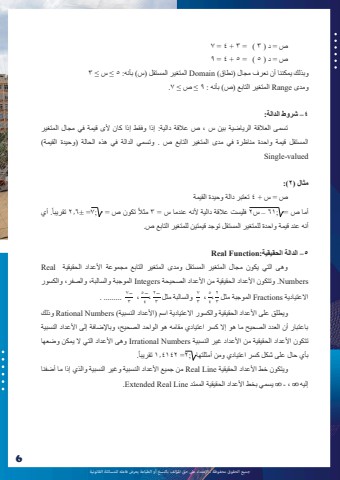 %u062c%u0645%u064a%u0639 %u0627%u0644%u062d%u0642%u0648%u0642 %u0645%u062d%u0641%u0648%u0638%u0629 %u0640 %u0627%u0625%u0644%u0639%u062a%u062f%u0627%u0621 %u0639%u0649%u0644 %u062d%u0642 %u0627%u0645%u0644%u0624%u0644%u0641 %u0628%u0627%u0644%u0646%u0633%u062e %u0623%u0648 %u0627%u0644%u0637%u0628%u0627%u0639%u0629 %u064a%u0639%u0631%u0636 %u0641%u0627%u0639%u0644%u0647 %u0644%u0644%u0645%u0633%u0627%u0626%u0644%u0629 %u0627%u0644%u0642%u0627%u0646%u0648%u0646%u064a%u062964%u0635 = %u062f ) 3 = ) 3 + 4 = 7%u0635 = %u062f ) 5 = ) 5 + 4 = 9%u0648%u0628%u0630%u0644%u0643 %u064a%u0645%u0643%u0646%u0646%u0627 %u0623%u0646 %u0646%u0639%u0631%u0641 %u0645%u062c%u0627%u0644 )%u0646%u0637%u0627%u0642( Domain %u0627%u0644%u0645%u062a%u063a%u064a%u0631 %u0627%u0644%u0645%u0633%u062a%u0642%u0644 )%u0633( %u0628%u0623%u0646%u0647: 5 %u2265 %u0633 %u2264 3%u0648%u0645%u062f%u0649 Range %u0627%u0644%u0645%u062a%u063a%u064a%u0631 %u0627%u0644%u062a%u0627%u0628%u0639 )%u0635( %u0628%u0623%u0646%u0647 : 9 %u2265 %u0635 %u2264 7.4 %u2013%u0634%u0631%u0648%u0637 %u0627%u0644%u062f%u0627%u0644%u0629:%u062a%u0633%u0645%u0649 %u0627%u0644%u0639%u0627%u0644%u0642%u0629 %u0627%u0644%u0631%u064a%u0627%u0636%u064a%u0629 %u0628%u064a%u0646 %u0633 %u060c %u0635 %u0639%u0627%u0644%u0642%u0629 %u062f%u0627%u0644%u064a%u0629: %u0625%u0630%u0627 %u0648%u0641%u0642%u0637 %u0625%u0630%u0627 %u0643%u0627%u0646 %u0623%u0644%u0649 %u0642%u064a%u0645%u0629 %u0641%u064a %u0645%u062c%u0627%u0644 %u0627%u0644%u0645%u062a%u063a%u064a%u0631 %u0627%u0644%u0645%u0633%u062a%u0642%u0644 %u0642%u064a%u0645%u0629 %u0648%u0627%u062d%u062f%u0629 %u0645%u0646%u0627%u0638%u0631%u0629 %u0641%u064a %u0645%u062f%u0649 %u0627%u0644%u0645%u062a%u063a%u064a%u0631 %u0627%u0644%u062a%u0627%u0628%u0639 %u0635 . %u0648%u062a%u0633%u0645%u064a %u0627%u0644%u062f%u0627%u0644%u0629 %u0641%u064a %u0647%u0630%u0647 %u0627%u0644%u062d%u0627%u0644%u0629 )%u0648%u062d%u064a%u062f%u0629 %u0627%u0644%u0642%u064a%u0645%u0629( valued-Single%u0645%u062b%u0627%u0644 )2 :)%u0635 = %u0633 + 4 %u062a%u0639%u062a%u0628%u0631 %u062f%u0627%u0644%u0629 %u0648%u062d%u064a%u062f%u0629 %u0627%u0644%u0642%u064a%u0645%u0629 %u064b. %u0623%u064a %u0623%u0645%u0627 %u0635 = ;61 %u2013 %u0633 2 %u0641%u0644%u064a%u0633%u062a %u0639%u0627%u0644%u0642%u0629 %u062f%u0627%u0644%u064a%u0629 %u0623%u0644%u0646%u0647 %u0639%u0646%u062f%u0645%u0627 %u0633 = 3 %u062a%u0643%u0648%u0646 %u0635 =%u064b ;7%u00b1 = 6.2 %u062a%u0642%u0631%u064a%u0628%u0627%u0645%u062b%u0627%u0644%u0623%u0646%u0647 %u0639%u0646%u062f %u0642%u064a%u0645%u0629 %u0648%u0627%u062d%u062f%u0629 %u0644%u0644%u0645%u062a%u063a%u064a%u0631 %u0627%u0644%u0645%u0633%u062a%u0642%u0644 %u062a%u0648%u062c%u062f %u0642%u064a%u0645%u062a%u064a%u0646 %u0644%u0644%u0645%u062a%u063a%u064a%u0631 %u0627%u0644%u062a%u0627%u0628%u0639 %u0635. 5 %u2013%u0627%u0644%u062f%u0627%u0644%u0629 %u0627%u0644%u062d%u0642%u064a%u0642%u064a%u0629: Function Real%u0648%u0647%u0649 %u0627%u0644%u062a%u064a %u064a%u0643%u0648%u0646 %u0645%u062c%u0627%u0644 %u0627%u0644%u0645%u062a%u063a%u064a%u0631 %u0627%u0644%u0645%u0633%u062a%u0642%u0644 %u0648%u0645%u062f%u0649 %u0627%u0644%u0645%u062a%u063a%u064a%u0631 %u0627%u0644%u062a%u0627%u0628%u0639 %u0645%u062c%u0645%u0648%u0639%u0629 %u0627%u0623%u0644%u0639%u062f%u0627%u062f %u0627%u0644%u062d%u0642%u064a%u0642%u064a%u0629 RealNumbers .%u0648%u062a%u062a%u0643%u0648%u0646 %u0627%u0623%u0644%u0639%u062f%u0627%u062f %u0627%u0644%u062d%u0642%u064a%u0642%u064a%u0629 %u0645%u0646 %u0627%u0623%u0644%u0639%u062f%u0627%u062f %u0627%u0644%u0635%u062d%u064a%u062d%u0629 Integers %u0627%u0644%u0645%u0648%u062c%u0628%u0629 %u0648%u0627%u0644%u0633%u0627%u0644%u0628%u0629%u060c %u0648%u0627%u0644%u0635%u0641%u0631%u060c %u0648%u0627%u0644%u0643%u0633%u0648%u0631 2 %u0627%u0627%u0644%u0639%u062a%u064a%u0627%u062f%u064a%u0629 Fractions %u0627%u0644%u0645%u0648%u062c%u0628%u0629 %u0645%u062b%u0644 %u060c 35%u060c 47%u22122 %u0648%u0627%u0644%u0633%u0627%u0644%u0628%u0629 %u0645%u062b%u0644 3%u22125 %u060c 3%u060c 4%u22127 ......... . 3%u0648%u064a%u0637%u0644%u0642 %u0639%u0644%u0649 %u0627%u0623%u0644%u0639%u062f%u0627%u062f %u0627%u0644%u062d%u0642%u064a%u0642%u064a%u0629 %u0648%u0627%u0644%u0643%u0633%u0648%u0631 %u0627%u0627%u0644%u0639%u062a%u064a%u0627%u062f%u064a%u0629 %u0627%u0633%u0645 )%u0627%u0623%u0644%u0639%u062f%u0627%u062f %u0627%u0644%u0646%u0633%u0628%u064a%u0629( Numbers Rational %u0648%u0630%u0644%u0643 %u0628%u0627%u0639%u062a%u0628%u0627%u0631 %u0623%u0646 %u0627%u0644%u0639%u062f%u062f %u0627%u0644%u0635%u062d%u064a%u062d %u0645%u0627 %u0647%u0648 %u0625%u0627%u0644 %u0643%u0633%u0631 %u0627%u0639%u062a%u064a%u0627%u062f%u064a %u0645%u0642%u0627%u0645%u0647 %u0647%u0648 %u0627%u0644%u0648%u0627%u062d%u062f %u0627%u0644%u0635%u062d%u064a%u062d%u060c %u0648%u0628%u0627%u0625%u0644%u0636%u0627%u0641%u0629 %u0625%u0644%u0649 %u0627%u0623%u0644%u0639%u062f%u0627%u062f %u0627%u0644%u0646%u0633%u0628%u064a%u0629 %u062a%u062a%u0643%u0648%u0646 %u0627%u0623%u0644%u0639%u062f%u0627%u062f %u0627%u0644%u062d%u0642%u064a%u0642%u064a%u0629 %u0645%u0646 %u0627%u0623%u0644%u0639%u062f%u0627%u062f %u063a%u064a%u0631 %u0627%u0644%u0646%u0633%u0628%u064a%u0629 Numbers Irrational %u0648%u0647%u0649 %u0627%u0623%u0644%u0639%u062f%u0627%u062f %u0627%u0644%u062a%u064a %u0627%u0644 %u064a%u0645%u0643%u0646 %u0648%u0636%u0639%u0647%u0627 %u064b %u0628%u0623%u064a %u062d%u0627%u0644 %u0639%u0644%u0649 %u0634%u0643%u0644 %u0643%u0633%u0631 %u0627%u0639%u062a%u064a%u0627%u062f%u064a %u0648%u0645%u0646 %u0623%u0645%u062b%u0644%u062a%u0647%u0627 ;2 = 4142.1. %u062a%u0642%u0631%u064a%u0628%u0627%u0648%u064a%u062a%u0643%u0648%u0646 %u062e%u0637 %u0627%u0623%u0644%u0639%u062f%u0627%u062f %u0627%u0644%u062d%u0642%u064a%u0642%u064a%u0629 Line Real %u0645%u0646 %u062c%u0645%u064a%u0639 %u0627%u0623%u0644%u0639%u062f%u0627%u062f %u0627%u0644%u0646%u0633%u0628%u064a%u0629 %u0648%u063a%u064a%u0631 %u0627%u0644%u0646%u0633%u0628%u064a%u