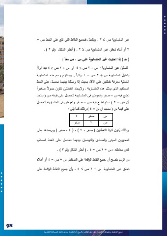 %u062c%u0645%u064a%u0639 %u0627%u0644%u062d%u0642%u0648%u0642 %u0645%u062d%u0641%u0648%u0638%u0629 %u0640 %u0627%u0625%u0644%u0639%u062a%u062f%u0627%u0621 %u0639%u0649%u0644 %u062d%u0642 %u0627%u0645%u0644%u0624%u0644%u0641 %u0628%u0627%u0644%u0646%u0633%u062e %u0623%u0648 %u0627%u0644%u0637%u0628%u0627%u0639%u0629 %u064a%u0639%u0631%u0636 %u0641%u0627%u0639%u0644%u0647 %u0644%u0644%u0645%u0633%u0627%u0626%u0644%u0629 %u0627%u0644%u0642%u0627%u0646%u0648%u0646%u064a%u06299897%u063a%u064a%u0631 %u0627%u0644%u0645%u062a%u0633%u0627%u0648%u064a%u0629 %u0635 %uf0a3 2 . %u0648%u0628%u0627%u0644%u0645%u062b%u0644 %u0641%u062c%u0645%u064a%u0639 %u0627%u0644%u0646%u0642%u0627%u0637 %u0627%u0644%u062a%u0649 %u062a%u0642%u0639 %u0639%u0644%u0649 %u0627%u0644%u062e%u0637 %u0635 = 2 %u0623%u0648 %u0623%u062f%u0646%u0627%u0647 %u062a%u062d%u0642%u0642 %u063a%u064a%u0631 %u0627%u0644%u0645%u062a%u0633%u0627%u0648%u064a%u0629 %u0635 %uf0b3 2 ( . %u0623%u0646%u0638%u0631 %u0627%u0644%u0634%u0643%u0644 %u0631%u0642%u0645 2. ) %u064b :) %u062d%u0640 ( %u0625%u0630%u0627 %u0627%u062d%u062a%u0648%u062a %u063a%u064a%u0631 %u0627%u0644%u0645%u062a%u0633%u0627%u0648%u064a%u0629 %u0639%u0644%u0649 %u0633 %u060c %u0635 %u0645%u0639%u0627%u064b %u0644%u062a%u0645%u062b%u064a%u0644 %u063a%u064a%u0631 %u0627%u0644%u0645%u062a%u0633%u0627%u0648%u064a%u0629 : %u0633 + 2 %u0635 %uf0a3 4 %u0623%u0648 %u0633 + 2 %u0635 %uf0b3 4 %u0646%u0628%u062f%u0623 %u0623%u0648%u0627%u0644%u064b %u0628%u062a%u0645%u062b%u064a%u0644 %u0627%u0644%u0645%u062a%u0633%u0627%u0648%u064a%u0629 %u0633 + 2 %u0635 = 4 . %u0648%u064a%u0633%u062a%u0644%u0632%u0645 %u0631%u0633%u0645 %u0647%u0630%u0647 %u0627%u0644%u0645%u062a%u0633%u0627%u0648%u064a%u0629%u0628%u064a%u0627%u0646%u064a%u0627%u0627%u0644%u062e%u0637%u064a%u0629 %u0645%u0639%u0631%u0641%u0629 %u0646%u0642%u0637 %u062a%u064a%u0646 %u0639%u0644%u0649 %u0627%u0623%u0644%u0642%u0644 %u0628%u062d%u064a%u062b %u0625%u0630%u0627 %u0648 %u0651%u0635%u0644%u0646%u0627 %u0628%u064a%u0646%u0647%u0645%u0627 %u0646%u062d%u0635%u0644 %u0639%u0644%u0649 %u0627%u0644%u062e%u0637%u064b %u0627%u0644%u0645%u0633%u062a%u0642%u064a%u0645 %u0627%u0644%u0630%u0649 %u064a%u0645%u062b%u0644 %u064b %u0635%u063a%u064a%u0631%u0627%u0647%u0630%u0647 %u0627%u0644%u0645%u062a%u0633%u0627%u0648%u064a%u0629 . %u0648%u0625%u0644%u064a%u062c%u0627%u062f %u0627%u0644%u0646%u0642%u0637%u062a%u064a%u0646 %u0646%u0643%u0648%u0646 %u062c%u062f%u0648%u0627%u0644%u0646%u0636%u0639 %u0641%u064a%u0647 %u0633 = %u0635%u0641%u0631 %u0648%u0646%u0639%u0648%u0636 %u0641%u0649 %u0627%u0644%u0645%u062a%u0633%u0627%u0648%u064a%u0629 %u0644%u0646%u062d%u0635%u0644 %u0639%u0644%u0649 %u0642%u064a%u0645%u0629 %u0635 ) %u0633%u0646%u062c%u062f %u0623%u0646 %u0635 = 2 %u060c ) %u062b%u0645 %u0646%u0636%u0639 %u0641%u064a%u0647 %u0635 = %u0635%u0641%u0631 %u0648%u0646%u0639%u0648%u0636 %u0641%u0649 %u0627%u0644%u0645%u062a%u0633%u0627%u0648%u064a%u0629 %u0644%u0646%u062d%u0635%u0644 %u0639%u0644%u0649 %u0642%u064a%u0645%u0629 %u0633 ) %u0633%u0646%u062c%u062f %u0623%u0646 %u0633 = 4 ) %u0648%u0630%u0644%u0643 %u0643%u0645%u0627 %u064a%u0644%u0649 : %u0633 %u0635%u0641%u0631 4%u0635 2 %u0635%u0641%u0631%u0648%u0628%u0630%u0644%u0643 %u064a%u0643%u0648%u0646 %u0644%u062f%u064a%u0646%u0627 %u0627%u0644%u0646%u0642%u0637%u062a%u064a %u0646 ) %u0635%u0641%u0631 %u060c 2 ( %u060c ) 4 %u060c %u0635%u0641%u0631 ( %u0648%u0628%u0631%u0635%u062f%u0647%u0627 %u0639%u0644%u0649 %u0627%u0644%u0645%u062d%u0648%u0631%u064a%u0646 %u0627%u0644%u0633%u064a%u0646%u0649 %u0648%u0627%u0644%u0635%u0627%u062f%u0649 %u0648%u0627%u0644%u062a%u0648%u0635%u064a%u0644 %u0628%u064a%u0646%u0647%u0645%u0627 %u0646%u062d %u0635%u0644 %u0639%u0644%u0649 %u0627%u0644%u062e%u0637 %u0627%u0644%u0645%u0633%u062a%u0642%u064a%u0645 %u0627%u0644%u0630%u0649 %u0645%u0639%u0627%u062f%u0644%u062a%u0647 : %u0633 + 2 %u0635 = 4 ( . %u0623%u0646%u0638%u0631 %u0627%u0644%u0634%u0643%u0644 %u0631%u0642%u0645 3 . ) %u0645%u0646 %u0627%u0644%u0631%u0633%u0645 %u064a%u062a%u0636%u062d %u0623%u0646 %u062c%u0645%u064a %u0639 %u0627%u0644%u0646%u0642%u0627%u0637 %u0627%u0644%u0648 %u0627%u0642%u0639%u0629 %u0639%u0644%u0649 %u0627%u0644%u0645%u0633%u062a%u0642%u064a%u0645 %u0633 + %u0635 = 4 %u0623%u0648 %u0623%u0639%u0627%u0644%u0647 %u062a%u062d%u0642%u0642 %u063a%u064a%u0631 %u0627%u0644%u0645%u062a%u0633%u0627%u0648%u064a%u0629 %u0633 + 2 %u0635 %uf0a3 4 %u060c %u0648%u0623%u0646 %u062c%u0645%u064a%u0639 %u0627%u0644%u0646%u0642%u0627%u0637 %u0627%u0644%u0648%u0627%u0642%u0639%u0629 %u0639%u0644%u0649
