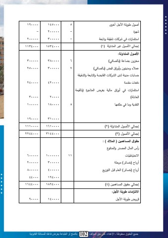 جميع الحقوق محفوظة ـ اإلعتداء على حق المؤلف 102 بالنسخ أو الطباعة يعرض فاعله للمسائلة القانونية98أث ا ي م م ل أد قل ومةاثاب مللد لل لبلللقنقملةتبتتم5--145000200000300000190000-200000إ ابح لم ث ا غن لمحاا مةحملل)1 )1534000 1134000األصول المتداولة: يد ةن تضب م )تبح بد ( ا ةي ل ن ةأة م ، لض )تبح بد ( يبتبللي لملح قلمحن لبللمحقبتضملةمحابتتملةمحنقنلقم دتبلليق يملمةاثاب ملل د أة م،لليبحنمل ت ،ل محااب ول )تبحقناملمحتب حم(لمحلق ملةيبلد ل صا ب6783800003000004200002000018000031000030000025000024000030000100000190000إ ابح لم لث ا محاا مةحمل)2 )1610000 1110000إ ابح لم لث ا )3 )3144000 2244000حقوق المساهمي ) المالك ( : أجلمحابالمحا لةمحا د م انب نبللأ ب ل)ديب (لي مأ ب ل)ديب (لمحتبال لللمحا زية11 100000030000040000019400060000020000080000044000إ ابح ق ، محايب اني )4 )1894000 1644000االلتيامات وي ة األجل: ة،ل ي ملم لل 140000 90000