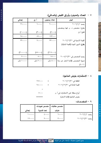 جميع الحقوق محفوظة ـ اإلعتداء على حق المؤلف 107 بالنسخ أو الطباعة يعرض فاعله للمسائلة القانونية1037 - العمالء والمدينو وأو ارق القبض )بال افي(:البيا عمالء ومدينو أ. ق إجمالي ثن ل1/1/2016 ت :لليد صل .ل ا.ل دن بل ةيد صل تةلأ.ل،ل200000)7000)60000)3000)260000)10000)193000 57000 250000محقناملم ةانملد ل31/12/2016يطرح: مح ن مح ن و )محقنام محسبحنم(230000)215000)90000)85000)320000)300000) ثن لمحاد صلد ل31/12/2005 15000 5000 20000تي يمل محاد صل ) ب امل مح دلل يل ةلمل2016)8000 م يل 2000 م يل 10000 م يل8 - اال تثمارات بغرض المتاجرخ:محام مم د ل31/12/2016 = 175000محقناملمحتب حملد ل31/12/2016 = 180000وووولأ ب ليسققمل ى م ةاثاب مللد لأ.لال 5000ت ،لمحااب ول) ب املمح دل(ل ======9 - المر ات: مر ص مطالبات ضرائب مر ص تعويضات تحت التسوية إجمالي ثن ل1/1/2016 ثن ل31/12/201660000300004000090000100000120000