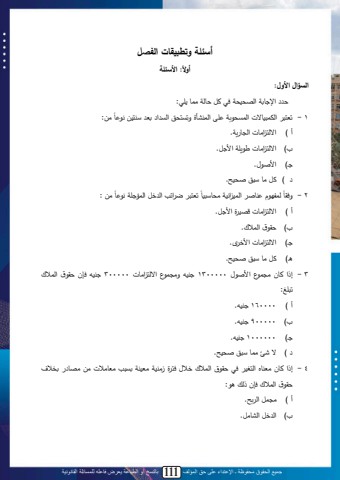 جميع الحقوق محفوظة ـ اإلعتداء على حق المؤلف 111 بالنسخ أو الطباعة يعرض فاعله للمسائلة القانونية107أ ئ ة وتطبيقات الف ل : األ ئ ةأوالالسؤال األول: لمة بتملمح سنسملد لللل بحمليابل :لن يي:1 - تتال لمحمالنب للمحايس مل ى محالنأولةتياس محي م تت ةلاني ك بأل( م حا ميبللمح ب يم.ب( م حا ميبلل ي ملم ل.ل و( م ث ا. لل(ل تلليبلةل لثسنح.لن يي :ن تتال ا م مح دل محام م ك بن حام ا لبث محان م كنم يسبةلنب2 - ةدقبأل( م حا ميبلل ن ولم ل.ب( ق ، محا . و( م حا م يبل م د ق. و( تلليبلةل لثسنح.ل3 - إامل لبنل ي ا ل م ث ا 1300000 لنهل ةي ا ل م حا ميبللل300000 لنه دإن ق ، محا تل غ:لأل( 160000 لنه.لب( 900000 لنه.ل و( 1000000 لنه.ل ل(ل للئليابلةل لثسنح.ل4 - إام لبن يتلبه محا ن د ق ، محا د ا دا و زيلنم يتنلم تيل يتبي ل يي ي ب تد ق ، محا لدإنلاحلل :لأل( ي اللمح ح.ب( مح دللمحنبيل.ل