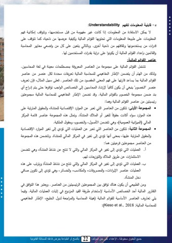 جميع الحقوق محفوظة ـ اإلعتداء على حق المؤلف 22 بالنسخ أو الطباعة يعرض فاعله للمسائلة القانونية18د- قاب ية المع ومات ل فهم Understandability : ل اصيل م ةامب ول ييل محات يبلل إامل لبكتل غن ل يم يمل ييل للل يياد ين بىل ةتا ل إيصبكنمل د لمحات يبلل ىل لنتمل محات يبلل محا ل تسا ي بل محق م لمحابحنمل ةلنمنمل ا بل ييل كب نمىل لابل تا ل ىل م ل يي ياد ي ك ب ةثقبدا يي كب نم أد ق. ة بحابح اتني ى لل يي ةمات ل يتب ن ل محاسبةلملةمحقب انيلتإ م لمحق م لمحابحنملأنل ص ك مل ىل م ملتق مللمحاياد ينيلح ب.عناصر القوائم المالية:تنااللمحق م لمحابحنمل ىلي ا ملييلمحتلبث لمحات ةدملتا ت سبلليتنلملد لح ملمحاسبةلني.لةحلحلل ييل مح بال أنل اضايل مة ب ل محامب نا ل ح اسبةللمل محابحنمل تت يمبلل يس ول حملل ل ل ييل لبث لمحق م لمحابحنملتابل يب ل ب بل ىلد لمحاتلىلمحاق لييلت للمحتلبث .لدت ىلةلنللمحاثباىلدإنلتت يفلن ة لب محاسبةلني إحى محد ب ص مح م ت مد ب اى ا إ م و أم ل \محد ا\ لل أن ص ن لبدنبيل ل اايل ي ا مل محد ال تبحق م ل محابحنم. ة ل تضايل مة ب ل محامب نا ح اسبةلمل محابحنمل ي ا انيل نينانيلييل لبث لمحق م لمحابحنملة اب:ل• المجموعة األولى: تام ن يي محتلبث محا تتل ي محا م مة ا ب م ح النبوى ةمحسق ، محاا تلم ى له محا م ة م أتبكت ق ب أةللمحا للمحالنأو.ل ةتاثلل لهل محا ا مل لبث ل ب امل محا ل ل ن ح ن محابح ل)محان مكنملمحتا ينم(ىلة لتاضايلم ث اى ةمحد اى ة ق ، محا منم.• المجموعة الثانية: تام ن يي محتلبث محا تتل ي محتا نبل محا تم م إحى ت ن محا م مة ا ب مةمحسق ، محاا تلم ن بى تاتلى أك ب تم م إحىلت ن لد لمحا ل لمحابح لح النبو.لةتاضايل لهلمحا ا ملييلمحتلبث لي ا انيلد نانيل اب:لأ. محتا نبللمحا لتم ملإحىلت ن لد لمحا ل لمحابح لةمحا ل لتلاجل يلكنبطلمحالنأوىلة لتاضايلم ةاثاب ملل يل ي لمحا لةمحا زيتبللح .بل. محتا نبللمحا لتم ملإحىلت ن لد لمحا ل لمحابح لةمحا لتلاجلييلكنبطلمحالنأو ةيا ت ل ىل لهلمحتا نبلل لبث لمة م مللىلةمحا ةدبلىلةمحاصبة لىل ةمحديب ىلة لتم لم إحىلتم ييلثبدل ل دللمحالنأو.ةيي محتلنت أن ص ن لب ت مد يني محا ا اني مح نيناني يي محتلبث . ةيتال ل لملمحا مد لد لمحاقب ي ل محابحنمل أ ل محد ب صل م ةبةنمللةةاد مال يقمل محقن ل محا ةول د ل إثلبلل محتا نبلل محابحنم. ةدنابل ل تتب يفل محتلبث ل م ةبةنمل ح ق م ل محابحنمل ) نكمل محاسبةلمل ةمحا م تم ح ةال محد نجىل مة ب ل محامب نا ل ح اسبةلملمحابحنم; 2018., al et Kieso:)ل