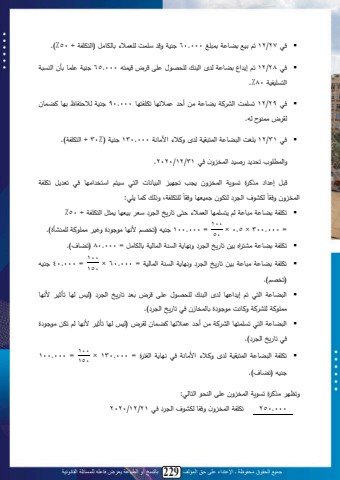 جميع الحقوق محفوظة ـ اإلعتداء على حق المؤلف 51 بالنسخ أو الطباعة يعرض فاعله للمسائلة القانونية47الحل: قياس مكا ب أو خسائر العم يات غير المستمرخ:)1)دخل )أو خسائر( تشغيل القطاع ع الفترخ م 1/1 حتي 1/4 بعد الضريبة =لمح دلل×ل)1 -يت المحض يلمل(ل=لل000.20%( × 40-1)ل12000)2)مكا ب أو خسائر التر ص م أصول القطاع المتوقف بعد خ م الضريبة: أ- دللأةلديب لتن نللمحقتب ل يلمحما ولييل1/4 ا ل31/12 تت لمحض يلم:لل =ل000.30%( × 40-1)لبل-يصبة لأةلديب للينةلأث المحقتب لمحاا لتت لد لمحض يلم.:25000( × 1 -40%ل( 18000)15000)لوووووووووووووووووووووووووووووووووووول3000 ا تكمال إعداد قائمة الدخل: شركة السالم قائمة الدخل ع السنة المنتهية في 31/12 /2020بيا جنيه جنيه ثبد ل دللمحتا نبللمحاياا ول لللمحض يلمل 000.1000ا يلملمح دلل)1000000% ×40( )000.400)لووووووووووووووووووووووووووووووووووووولصافي دخل العم يات المستمرخ 000.600العم يات غير المستمرخ: دخل تشغيل القطاع المتوقف 12000مكا ب أو خسائر التر ص م أصول القطاع المتوقف 3000ددددددددددددددددددددددددددد 15000ددددددددددددددددددددددددددددددددددددد صافي الدخل 615000ن يب السهم م العم يات المستمرخ )600000÷000.100 هم( 6ن يب السهم م دخل تشغيل القطاع المتوقف )12000 ÷ 000.100 هم ( 12.0ن يب السهم م مكا ب أو خسائر التر ص م أصول القطاع المتوقف)3000 ÷ 000.100 هم(03.0ربحية السهم )615000 ÷100000 هم( 15.6