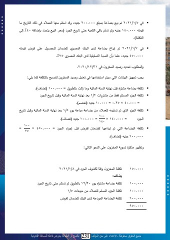 جميع الحقوق محفوظة ـ اإلعتداء على حق المؤلف 53 بالنسخ أو الطباعة يعرض فاعله للمسائلة القانونية49مثال)6)مدا ،لأنلل لملمحي الد ل1/6 / 2020 للمحاد صلييلأ و لأكنوتا بلمح نيوملمحاو لتلتلو ل ن وبلل ةطلمحتا نبللمحاا ممىلة لمةاتب تلمحن لملمحاد صلييل لملمحلنوبطلدو ل1/3/2021. لة و لأتنسوتلحوللمحلنبكبللمحابحنم:- دللمحتا نبللمحاياا وللل000.800- دل)ديب و(لتن نللمحتا نبللمحاا مملييل1/1 ا ل1/6( 000.70)ل- ) دلل)ديب و(لتن نللمحتا نبللمحاا مملييل1/6 ا ل31/12/2020( 000.50)ل- يصبة )ديب (لينةل لييلأث المحتا نبللمحاا ممل ا ل31/12 /2020 000.10- ) دلل)ديب و(لتن نلليق ولمحتا نبللمحاا مملد لةلمل2021( 000.80)ل- يصبة )ديب (ليق ولييلينةلتب لأث المحتا نبللمحاا مملد الةلملل2021( ل000,120)لالمط دوب: بيدا كيفيدة اإلف داح عد نتدائج العم يدات المتوقفدة فدي قائمدة الددخل ع مدا بدأ ضدريبة الددخل 40.%الحل: قياس مكا ب أو خسائر العم يات غير المستمرخ:2020 2021 دللمحان نللييل1/1 ا ل1/6يصبة ل)ديب (لمحاد صلييلمحلنبطلييل1/6 ا ل31/12( محققة(يصبةو ل)ديوب (لمحواد صليويلمحلنوبطليويلدو ال2021( مقدرخ()000.70)لأ-) دوووووووووولل)ديووووووووووب و(لتنووووووووووو نللمحتا نبللمحاا مم)000.50 )أ-) دووووووووووولل)ديوووووووووووب و(لتنووووووووووو نللمحتا نبللمحاا ممليق و)000,80)ب-يصبة )ديووووب (لينوووووةل ووووو لييلأث المحتا نبللمحاا مم000.10 ب-يصبة )ديوووووب (لينوووووةلتوووووب لأث المحتا نبللمحاا ممليق و)000.120)خسارخ محققة )000.40 )خسارخ مقدرخ )000.200) ا لم ا م لتصللييلمحديب ولمحاسققملةمحاق ولتتلنقبلح سنتملةمحسل مح ل)1)ل=)000.70)ل×ل60= %ل)ل42000)لمح ل)2)ل=ل)40000)ل+ل)ل000.200)ل=ل)ل000.240)ل=240000 × 60= %ل)144000)ل