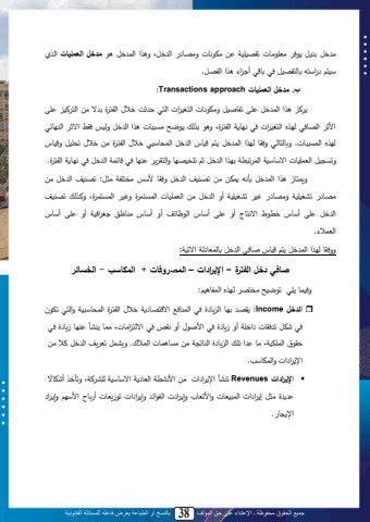 جميع الحقوق محفوظة ـ اإلعتداء على حق المؤلف 38 بالنسخ أو الطباعة يعرض فاعله للمسائلة القانونية34ي دلل ي لل د ل يت يبلل تم ن نمل يل يص كبلل ةي ب ل مح دلىل ة لمل محا دلل للمدخل العم يات محلملةنا ل مةاهلتبحام نللد لتب لأ م ل لملمحم ل.ب. مدخل العم يات approach Transactions: ل ل لملمحا دلل ىلتمبثنللةيص كبللمحا ن مللمحا ل ثتلد ا محما ولي لييلمحا لن ل ىلم ث لمح بد لح لهلمحا ن مللد لك ب ملمحما وىلة ليلحلل احلييللبلل لملمح دللةحنالدقطلم ث لمحل ب لح لهلمحايللبل.ل ة بحابح ل ةدقبلح لملمحا دلل ا ل نبجلمح دللمحاسبةل لد المحما ولييلد التس نلل ة نبجلةتي نللمحتا نبللم ةبةنملمحا تلتم ي لملمح دللث لت دن بلةمحاق ي ل ل بلد ل ب املمح دللد لك ب ملمحما و.لةياابزل لمل محا دلل تأكهل اصيل ييل ت لن ل مح دلل ةدقبل ةال يدا ممل يثل:ل ت لن ل مح دلل ييلي ب ل تن ن نمل ةي ب ل غن ل تن ن نمل أةل مح دلل ييل محتا نبلل محاياا ول ةغن ل محاياا وىل ةللحلل ت لن لمح دلل ىل أةبجللدت طل م كابول أةل ىل أةبجل مح اب ل أةل أةبجل يلب ل مدنمل أةل ىل أةبجلمحتا .لةةدقبلح لملمحا دلل ا ل نبجلثبد لمح دللتبحاتب حملم تنم:صافي دخل الفترخ = اإليرادات – الم روفات + المكا ب - الرسائر ةدنابل للت انحليدا لح لهلمحامب ن :ل ملدخل Income :ق لي بلمح يب و د محالبدة م ا ب ملد ا محما ول محاسبةلنمل ةمحا تم ند للصل ت دقبلل مد ملأةلزيب ولد م ث الأةلكقصل د م حا ميبلىليابل لنأل ل بلزيب و د ق ، محا منمى يبل ملت ل مح يب ولمحلبت ملييلييب ابلل محا . ةينال تت يف مح دل ت ييمة م مللةمحاصبة .ل▪ مإليرادات Revenues تلنألمة م ملل يي م كنتم محتب م م ةبةنملح ن لمىلةتأدلل ألصبن و يثل إ م مللمحالنتبلل ةم تتببل ةإ م لل محم م ةإ م ملل ت زيتبلل أ ب م ة ةإ م لمة ب .ل