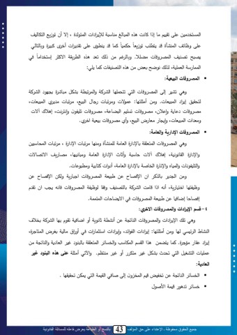 جميع الحقوق محفوظة ـ اإلعتداء على حق المؤلف 43 بالنسخ أو الطباعة يعرض فاعله للمسائلة القانونية39محاياد يني ى تقنن ليب إام تبكتل له محالبحغ يلبةلمل حإل م ملل محاا ح ول ى إ أن ت زية محامبحن ن تاب ل لت ق ى تق م ل أد ق تلن ول ة بحابح ن صانب ى ةاب ل محالنأول ل ات ل ت زيتبن لح ت لن محا ةدبلل يض .لل د ة بح غ يي احل تت له محت يقم م تث إةاد ميبمحااب ةملمحتا نمىلحلحللك احلتتضلييل لهلمحا لنمبلللابل :ل▪ الم روفات البيعية:ة ل تنن ل إحىل محا ةدبلل محا ل تاسا بل محن للمل ةمحا تلتمل تنصلل يلبل ول ت ل محن لملحاسقن ل إ م ل محالنتبل.ل ةييل أيث ا ب:ل ا لل ةي تلبلل با محلنةىل ي تلبلل ي م محالنتبلىلي ةدبلل ب مل ةإ نىل ي ةدبلل تي ن ل محلضب مىل ي ةدبلل ت نم ن ةإكا كتىل إ آ للةيت ملل محالنتبلىلةإ ب ليتب ،لمحلنةىلةأملي ةدبللينتنم مد م.▪ الم روفات اإلدارية والعامة:ة لمحا ةدبللمحاات قملتبة م ولمحتبيملح النأولةيل بلي تلبللمة م ولىلي تلبللمحاسبةلنيلةمة م ول محقبك كنمىل إ ل آ لل بةلمل ةأثب ل مة م ول محتبيمل ةيلبكن بىل ي ب يفل م ت ب للةمحا نم كبللةمحانبهلةمةكب ولمحدبثملتبة م ولمحتبيمىلأ ةملللابينملةيتل بل.ةييل مح ل تبحلل ل منل مةد ب ل يل لنتمل محا ةدبلل م لب يمل ةحميل مةد ب ل يلةانما بل مدانب يمىل أكهل مامل بيتل محن لمل تبحا لن ل ةدقبل ح انممل محا ةدبلل دبكهل ل منل تق الإد ب بلإابدنبل يل لنتملمحا ةدبللد لم ضب بللمحاااام.4 -قسم اإلي اردات والم روفات االخري:ة لت للمة م مللةمحا ةدبللمحلبت مل يلأكنتملثبك يملأةلمابدنملتق الي بلمحن لملتد لمحلنبطل مح ني ل ح بل ةييل أيث ا ب:ل إ م ملل محم م ىل ةإ م ملل مةاثاب ملل د ل أة م،ل يبحنمل ت ،ل محااب وىلإ م ل قب ليم و.للابل اضايلل لملمحقي لمحاصبة لةمحديب لمحاات قملتبحلل لغن لمحتب ملةمحلبت ملييل ا نبلل محان نلل محا ل تس ل تنصل غن ل يام للأةل غن يلام .لل ةمآلت ل أيث م ع ى هذ البنود غيرالعادية:▪ محديب محلبت م ي تدمنضل ن محاد ةن إحى ثبد محقنام محا اصي تسقنق بل.▪ ديب لت ل ناملم ث ال