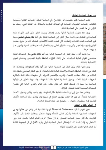 جميع الحقوق محفوظة ـ اإلعتداء على حق المؤلف 7 بالنسخ أو الطباعة يعرض فاعله للمسائلة القانونية31 -تعريف المحا بة المالية: تلقي لمحاسبةلمللت لياد صلإحىل ولد ة لة لمحاسبةلملمحابحنمىلةمحاسبةلملمة م يمىلةيسبةلملمحامبحن ىل ةمحاسبةلملمحض يلنمىل ةمحاسبةلملد لمح مللمحسص ينمل ةمح ملل غن لمح ب دملح ح.ل ةة ل ا لمحا لن لد ل لملمحم لل ىلمحاسبةلملمحابحنم.ل ل ول تتب يفل ح اسبةلمل محابحنمل تسي ل إدا ل ة بلل محلم ل تنأنل مح ة ل محلقل ل ت تلهلمحاسبةلملد لمحالنأو.لدايلكب نمىل اصيلمحلم لإحىلمحاسبةلملمحابحنمل ىلأك بلنظام وصفي تح ي يىل نتل ق المحاسبة لياس لم م ل ةمحتا نبللمحاىلت لمحلنبطلم ا ب ملح النأوىل كهل يل ي ل ا نبللمحقنبجلةمحال ي لةمحا دنصل اصيلةث لمحا ل لمحابح لةكان ملأ ابالمحالنأو ةت دقبت بلمحلق مىلةمحاق ي ل ل بلت ولثسنسم.لةيي كب نم أد قى اصي محلم إحى محاسبةلم محابحنم ى أك ب نشاط خدمي د لمحات يبللمحابحنملحاياد يىل محق م ل محابحنمل حايب ت ل ىللإتدبال محق م ملل محاات قمل تصنمنمل تد نصل ةإةاد مال محا م لم ا ب ملتبحالنأو.ل ل مع وماتىللةي د لل لملةييل كب نمل ثبحثمىل اصيل محلم ل إحىل محاسبةلمل محابحنمل ىل أك بللنظامامحلمبال لمحلنبكبللمحاات قملتب م ل ةم كنتملمحابحنملمحابيملتبحالنأوىلث ل ق المحلمبالمحاسبةل ليان نللت للمحلنبكبلل ييل د ال ا نبلل محاي نلل ةمحال ي ل ةمحا دنصل حاس ي بل إحىل يت يبلل يبحنمل لانمل تب الب بلن ح ات يبل ب كان م محات د مح انمممحاد بل محل ب نم ح لمبا. ةإ الب محاسبةلم محابحنم كمبيبمحاسبةلنمل ييل ي ل ديل ةييب ل مح دبت ل إحىل كمبال يامبيلل ق ال محق م ل ةمحاقب ي ل محابحنمل محا ل تاضايلمحات يبللمحاسبةلنملمحامن ولحاادلقلمحق م مل.لةكد صل يابل ةل ل إحىل أنل محاسبةلمل محابحنمل كمبال ح ات يبلل ق ال ياس ل ة نبجل ةتي نلللم م لم ا ب مل ح النأوىل ث ل ق ال لمللمحلمبال يا ثنلل محلاب جل د ل ث ول م ل ةتقب ي ل يبحنمل حايب ول م م لمحدب نمل)ييليياثا ييىلة م لنيىل...لةغن (ل ىلإتدبال محق م مللمحا ام.2 -القوائم والتقارير المالية:تتال ل محق م ل محابحنمللStatements Financial مح ةن مل م ةبةنمل محاىل اصيل ييل د ح بل ت ثنللمحات يبلل محاسبةلنمل محاات قمل تبحا ل ل محابح ل ح النأول ةكان مل كنب بل ةت دقبت بل محلق مل إحىل م م لمحدب نم. ة ألب يتنب محاسبةلم محا م )1)ل تتل منل \ ،ل محق م ل محابحنم\ل ةمحات ال تق م ل ةزي لم ةاثاب ل ل)69)لحيلمل2019 ةمحالبا لحاتنب لمحاسبةلملمح ةحىل ل)IAS1)لإحىلأنلمحا ا ملمحمبي ملييلمحق م لمحابحنملتناالل ىلمحاص كبللمحابحنم:ل