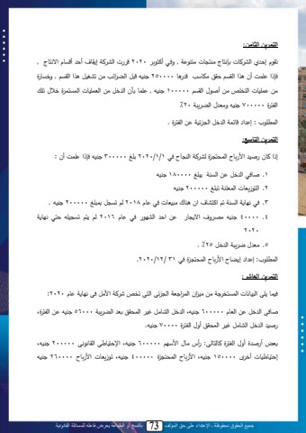 جميع الحقوق محفوظة ـ اإلعتداء على حق المؤلف 73 بالنسخ أو الطباعة يعرض فاعله للمسائلة القانونية69التمري الثام :تق الإ ملمحن لبللتإكابوليلا بلليال مل,لةد لأتا ل2020 للمحن لملإ قب لأ لأ يبالم كابولل,لدإامل اتلأنل لملمحقي ل ق ليصبة لل بل250000 لنهل لللمحض م لييلتن نلل لملمحقي ل,لةديب ولييل ا نبللمحاد صلييلأث المحقي ل100000 لنهل,ل ابلتأنلمح دللييلمحتا نبللمحاياا ولد الت للمحما ول700000 لنهلةيت المحض يلمل20 %محات بل:لإ م ل ب املمح دللمح نمل يلمحما ول.لالتمري التا ع:إامللبنل ثن لم ب لمحاسا ولحن لملمحل ب لد ل1/1/2020 ي غل300000 لنهلدإامل اتلأنل:1 .ثبد لمح دلل يلمحيلملل ل غل180000 لنهل2 .محا زيتبللمحات لملتل غل200000 لنهل3 .د لك ب ملمحيلملت لمتانب لمنل لب ليلنتبللد ل بال2018 ح لتي للتال غل200000 لنهل.ل4 .40000 لنهل ي ة ل م ب ل ل يل م ل محن ل د ل بالل2016 ح ل ا تي ن هل ا ل ك ب مل20205 .يت الا يلملمح دلل25. %محات ب:لإ م لإ ضب لم ب لمحاسا ولد ل31/ 12/2020.التمري العاشر:دنابل ىلمحلنبكبللمحاياد ملييلين منلمحا م تملمح ىلمحاىلتدصلل لملم يللدىلك ب مل بال2020:لثبدىلمح دلل يلمحتبال600000 لنهىلمح دللمحنبيللغن لمحاسق لتت لمحض يلمل56000 لنهل يلمحما وىل ثن لمح دللمحنبيللغن لمحاسق لأةالمحما ول70000 لنه.لتتضلأ ث ولأةالمحما وللبحابحى:ل أجليبالم ة لل600000 لنهىلمة انب ىلمحقبك كىل200000 لنهىلإ انب نبل أد ق 150000 لنهىل م ب ل محاسا ولل400000 لنهىل ت زيتبلل م ب لل260000 لنهل