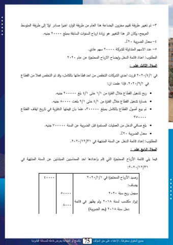 جميع الحقوق محفوظة ـ اإلعتداء على حق المؤلف 75 بالنسخ أو الطباعة يعرض فاعله للمسائلة القانونية713 -ت ت نن يقم تقنن يد ةن محلضب م لم محتبا يي يقم مح م مدن م ثب مة إحى يقم محاا ةطمحا حىلةلبنلمث ل لملمحا نن ل لزيب ولم ب لمحيل مللمحيبتقملتال غل20000 لنه.ل4 -يت المحض يلمل20.%5 -لم ة لمحاا مةحملح ن لمل20000 ة ل ب م.محات ب:لم م ل ب املمح دللةإ ضب لم ب لمحاسا ول يل بال2020السؤال الثالث عشر : د ل1/4/2020 للم ملمحن لبللمحاد صلييلم ل تب بت بلتبحمبيلىلة لت لمحاد صلدت لييلمحقتب لد ل1/9/2020.لدإامل اتلمن:• حلتن نللمحقتب لد المحما ولييل1/1 اىل1/4 ي غل200000 لنه.ل• ديب ولتن نللمحقتب لد المحما ولييل1/4 اىل1/9 ي تل80000 لنه.لللل• ت ل ينةل أث ال محقتب لتبحمبيلل تال غلل300000ىل ابل تبنل ناا بل مح دا يمل د لتب يخل م قب ل محقتب ل350000• ي غلثبد لمح دللييلمحتا نبللمحاياا ول لللمحض يلمل يلمحيلمل700000 لنه.ل• يت المحض يلمل20.%محات ب:لإ م ل ب املمح دلل يلمحيلملمحالا نملد ل31/12/2020.السؤال الرابع عشر :دنابل ل ب امل م ب ل محاسا ول محا ل بال تإ م بل م ل محاسبةلنيل محالا نيل يل محيلمل محالا نمل د ل31/12/2020:ل ثن لم ب لمحاسا ولد ل1/1/2020 40000 ضب :لي الل حلةلمل2020 50000إ م ل يصاي ل حيلملل2018 ةح ل م ل د ل ب امل دللةلمل2018( تت لمحض يلم(ل8000