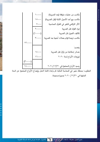 جميع الحقوق محفوظة ـ اإلعتداء على حق المؤلف 76 بالنسخ أو الطباعة يعرض فاعله للمسائلة القانونية72يصبة لييل ا نبلليا ممل)تت لمحض يلم(ل 10000يصبة لينةلأ لم ث المحثبيامل) لللمحض يلم(ل 15000م ث محا م تا ح ا ن د محت ، محاسبةلنم 7000إ م لمحم م ل لللمحض يلمل 20000تمبحن لمحاا يلل لللمحض يلمل )10000)يصبة لت امل م لتتا للأ للنملتت لمحض يلمل 30000130000 د :ديب لإةاثلب نملييلزح مال لللمحض يلمل 14000ت زيتبللم ب لحيلمل2020 16000)30000) ثن لم ب لمحاسا ولد ل31/12/2020 140000محات ب:لت ماللدلن لد لمحاسبةلملمحابحنمىل لتإ م ل ب املمح دللةإ ضب لم ب لمحاسا ول يلمحيلملمحالا نملد ل31/12 /2020 ت ولثسنسم.ل