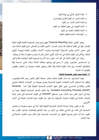 جميع الحقوق محفوظة ـ اإلعتداء على حق المؤلف 8 بالنسخ أو الطباعة يعرض فاعله للمسائلة القانونية4أ- ب املمحا ل لمحابح لد لك ب ملمحما و.لبل- ب املمح دلل يلمحما ول)م ب لةمحديب (.و- ب املمح دللمحنبيلل يلمحما و. ل- ب ام محا ن م ل د ق ، محا منمل يلمحما و.له- ب املمحا دقبللمحلق مل يلمحما و.لة- مة ضب بللمحااااملح ق م لمحابحنم.ةتتال لمحاقب ي لمحابحنملReporting Financial يم الةمةةل ناللمحا ا ملمحمبي ملح ق م لمحابحنمل)محانب إحن ب د محمق و محيبتقم(ى لاب نال محا ب م د ق حإلد ب مةابدى دب ولمحق م لمحابحنمليثل؛لتق ي ل ي ال مة م وىل ةتقب ي ل محايك حنمل مة ااب نمىل ةكن ملل م اباىل ةمحاقب ي ل محاق يمل حل ثمل م ة م،لمحابحنم. ة بحابحىلدإنلمحق م لمحابحنمل لأ لآحنبللمحاق ي لمحابحىلمحلقل ل اضايليت يبلليبحنملأةلةثمنم.لةينب لإحىلمحق م لمحابحنملإحىلأك بلامللغ ،ل بال كهل ا لت انا بلحا لنملإ انب بلل تب لللن لنييل محاياد ينيل محدب نيىل ةمحل يل ل ياحل ح ل ةات ل تاتبحلمللمحالنأو تإ م تقب ي ي اام ةدقبن حنصل ةيسا ق تسصاه ي ا م يي محاتب ن ةمحق مكنيحاات لبت محدبثم. ةيا إ م محق م محابحنم ةدقبةمح م حلامللمح م.ل3 -أهمية وجود معايير ل محا بة المالية: م ه محاسبةل ن ل إ م محق م محابحنم يدب يساا م تات تبحاسن ة ا مح م ةمح ا ،ىةحاق نلل لهل محادب بيتل محالمابلل محا لنمل محاسبةلنمل ي اةل ي ا مل ييل مة م ملل محالمامل حتا نا لن بيب Generally ن محقنبجل ةلمةد ب محاسبةل ى ةمحا للأ ل ن بلل\محالب ل محاسبةلنم محاقل حم ل ن يي(GAAP (Principles Accounting Accepted .\ة تدا محالب ل محاسبةلنم محاقل حم ا يب ةحم إحى أد قى دت ى ةلنل محاثباى نن ل ي ت حللUSGAAP إحىل محق م ل محاسبةلنمل محا ل تتال ي يملح النآلل محتبي مل د ل مح بلل محااس ول م ي يصنمىل ة ل تتال ل لهل محق م ل ي يمل ح النآلل محتبي مل د ل م تسب لم ة ة .لن د ث و ي ا م يي محاتب ن ن بيبة ت تت ي ةإ ب و ثنبغم محالب ل محاسبةلنم محاقل حم ل محاسبةلنمل محاىل لبكتل د ل محابا ل تدا ل ينيل مح ةلاللييلل نتل محامب ن ل ةمحاتبح بلل ةأةبحن ل محقنبج.للة لا لل ول أ م ل تلب مل تض ة ول محا دن ل ينيل محااب ةبلل محاسبةلنمل ال محتبح ل تيل ل محا ن ملل محس ثمل د لينكملم ابا.