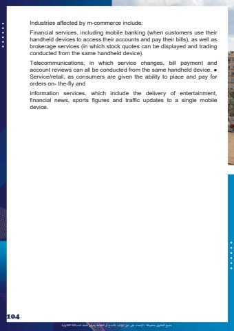 %u062c%u0645%u064a%u0639 %u0627%u0644%u062d%u0642%u0648%u0642 %u0645%u062d%u0641%u0648%u0638%u0629 %u0640 %u0627%u0625%u0644%u0639%u062a%u062f%u0627%u0621 %u0639%u0649%u0644 %u062d%u0642 %u0627%u0645%u0644%u0624%u0644%u0641 %u0628%u0627%u0644%u0646%u0633%u062e %u0623%u0648 %u0627%u0644%u0637%u0628%u0627%u0639%u0629 %u064a%u0639%u0631%u0636 %u0641%u0627%u0639%u0644%u0647 %u0644%u0644%u0645%u0633%u0627%u0626%u0644%u0629 %u0627%u0644%u0642%u0627%u0646%u0648%u0646%u064a%u0629104Industries affected by m-commerce include: Financial services, including mobile banking (when customers use their handheld devices to access their accounts and pay their bills), as well as brokerage services (in which stock quotes can be displayed and trading conducted from the same handheld device). Telecommunications, in which service changes, bill payment and account reviews can all be conducted from the same handheld device. %u25cf Service/retail, as consumers are given the ability to place and pay for orders on- the-fly and Information services, which include the delivery of entertainment, financial news, sports figures and traffic updates to a single mobile device.