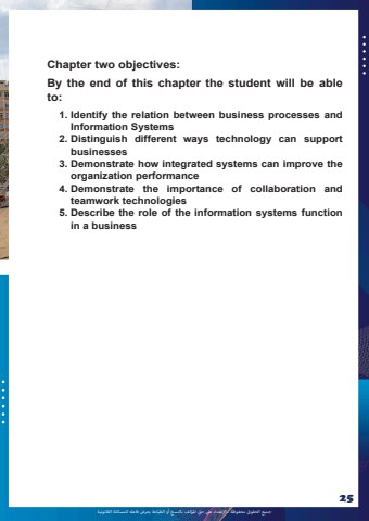 %u062c%u0645%u064a%u0639 %u0627%u0644%u062d%u0642%u0648%u0642 %u0645%u062d%u0641%u0648%u0638%u0629 %u0640 %u0627%u0625%u0644%u0639%u062a%u062f%u0627%u0621 %u0639%u0649%u0644 %u062d%u0642 %u0627%u0645%u0644%u0624%u0644%u0641 %u0628%u0627%u0644%u0646%u0633%u062e %u0623%u0648 %u0627%u0644%u0637%u0628%u0627%u0639%u0629 %u064a%u0639%u0631%u0636 %u0641%u0627%u0639%u0644%u0647 %u0644%u0644%u0645%u0633%u0627%u0626%u0644%u0629 %u0627%u0644%u0642%u0627%u0646%u0648%u0646%u064a%u062925Chapter two objectives:By the end of this chapter the student will be able to:1. Identify the relation between business processes and Information Systems 2. Distinguish different ways technology can support businesses 3. Demonstrate how integrated systems can improve the organization performance 4. Demonstrate the importance of collaboration and teamwork technologies 5. Describe the role of the information systems function in a business