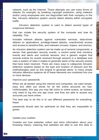 %u062c%u0645%u064a%u0639 %u0627%u0644%u062d%u0642%u0648%u0642 %u0645%u062d%u0641%u0648%u0638%u0629 %u0640 %u0627%u0625%u0644%u0639%u062a%u062f%u0627%u0621 %u0639%u0649%u0644 %u062d%u0642 %u0627%u0645%u0644%u0624%u0644%u0641 %u0628%u0627%u0644%u0646%u0633%u062e %u0623%u0648 %u0627%u0644%u0637%u0628%u0627%u0639%u0629 %u064a%u0639%u0631%u0636 %u0641%u0627%u0639%u0644%u0647 %u0644%u0644%u0645%u0633%u0627%u0626%u0644%u0629 %u0627%u0644%u0642%u0627%u0646%u0648%u0646%u064a%u062980network, such as the Internet. These attempts can use many forms ofattacks, for example, by breaking copyright protection, using malware and/or using employees who are disgruntled with their company or the like. Intrusion detection system cannot detect attacks within encrypted traffic. Intrusion detection system is used to detect several types of suspicious behavior that can violate the security system of the computer and lose its reliability. This includes network attacks against vulnerable services, data-driven attacks on applications, privilege-based attacks, unauthorized access and access to sensitive files, and malware (viruses, trojans, and worms). An intrusion detection system can be made up of several components: a sensor that generates security events, a control panel that monitors events and alerts and controls sensors, and a generic engine that records entries for events received through sensors in a database and uses a system of rules it makes to generate alerts of the security events that have been received. There are many ways to categorize intrusion detection systems based on the type and location of sensors and the methodologies used on this engine to generate alerts. In many simple intrusion detection systems all of these elements are combined into one or more devices. Improve your passwords When we all started using the internet and computers, we used simple, easy and often put words for all the online accounts we had. Unfortunately, this way you may fall victim to online scams, as hackers only need to log into one app once, and they are able to access any accounts you have online. The best way to do this is to use different passwords for everything, these passwords should also be optimized so that they are impossible to guess. Update your cookies Cookies are how websites collect and store information about your browsing history, meaning that websites are able to use this data to