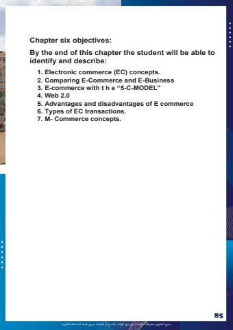 %u062c%u0645%u064a%u0639 %u0627%u0644%u062d%u0642%u0648%u0642 %u0645%u062d%u0641%u0648%u0638%u0629 %u0640 %u0627%u0625%u0644%u0639%u062a%u062f%u0627%u0621 %u0639%u0649%u0644 %u062d%u0642 %u0627%u0645%u0644%u0624%u0644%u0641 %u0628%u0627%u0644%u0646%u0633%u062e %u0623%u0648 %u0627%u0644%u0637%u0628%u0627%u0639%u0629 %u064a%u0639%u0631%u0636 %u0641%u0627%u0639%u0644%u0647 %u0644%u0644%u0645%u0633%u0627%u0626%u0644%u0629 %u0627%u0644%u0642%u0627%u0646%u0648%u0646%u064a%u062985Chapter six objectives:By the end of this chapter the student will be able toidentify and describe:1. Electronic commerce (EC) concepts. 2. Comparing E-Commerce and E-Business 3. E-commerce with t h e %u201c5-C-MODEL%u201d 4. Web 2.0 5. Advantages and disadvantages of E commerce 6. Types of EC transactions. 7. M- Commerce concepts.