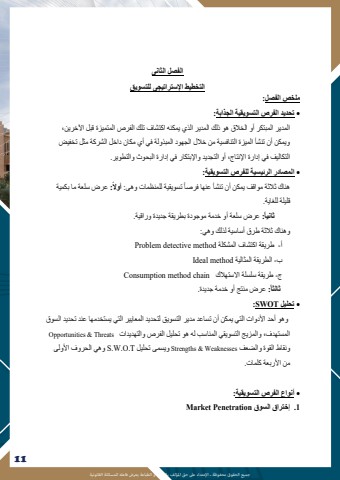 %u062c%u0645%u064a%u0639 %u0627%u0644%u062d%u0642%u0648%u0642 %u0645%u062d%u0641%u0648%u0638%u0629 %u0640 %u0627%u0625%u0644%u0639%u062a%u062f%u0627%u0621 %u0639%u0649%u0644 %u062d%u0642 %u0627%u0645%u0644%u0624%u0644%u0641 %u0628%u0627%u0644%u0646%u0633%u062e %u0623%u0648 %u0627%u0644%u0637%u0628%u0627%u0639%u0629 %u064a%u0639%u0631%u0636 %u0641%u0627%u0639%u0644%u0647 %u0644%u0644%u0645%u0633%u0627%u0626%u0644%u0629 %u0627%u0644%u0642%u0627%u0646%u0648%u0646%u064a%u06291110%u0627%u0644%u0641%u0635%u0644 %u0627%u0644%u062b%u0627%u0646%u0649%u0627%u0644%u062a%u062e%u0637%u064a%u0637 %u0627%u0625%u0644%u0633%u062a%u0631%u0627%u062a%u064a%u062c%u0649 %u0644%u0644%u062a%u0633%u0648%u064a%u0642 %u0645%u0644%u062e%u0635 %u0627%u0644%u0641%u0635%u0644:%u2022 %u062a%u062d%u062f%u064a%u062f %u0627%u0644%u0641%u0631%u0635 %u0627%u0644%u062a%u0633%u0648%u064a%u0642%u064a%u0629 %u0627%u0644%u062c%u0630%u0627%u0628%u0629: %u0627%u0644%u0645%u062f%u064a%u0631 %u0627%u0644%u0645%u0628%u062a%u0643%u0631 %u0623%u0648 %u0627%u0644%u062e%u0627%u0644%u0642 %u0647%u0648 %u0630%u0644%u0643 %u0627%u0644%u0645%u062f%u064a%u0631 %u0627%u0644%u0630%u064a %u064a%u0645%u0643%u0646%u0647 %u0627%u0643%u062a%u0634%u0627%u0641 %u062a%u0644%u0643 %u0627%u0644%u0641%u0631%u0635 %u0627%u0644%u0645%u062a%u0645%u064a%u0632%u0629 %u0642%u0628%u0644 %u0627%u0622%u0644%u062e%u0631%u064a%u0646%u060c %u0648%u064a%u0645%u0643%u0646 %u0623%u0646 %u062a%u0646%u0634%u0623 %u0627%u0644%u0645%u064a%u0632%u0629 %u0627%u0644%u062a%u0646%u0627%u0641%u0633%u064a%u0629 %u0645%u0646 %u062e%u0627%u0644%u0644 %u0627%u0644%u062c%u0647%u0648%u062f %u0627%u0644%u0645%u0628%u0630%u0648%u0644%u0629 %u0641%u064a %u0623%u064a %u0645%u0643%u0627%u0646 %u062f%u0627%u062e%u0644 %u0627%u0644%u0634%u0631%u0643%u0629 %u0645%u062b%u0644 %u062a%u062e%u0641%u064a%u0636 %u0627%u0644%u062a%u0643%u0627%u0644%u064a%u0641 %u0641%u064a %u0625%u062f%u0627%u0631%u0629 %u0627%u0625%u0644%u0646%u062a%u0627%u062c%u060c %u0623%u0648 %u0627%u0644%u062a%u062c%u062f%u064a%u062f %u0648%u0627%u0625%u0644%u0628%u062a%u0643%u0627%u0631 %u0641%u064a %u0625%u062f%u0627%u0631%u0629 %u0627%u0644%u0628%u062d%u0648%u062b %u0648%u0627%u0644%u062a%u0637%u0648%u064a%u0631. %u2022 %u0627%u0644%u0645%u0635%u0627%u062f%u0631 %u0627%u0644%u0631%u0626%u064a%u0633%u064a%u0629 %u0644%u0644%u0641%u0631%u0635 %u0627%u0644%u062a%u0633%u0648%u064a%u0642%u064a%u0629: %u064b: %u0639%u0631%u0636 %u0633%u0644%u0639%u0629 %u0645%u0627 %u0628%u0643%u0645%u064a%u0629 %u064b %u062a%u0633%u0648%u064a%u0642%u064a%u0629 %u0644%u0644%u0645%u0646%u0638%u0645%u0627%u062a %u0648%u0647%u0649: %u0623%u0648%u0627%u0644%u0647%u0646%u0627%u0643 %u062b%u0627%u0644%u062b%u0629 %u0645%u0648%u0627%u0642%u0641 %u064a%u0645%u0643%u0646 %u0623%u0646 %u062a%u0646%u0634%u0623 %u0639%u0646%u0647%u0627 %u0641%u0631%u0635%u0627%u0642%u0644%u064a%u0644%u0629 %u0644%u0644%u063a%u0627%u064a%u0629. %u062b%u0627%u0646%u064a%u0627%u064b: %u0639%u0631%u0636 %u0633%u0644%u0639%u0629 %u0623%u0648 %u062e%u062f%u0645%u0629 %u0645%u0648%u062c%u0648%u062f%u0629 %u0628%u0637%u0631%u064a%u0642%u0629 %u062c%u062f%u064a%u062f%u0629 %u0648%u0631%u0627%u0642%u064a%u0629. %u0648%u0647%u0646%u0627%u0643 %u062b%u0627%u0644%u062b%u0629 %u0637%u0631%u0642 %u0623%u0633%u0627%u0633%u064a%u0629 %u0644%u0630%u0644%u0643 %u0648%u0647%u064a: %u0623- %u0637%u0631%u064a%u0642%u0629 %u0627%u0643%u062a%u0634%u0627%u0641 %u0627%u0644%u0645%u0634%u0643%u0644%u0629 method detective Problem %u0628 - %u0627%u0644%u0637%u0631%u064a%u0642%u0629 %u0627%u0644%u0645%u062b%u0627%u0644%u064a%u0629 method Ideal %u062c- %u0637%u0631%u064a%u0642%u0629 %u0633%u0644%u0633%u0644%u0629 %u0627%u0627%u0644%u0633%u062a%u0647%u0627%u0644%u0643 chain method Consumption%u064b: %u0639%u0631%u0636 %u0645%u0646%u062a%u062c %u0623%u0648 %u062e%u062f%u0645%u0629 %u062c%u062f%u064a%u062f%u0629. %u062b%u0627%u0644%u062b%u0627%u2022 %u062a%u062d%u0644%u064a%u0644 SWOT :%u0648%u0647%u0648 %u0623%u062d%u062f %u0627%u0623%u0644%u062f%u0648%u0627%u062a %u0627%u0644%u062a%u064a %u064a%u0645%u0643%u0646 %u0623%u0646 %u062a%u0633%u0627%u0639%u062f %u0645%u062f%u064a%u0631 %u0627%u0644%u062a%u0633%u0648%u064a%u0642 %u0644%u062a%u062d%u062f%u064a%u062f %u0627%u0644%u0645%u0639%u0627%u064a%u064a%u0631 %u0627%u0644%u062a%u064a %u064a%u0633%u062a%u062e%u062f%u0645%u0647%u0627 %u0639%u0646%u062f %u062a%u062d%u062f%u064a%u062f %u0627%u0644%u0633%u0648%u0642 %u0627%u0644%u0645%u0633%u062a%u0647%u062f%u0641%u060c %u0648%u0627%u0644%u0645%u0632%u064a%u062c %u0627%u0644%u062a%u0633%u0648%u064a%u0642%u064a %u0627%u0644%u0645%u0646%u0627%u0633%u0628 %u0644%u0647 %u0647%u0648 %u062a%u062d%u0644%u064a%u0644 %u0627%u0644%u0641%u0631%u0635 %u0648%u0627%u0644%u062a%u0647%u062f%u064a%u062f%u0627%u062a Threats & Opportunities%u0648%u0646%u0642%u0627%u0637 %u0627%u0644%u0642%u0648%u0629 %u0648%u0627%u0644%u0636%u0639%u0641 Weaknesses & Strengths %u0648%u064a%u0633%u0645%u0649 %u062a%u062d%u0644%u064a%u0644 T.O.W.S %u0648%u0647%u064a %u0627 %u0644%u062d%u0631%u0648%u0641 %u0627%u0623%u0644%u0648%u0644%u0649 %u0645%u0646 %u0627%u0623%u0644%u0631%u0628%u0639%u0629 %u0643%u0644%u0645%u0627%u062a. %u2022 %u0623%u0646%u0648%u0627%u0639 %u0627%u0644%u0641%u0631%u0635 %u0627%u0644%u062a%u0633%u0648%u064a%u0642%u064a%u0629:1 .%u0625%u062e%u062a%u0631%u0627%u0642 %u0627%u0644%u0633%u0648%u0642 Penetration Market