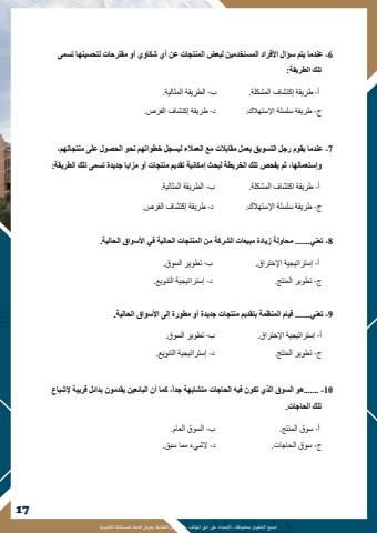 %u062c%u0645%u064a%u0639 %u0627%u0644%u062d%u0642%u0648%u0642 %u0645%u062d%u0641%u0648%u0638%u0629 %u0640 %u0627%u0625%u0644%u0639%u062a%u062f%u0627%u0621 %u0639%u0649%u0644 %u062d%u0642 %u0627%u0645%u0644%u0624%u0644%u0641 %u0628%u0627%u0644%u0646%u0633%u062e %u0623%u0648 %u0627%u0644%u0637%u0628%u0627%u0639%u0629 %u064a%u0639%u0631%u0636 %u0641%u0627%u0639%u0644%u0647 %u0644%u0644%u0645%u0633%u0627%u0626%u0644%u0629 %u0627%u0644%u0642%u0627%u0646%u0648%u0646%u064a%u062917166 -%u0639%u0646%u062f%u0645%u0627 %u064a%u062a%u0645 %u0633%u0624%u0627%u0644 %u0627%u0623%u0644%u0641%u0631%u0627%u062f %u0627%u0644%u0645%u0633%u062a%u062e%u062f%u0645%u064a%u0646 %u0644%u0628%u0639%u0636 %u0627%u0644%u0645%u0646%u062a%u062c%u0627%u062a %u0639%u0646 %u0623%u064a %u0634%u0643%u0627%u0648%u064a %u0623%u0648 %u0645%u0642%u062a%u0631%u062d%u0627%u062a %u0644%u062a%u062d%u0633%u064a%u0646%u0647%u0627 %u062a%u0633%u0645%u0649 %u062a%u0644%u0643 %u0627%u0644%u0637%u0631%u064a%u0642%u0629: %u0623- %u0637%u0631%u064a%u0642%u0629 %u0625%u0643%u062a%u0634%u0627%u0641 %u0627%u0644%u0645%u0634%u0643%u0644%u0629. %u0628 - %u0627%u0644%u0637%u0631%u064a%u0642%u0629 %u0627%u0644%u0645%u062b%u0627%u0644%u064a%u0629. %u062c- %u0637%u0631%u064a%u0642%u0629 %u0633%u0644%u0633%u0644%u0629 %u0627%u0625%u0644%u0633%u062a%u0647%u0627%u0644%u0643. %u062f - %u0637%u0631%u064a%u0642%u0629 %u0625%u0643%u062a%u0634%u0627%u0641 %u0627%u0644%u0641%u0631%u0635.7 -%u0639%u0646%u062f%u0645%u0627 %u064a%u0642%u0648%u0645 %u0631%u062c%u0644 %u0627%u0644%u062a%u0633%u0648%u064a%u0642 %u0628%u0639%u0645%u0644 %u0645%u0642%u0627%u0628%u0627%u0644%u062a %u0645%u0639 %u0627%u0644%u0639%u0645%u0627%u0644%u0621 %u0644%u064a%u0633%u062c%u0644 %u062e%u0637%u0648%u0627%u062a%u0647%u0645 %u0646%u062d%u0648 %u0627%u0644%u062d%u0635%u0648%u0644 %u0639%u0644%u0649 %u0645%u0646%u062a%u062c%u0627%u062a%u0647%u0645%u060c %u0648%u0625%u0633%u062a%u0639%u0645%u0627%u0644%u0647%u0627%u060c %u062b%u0645 %u064a%u0641%u062d%u0635 %u062a%u0644%u0643 %u0627%u0644%u062e%u0631%u064a%u0637%u0629 %u0644%u0628%u062d%u062b %u0625%u0645%u0643%u0627%u0646%u064a%u0629 %u062a%u0642%u062f%u064a%u0645 %u0645%u0646%u062a%u062c%u0627%u062a %u0623%u0648 %u0645%u0632%u0627%u064a%u0627 %u062c%u062f%u064a%u062f%u0629 %u062a%u0633%u0645%u0649 %u062a%u0644%u0643 %u0627%u0644%u0637%u0631%u064a%u0642%u0629: %u0623- %u0637%u0631%u064a%u0642%u0629 %u0627%u0643%u062a%u0634%u0627%u0641 %u0627%u0644%u0645%u0634%u0643%u0644%u0629. %u0628 - %u0627%u0644%u0637%u0631%u064a%u0642%u0629 %u0627%u0644%u0645%u062b%u0627%u0644%u064a%u0629. %u062c- %u0637%u0631%u064a%u0642%u0629 %u0633%u0644%u0633%u0644%u0629 %u0627%u0625%u0644%u0633%u062a%u0647%u0627%u0644%u0643. %u062f - %u0637%u0631%u064a%u0642%u0629 %u0625%u0643%u062a%u0634%u0627%u0641 %u0627%u0644%u0641%u0631%u0635.8 -%u062a%u0639%u0646%u064a....... %u0645%u062d%u0627%u0648%u0644%u0629 %u0632%u064a%u0627%u062f%u0629 %u0645%u0628%u064a%u0639%u0627%u062a %u0627%u0644%u0634%u0631%u0643%u0629 %u0645%u0646 %u0627%u0644%u0645%u0646%u062a%u062c%u0627%u062a %u0627%u0644%u062d%u0627%u0644%u064a%u0629 %u0641%u064a %u0627%u0623%u0644%u0633%u0648%u0627%u0642 %u0627%u0644%u062d%u0627%u0644%u064a%u0629.%u0623- %u0625%u0633%u062a%u0631%u0627%u062a%u064a%u062c%u064a%u0629 %u0627%u0625%u0644%u062e%u062a%u0631%u0627%u0642. %u0628 - %u062a%u0637%u0648%u064a%u0631 %u0627%u0644%u0633%u0648%u0642. %u062c- %u062a%u0637%u0648%u064a%u0631 %u0627%u0644%u0645%u0646%u062a%u062c. %u062f - %u0625%u0633%u062a%u0631%u0627%u062a%u064a%u062c%u064a%u0629 %u0627%u0644%u062a%u0646%u0648%u064a%u0639. 9 -%u062a%u0639%u0646%u064a....... %u0642%u064a%u0627%u0645 %u0627%u0644%u0645%u0646%u0638%u0645%u0629 %u0628%u062a%u0642%u062f%u064a%u0645 %u0645%u0646%u062a%u062c%u0627%u062a %u062c%u062f%u064a%u062f%u0629 %u0623%u0648 %u0645%u0637%u0648%u0631%u0629 %u0625%u0644%u0649 %u0627%u0623%u0644%u0633%u0648%u0627%u0642 %u0627%u0644%u062d%u0627%u0644%u064a%u0629.%u0623- %u0625%u0633%u062a%u0631%u0627%u062a%u064a%u062c%u064a%u0629 %u0627%u0625%u0644%u062e%u062a%u0631%u0627%u0642. %u0628 - %u062a%u0637%u0648%u064a%u0631 %u0627%u0644%u0633%u0648%u0642.%u062c- %u062a%u0637%u0648%u064a%u0631 %u0627%u0644%u0645%u0646%u062a%u062c. %u062f - %u0625%u0633%u062a%u0631%u0627%u062a%u064a%u062c%u064a%u0629 %u0627%u0644%u062a%u0646%u0648%u064a%u0639.%u064b%u060c %u0643%u0645%u0627 %u0623%u0646 %u0627%u0644%u0628%u0627%u0626%u0639%u064a%u0646 %u064a%u0642%u062f%u0645%u0648%u0646 %u0628%u062f%u0627%u0626%u0644 %u0642%u0631%u064a%u0628%u0629 %u0625%u0644%u0634%u0628%u0627%u0639 10....... -%u0647%u0648 %u0627%u0644%u0633%u0648%u0642 %u0627%u0644%u0630%u064a %u062a%u0643%u0648%u0646 %u0641%u064a%u0647 %u0627%u0644%u062d%u0627%u062c%u0627%u062a %u0645%u062a%u0634%u0627%u0628%u0647%u0629 %u062c%u062f%u0627%u062a%u0644%u0643 %u0627%u0644%u062d%u0627%u062c%u0627%u062a. %u0623- %u0633%u0648%u0642 %u0627%u0644%u0645%u0646%u062a%u062c. %u0628 - %u0627%u0644%u0633%u0648%u0642 %u0627%u0644%u0639%u0627%u0645.%u062c- %u0633%u0648%u0642 %u0627%u0644%u062d%u0627%u062c%u0627%u062a. %u062f - %u0627%u0644%u0634%u064a%u0621 %u0645%u0645%u0627 %u0633%u0628%u0642.