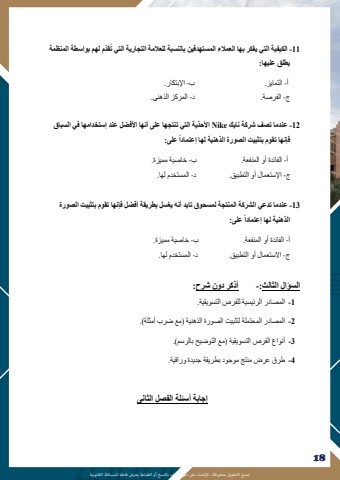 %u062c%u0645%u064a%u0639 %u0627%u0644%u062d%u0642%u0648%u0642 %u0645%u062d%u0641%u0648%u0638%u0629 %u0640 %u0627%u0625%u0644%u0639%u062a%u062f%u0627%u0621 %u0639%u0649%u0644 %u062d%u0642 %u0627%u0645%u0644%u0624%u0644%u0641 %u0628%u0627%u0644%u0646%u0633%u062e %u0623%u0648 %u0627%u0644%u0637%u0628%u0627%u0639%u0629 %u064a%u0639%u0631%u0636 %u0641%u0627%u0639%u0644%u0647 %u0644%u0644%u0645%u0633%u0627%u0626%u0644%u0629 %u0627%u0644%u0642%u0627%u0646%u0648%u0646%u064a%u0629181711 -%u0627%u0644%u0643%u064a%u0641%u064a%u0629 %u0627%u0644%u062a%u064a %u064a%u0641%u0643%u0631 %u0628%u0647%u0627 %u0627%u0644%u0639%u0645%u0627%u0644%u0621 %u0627%u0644%u0645%u0633%u062a%u0647%u062f%u0641%u064a%u0646 %u0628%u0627%u0644%u0646%u0633%u0628%u0629 %u0644%u0644%u0639%u0627%u0644%u0645%u0629 %u0627%u0644%u062a%u062c%u0627%u0631%u064a%u0629 %u0627%u0644%u062a%u064a %u062a%u064f%u0642%u0651%u062f%u0645 %u0644%u0647%u0645 %u0628%u0648%u0627%u0633%u0637%u0629 %u0627%u0644%u0645%u0646%u0638%u0645%u0629 %u064a%u0637%u0644%u0642 %u0639%u0644%u064a%u0647%u0627:%u0623- %u0627%u0644%u062a%u0645%u0627%u064a%u0632. %u0628 - %u0627%u0625%u0644%u0628%u062a%u0643%u0627%u0631. %u062c- %u0627%u0644%u0641%u0631%u0635%u0629. %u062f - %u0627%u0644%u0645%u0631%u0643%u0632 %u0627%u0644%u0630%u0647%u0646%u0649. 12 -%u0639%u0646%u062f%u0645%u0627 %u062a%u0635%u0641 %u0634%u0631%u0643%u0629 %u0646%u0627%u064a%u0643 Nike %u0627%u0623%u0644%u062d%u0630%u064a%u0629 %u0627%u0644%u062a%u064a %u062a%u0646%u062a%u062c%u0647%u0627 %u0639%u0644%u0649 %u0623%u0646%u0647%u0627 %u0627%u0623%u0644%u0641%u0636%u0644 %u0639%u0646%u062f %u0625%u0633%u062a%u062e%u062f%u0627%u0645%u0647%u0627 %u0641%u064a %u0627%u0644%u0633%u0628%u0627%u0642 %u064b %u0639%u0644%u0649:%u0641%u0625%u0646%u0647%u0627 %u062a%u0642%u0648%u0645 %u0628 %u062a%u062b%u0628%u064a%u062a %u0627%u0644%u0635%u0648%u0631%u0629 %u0627%u0644%u0630%u0647%u0646%u064a%u0629 %u0644%u0647%u0627 %u0625%u0639%u062a%u0645%u0627%u062f%u0627%u0623- %u0627%u0644%u0641%u0627%u0626%u062f%u0629 %u0623%u0648 %u0627%u0644%u0645%u0646%u0641%u0639%u0629. %u0628 - %u062e%u0627%u0635%u064a%u0629 %u0645%u0645%u064a%u0632%u0629. %u062c- %u0627%u0625%u0644%u0633%u062a%u0639%u0645%u0627%u0644 %u0623%u0648 %u0627%u0644%u062a%u0637%u0628%u064a%u0642. %u062f - %u0627%u0644%u0645%u0633%u062a%u062e%u062f%u0645 %u0644%u0647%u0627. 13 -%u0639%u0646%u062f%u0645%u0627 %u062a%u062f%u0639%u064a %u0627%u0644%u0634%u0631%u0643%u0629 %u0627%u0644%u0645%u0646%u062a%u062c%u0629 %u0644%u0645%u0633%u062d%u0648%u0642 %u062a%u0627%u064a%u062f %u0623%u0646%u0647 %u064a%u063a%u0633%u0644 %u0628%u0637%u0631%u064a%u0642%u0629 %u0623%u0641%u0636%u0644 %u0641%u0625%u0646%u0647%u0627 %u062a%u0642%u0648%u0645 %u0628%u062a%u062b%u0628%u064a%u062a %u0627%u0644%u0635%u0648%u0631%u0629 %u064b %u0639%u0644%u0649: %u0627%u0644%u0630%u0647%u0646%u064a%u0629 %u0644%u0647%u0627 %u0625%u0639%u062a%u0645%u0627%u062f%u0627%u0623- %u0627%u0644%u0641%u0627%u0626%u062f%u0629 %u0623%u0648 %u0627%u0644%u0645%u0646%u0641%u0639%u0629. %u0628 - %u062e%u0627%u0635%u064a%u0629 %u0645%u0645%u064a%u0632%u0629. %u062c- %u0627%u0627%u0644%u0633%u062a%u0639%u0645%u0627%u0644 %u0623%u0648 %u0627%u0644%u062a%u0637%u0628%u064a%u0642. %u062f - %u0627%u0644%u0645%u0633%u062a%u062e%u062f%u0645 %u0644%u0647%u0627.%u0627%u0644%u0633%u0624%u0627%u0644 %u0627%u0644%u062b%u0627 %u0644%u062b :- %u0623%u0630%u0643%u0631 %u062f%u0648%u0646 %u0634%u0631%u062d: 1 -%u0627%u0644%u0645%u0635%u0627%u062f%u0631 %u0627%u0644%u0631%u0626%u064a%u0633%u064a%u0629 %u0644%u0644%u0641%u0631%u0635 %u0627%u0644%u062a%u0633%u0648%u064a%u0642%u064a%u0629. 2 -%u0627%u0644%u0645%u0635%u0627%u062f%u0631 %u0627%u0644%u0645%u062d%u062a%u0645%u0644%u0629 %u0644%u062a%u062b%u0628%u064a%u062a %u0627%u0644%u0635%u0648%u0631%u0629 %u0627%u0644%u0630%u0647%u0646%u064a%u0629 )%u0645%u0639 %u0636%u0631%u0628 %u0623%u0645%u062b%u0644%u0629(. 3 -%u0623%u0646%u0648%u0627%u0639 %u0627%u0644%u0641%u0631%u0635 %u0627%u0644%u062a%u0633%u0648%u064a%u0642%u064a%u0629 )%u0645%u0639 %u0627%u0644%u062a%u0648%u0636%u064a%u062d %u0628%u0627%u0644%u0631%u0633%u0645(. 4 -%u0637%u0631%u0642 %u0639%u0631%u0636 %u0645%u0646%u062a%u062c %u0645%u0648%u062c%u0648%u062f %u0628%u0637%u0631%u064a%u0642%u0629 %u062c%u062f%u064a%u062f%u0629 %u0648%u0631%u0627%u0642%u064a%u0629. %u0625%u062c%u0627%u0628%u0629 %u0623%u0633%u0626%u0644%u0629 %u0627%u0644%u0641%u0635%u0644 %u0627%u0644%u062b%u0627%u0646%u0649