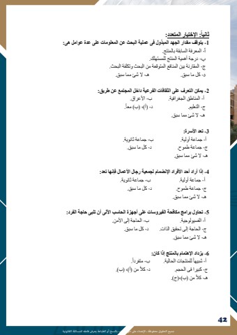 %u062c%u0645%u064a%u0639 %u0627%u0644%u062d%u0642%u0648%u0642 %u0645%u062d%u0641%u0648%u0638%u0629 %u0640 %u0627%u0625%u0644%u0639%u062a%u062f%u0627%u0621 %u0639%u0649%u0644 %u062d%u0642 %u0627%u0645%u0644%u0624%u0644%u0641 %u0628%u0627%u0644%u0646%u0633%u062e %u0623%u0648 %u0627%u0644%u0637%u0628%u0627%u0639%u0629 %u064a%u0639%u0631%u0636 %u0641%u0627%u0639%u0644%u0647 %u0644%u0644%u0645%u0633%u0627%u0626%u0644%u0629 %u0627%u0644%u0642%u0627%u0646%u0648%u0646%u064a%u06294239%u064b: %u0627%u0625%u0644%u062e%u062a%u064a%u0627%u0631 %u0627%u0644%u0645%u062a%u0639%u062f%u062f: %u062b%u0627%u0646%u064a%u06271 -%u064a%u062a%u0648%u0642%u0641 %u0645%u0642%u062f%u0627%u0631 %u0627%u0644%u062c%u0647%u062f %u0627%u0644%u0645%u0628%u0630%u0648%u0644 %u0641%u0649 %u0639%u0645%u0644%u064a%u0629 %u0627%u0644%u0628%u062d%u062b %u0639%u0646 %u0627%u0644%u0645%u0639%u0644%u0648%u0645%u0627%u062a %u0639%u0644%u0649 %u0639%u062f%u0629 %u0639%u0648%u0627%u0645%u0644 %u0647%u0649: %u0623- %u0627%u0644%u0645%u0639%u0631%u0641%u0629 %u0627%u0644%u0633%u0627%u0628%u0642%u0629 %u0628%u0627%u0644%u0645%u0646%u062a%u062c. %u0628- %u062f%u0631%u062c%u0629 %u0623%u0647%u0645%u064a%u0629 %u0627%u0644%u0645%u0646%u062a%u062c %u0644%u0644%u0645%u0633%u062a%u0647%u0644%u0643 .%u062c- %u0627%u0644%u0645%u0642%u0627%u0631%u0646%u0629 %u0628%u064a%u0646 %u0627%u0644%u0645%u0646%u0627%u0641%u0639 %u0627%u0644%u0645%u062a%u0648%u0642%u0639%u0629 %u0645%u0646 %u0627%u0644%u0628%u062d%u062b %u0648%u062a%u0643%u0644%u0641%u0629 %u0627%u0644%u0628%u062d%u062b . %u062f- %u0643%u0644 %u0645%u0627 %u0633%u0628%u0642. %u0647%u0640- %u0627%u0644 %u0634%u0626 %u0645%u0645%u0627 %u0633%u0628%u0642. 2 -%u064a%u0645%u0643%u0646 %u0627%u0644%u062a%u0639%u0631%u0641 %u0639%u0644%u0649 %u0627%u0644%u062b%u0642%u0627%u0641%u0627%u062a %u0627%u0644%u0641%u0631%u0639%u064a%u0629 %u062f%u0627%u062e%u0644 %u0627%u0644%u0645%u062c%u062a%u0645%u0639 %u0639%u0646 %u0637%u0631%u064a%u0642: %u0623- %u0627%u0644%u0645%u0646%u0627%u0637%u0642 %u0627%u0644%u062c%u063a%u0631%u0627%u0641%u064a%u0629. %u0628 - %u0627%u0623%u0644%u0639%u0631%u0627%u0642.%u064b %u062c- %u0627%u0644%u062a%u0639%u0644%u064a%u0645. %u062f - )%u0623(%u060c )%u0628 .( %u0645%u0639%u0627 %u0647%u0640- %u0627%u0644 %u0634%u0626 %u0645%u0645%u0627 %u0633%u0628%u0642. 3 -%u062a%u0639%u062f %u0627%u0623%u0644%u0633%u0631%u0629: %u0623- %u062c%u0645%u0627%u0639%u0629 %u0623%u0648%u0644%u064a%u0629. %u0628 - %u062c%u0645%u0627%u0639%u0629 %u062b%u0627%u0646%u0648%u064a%u0629. %u062c- %u062c%u0645%u0627%u0639%u0629 %u0637%u0645%u0648%u062d. %u062f - %u0643%u0644 %u0645%u0627 %u0633%u0628%u0642.%u0647%u0640- %u0627%u0644 %u0634%u0626 %u0645%u0645%u0627 %u0633%u0628%u0642.4 -%u0625%u0630%u0627 %u0623%u0631%u0627%u062f %u0623%u062d%u062f %u0627%u0623%u0644%u0641%u0631%u0627%u062f %u0627%u0625%u0644%u0646%u0636%u0645%u0627%u0645 %u0644%u062c%u0645%u0639%u064a%u0629 %u0631%u062c%u0627%u0644 %u0627%u0623%u0644%u0639%u0645%u0627%u0644 %u0641%u0625%u0646%u0647%u0627 %u062a%u0639%u062f: %u0623- %u062c%u0645%u0627%u0639%u0629 %u0623%u0648%u0644%u064a%u0629. %u0628 - %u062c%u0645%u0627%u0639%u0629 %u062b%u0627%u0646%u0648%u064a%u0629. %u062c- %u062c%u0645%u0627%u0639%u0629 %u0637%u0645%u0648%u062d. %u062f - %u0643%u0644 %u0645%u0627 %u0633%u0628%u0642. %u0647%u0640- %u0627%u0644 %u0634%u0626 %u0645%u0645%u0627 %u0633%u0628%u0642.5 -%u062a%u062d%u0627%u0648%u0644 %u0628%u0631%u0627%u0645%u062c %u0645%u0643%u0627%u0641%u062d%u0629 %u0627%u0644%u0641%u064a%u0631%u0648%u0633%u0627%u062a %u0639%u0644%u0649 %u0623%u062c%u0647%u0632%u0629 %u0627%u0644%u062d%u0627%u0633%u0628 %u0627%u0622%u0644%u0644%u0649 %u0623%u0646 %u062a%u0644%u0628%u0649 %u062d%u0627%u062c%u0629 %u0627%u0644%u0641%u0631%u062f: %u0623- %u0627%u0644%u0641%u0633%u064a%u0648%u0644%u0648%u062c%u064a%u0629. %u0628 - %u0627%u0644%u062d%u0627%u062c%u0629 %u0625%u0644%u0649 %u0627%u0623%u0644%u0645%u0646. %u062c- %u0627%u0644%u062d%u0627%u062c%u0629 %u0625%u0644%u0649 %u062a%u062d%u0642%u064a%u0642 %u0627%u0644%u0630%u0627%u062a . %u062f - %u0643%u0644 %u0645%u0627 %u0633%u0628%u0642. %u0647%u0640- %u0627%u0644 %u0634%u0626 %u0645%u0645%u0627 %u0633%u0628%u0642. 6 -%u064a%u0632%u062f%u0627%u062f %u0627%u0625%u0644%u0647%u062a%u0645%u0627%u0645 %u0628%u0627%u0644%u0645%u0646%u062a%u062c %u0625%u0630%u0627 %u0643%u0627%u0646:%u064b. %u064b %u0623- %u0644%u0644%u0645%u0646%u062a%u062c%u0627%u062a %u0627%u0644%u062d%u0627%u0644%u064a%u0629%u0634%u0628%u064a%u0647%u0627 . %u0628 - %u0645%u062a%u0641%u0631%u062f%u0627%u064b %u0645%u0646 )%u0623(%u060c )%u0628 (. %u062c- %u0643%u0628%u064a%u0631%u0627 %u0641%u0649 %u0627%u0644%u062d%u062c%u0645. %u062f - %u0643%u0627%u0644%u064b %u0645%u0646 )%u0628 (%u060c)%u062c(. %u0647%u0640- %u0643%u0627%u0644