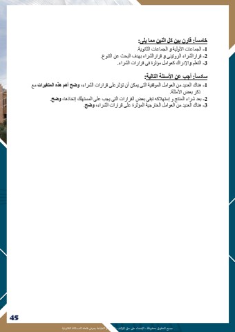 %u062c%u0645%u064a%u0639 %u0627%u0644%u062d%u0642%u0648%u0642 %u0645%u062d%u0641%u0648%u0638%u0629 %u0640 %u0627%u0625%u0644%u0639%u062a%u062f%u0627%u0621 %u0639%u0649%u0644 %u062d%u0642 %u0627%u0645%u0644%u0624%u0644%u0641 %u0628%u0627%u0644%u0646%u0633%u062e %u0623%u0648 %u0627%u0644%u0637%u0628%u0627%u0639%u0629 %u064a%u0639%u0631%u0636 %u0641%u0627%u0639%u0644%u0647 %u0644%u0644%u0645%u0633%u0627%u0626%u0644%u0629 %u0627%u0644%u0642%u0627%u0646%u0648%u0646%u064a%u06294542%u064b: %u0642%u0627%u0631%u0646 %u0628%u064a%u0646 %u0643%u0644 %u0627%u062b%u0646%u064a%u0646 %u0645%u0645%u0627 %u064a%u0644%u0649 : %u062e%u0627%u0645%u0633%u06271 -%u0627%u0644%u062c%u0645%u0627%u0639%u0627%u062a %u0627%u0623%u0644%u0648%u0644%u064a%u0629 %u0648 %u0627%u0644%u062c%u0645%u0627%u0639%u0627%u062a %u0627%u0644%u062b%u0627%u0646%u0648%u064a%u0629. 2 -%u0642%u0631%u0627%u0631%u0627%u0644%u0634%u0631%u0627%u0621 %u0627%u0644%u0631%u0648%u062a%u064a%u0646%u0649 %u0648 %u0642%u0631%u0627%u0631%u0627%u0644%u0634%u0631%u0627%u0621 %u0628%u0647%u062f%u0641 %u0627%u0644%u0628%u062d%u062b %u0639%u0646 %u0627%u0644%u062a%u0646%u0648%u0639. 3 -%u0627%u0644%u062a%u0639%u0644%u0645 %u0648%u0627%u0625%u0644%u062f%u0631%u0627%u0643 %u0643%u0639%u0648%u0627%u0645%u0644 %u0645%u0624%u062b%u0631%u0629 %u0641%u0649 %u0642%u0631%u0627%u0631%u0627%u062a %u0627%u0644%u0634%u0631%u0627%u0621. %u064b: %u0623%u062c%u0628 %u0639%u0646 %u0627%u0623%u0644%u0633%u0626%u0644%u0629 %u0627%u0644%u062a%u0627%u0644%u064a%u0629: %u0633%u0627%u062f%u0633%u06271 -%u0647%u0646%u0627%u0643 %u0627%u0644%u0639%u062f%u064a%u062f %u0645%u0646 %u0627%u0644%u0639%u0648%u0627%u0645%u0644 %u0627%u0644%u0645%u0648%u0642%u0641%u064a%u0629 %u0627%u0644%u062a%u0649 %u064a%u0645%u0643%u0646 %u0623%u0646 %u062a%u0624%u062b%u0631%u0639%u0644%u0649 %u0642%u0631%u0627%u0631%u0627%u062a %u0627%u0644%u0634%u0631%u0627%u0621%u060c %u0648%u0636%u062d %u0623%u0647%u0645 %u0647%u0630%u0647 %u0627%u0644%u0645%u062a%u063a%u064a%u0631%u0627%u062a %u0645%u0639 %u0630%u0643%u0631 %u0628%u0639%u0636 %u0627%u0623%u0644%u0645%u062b%u0644%u0629. 2 -%u0628%u0639%u062f %u0634%u0631%u0627%u0621 %u0627%u0644%u0645%u0646%u062a%u062c %u0648 %u0625%u0633%u062a%u0647%u0627%u0644%u0643%u0647 %u062a%u0628%u0642%u0649 %u0628%u0639%u0636 %u0627%u0644%u0642%u0631%u0627%u0631%u0627%u062a %u0627%u0644%u062a%u0649 %u064a%u062c%u0628 %u0639%u0644%u0649 %u0627%u0644%u0645%u0633%u062a%u0647%u0644%u0643 %u0625%u062a%u062e%u0627%u0630%u0647%u0627%u060c %u0648%u0636%u062d.3 -%u0647%u0646%u0627%u0643 %u0627%u0644%u0639%u062f%u064a%u062f %u0645%u0646 %u0627%u0644%u0639%u0648%u0627%u0645%u0644 %u0627%u0644%u062e%u0627%u0631%u062c%u064a%u0629 %u0627%u0644%u0645%u0624%u062b%u0631%u0629 %u0639%u0644%u0649 %u0642%u0631%u0627%u0631%u0627%u062a %u0627%u0644%u0634%u0631%u0627%u0621%u060c %u0648%u0636%u062d.