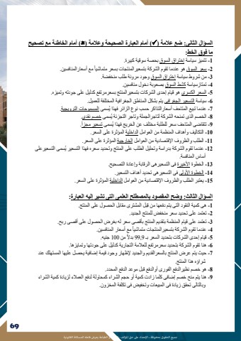 %u062c%u0645%u064a%u0639 %u0627%u0644%u062d%u0642%u0648%u0642 %u0645%u062d%u0641%u0648%u0638%u0629 %u0640 %u0627%u0625%u0644%u0639%u062a%u062f%u0627%u0621 %u0639%u0649%u0644 %u062d%u0642 %u0627%u0645%u0644%u0624%u0644%u0641 %u0628%u0627%u0644%u0646%u0633%u062e %u0623%u0648 %u0627%u0644%u0637%u0628%u0627%u0639%u0629 %u064a%u0639%u0631%u0636 %u0641%u0627%u0639%u0644%u0647 %u0644%u0644%u0645%u0633%u0627%u0626%u0644%u0629 %u0627%u0644%u0642%u0627%u0646%u0648%u0646%u064a%u06296967%u0627%u0644%u0633%u0624%u0627%u0644 %u0627%u0644%u062b%u0627%u0646%u0649: %u0636%u0639 %u0639%u0627%u0644%u0645%u0629 )%u2713( %u0623%u0645%u0627%u0645 %u0627%u0644%u0639%u0628%u0627%u0631%u0629 %u0627%u0644%u0635%u062d%u064a%u062d%u0629 %u0648%u0639%u0627%u0644%u0645%u0629 )%uf0fb )%u0623%u0645%u0627%u0645 %u0627%u0644%u062e%u0627%u0637%u0626%u0629 %u0645%u0639 %u062a%u0635%u062d%u064a%u062d %u0645%u0627 %u0641%u0648%u0642 %u0627%u0644%u062e%u0637: 1 -%u062a%u062a%u0645%u064a%u0632 %u0633%u064a%u0627%u0633%u0629 %u0625%u062e%u062a%u0631%u0627%u0642 %u0627%u0644%u0633%u0648%u0642 %u0628%u062d%u0635%u0629 %u0633%u0648%u0642%u064a%u0629 %u0643%u0628%u064a%u0631%u0629. %u064b%u0645%u0639 %u0623%u0633%u0639%u0627%u0631%u0627%u0644%u0645%u0646%u0627%u0641%u0633%u064a%u0646.2 -%u0633%u0639%u0631 %u0627%u0644%u0633%u0648%u0642 %u0647%u0648 %u0639%u0646%u062f%u0645%u0627 %u062a%u0642%u0648%u0645 %u0627%u0644%u0634%u0631%u0643%u0629 %u0628%u062a%u0633%u0639%u064a%u0631%u0627%u0644%u0645%u0646%u062a%u062c%u0627%u062a %u0628%u0633%u0639%u0631 %u0645%u062a%u0645%u0627%u0634%u064a%u06273 -%u0645%u0646 %u0634%u0631%u0648%u0637 %u0633%u064a%u0627%u0633%u0629 %u0625%u062e%u062a%u0631%u0627%u0642 %u0627%u0644%u0633%u0648%u0642 %u0648%u062c%u0648%u062f %u0645%u0631%u0648%u0646%u0629 %u0637%u0644%u0628 %u0645%u0646%u062e%u0641%u0636%u0629. 4 -%u062a%u0645%u062a%u0627%u0632%u0633%u064a%u0627%u0633%u0629 %u0643%u0634%u0637 %u0627%u0644%u0633%u0648%u0642 %u0628%u0635%u0639%u0648%u0628%u0629 %u062f%u062e%u0648%u0644 %u0645%u0646%u0627%u0641%u0633%u064a%u0646. 5 -%u0627%u0644%u0633%u0639%u0631 %u0627%u0644%u0643%u0633%u0631%u0649 %u0647%u0648 %u0642%u064a%u0627%u0645 %u0625%u062d%u062f%u0649 %u0627%u0644%u0634%u0631%u0643%u0627%u062a %u0628%u062a%u0633%u0639%u064a%u0631%u0627%u0644%u0645%u0646%u062a%u062c %u0628%u0633%u0639%u0631%u0645%u0631%u062a%u0641%u0639 %u0643%u062f%u0644%u064a%u0644 %u0639%u0644%u0649 %u062c%u0648%u062f%u062a%u0647 %u0648%u062a%u0645%u064a%u0632%u0647. 6 -%u0633%u064a%u0627%u0633%u0629 %u0627%u0644%u062a%u0633%u0639%u064a%u0631 %u0627%u0644%u062c%u063a%u0631%u0627%u0641%u0649 %u064a%u062a%u0645 %u0628%u0634%u0643%u0644 %u0627%u0644%u0645%u0646%u0627%u0637%u0642 %u0627%u0644%u062c%u063a%u0631%u0627%u0641%u064a%u0629 %u0627%u0644%u0645%u062e%u062a%u0644%u0641%u0629 %u0644%u0644%u0639%u0645%u064a%u0644. %u064f%u0633%u0645%u0649 %u0627%u0644%u0645%u0633%u0645%u0648%u062d%u0627%u062a %u0627%u0644%u062a%u0631%u0648%u064a%u062c%u064a%u0629.7 -%u0639%u0646%u062f%u0645%u0627 %u062a%u0628%u064a%u0639 %u0627%u0644%u0645%u062a%u0627%u062d%u0641 %u0623%u0633%u0639%u0627%u0631%u0627%u0644%u062a%u0630%u0627%u0643%u0631 %u062d%u0633%u0628 %u0646%u0648%u0639 %u0627%u0644%u0632%u0627%u0626%u0631 %u0641%u0647%u0630%u0627 %u064a%u064f%u0633%u0645%u0649 %u062e%u0635%u0645 %u0646%u0642%u062f%u0649. 8 -%u0627%u0644%u062e%u0635%u0645 %u0627%u0644%u0630%u0649 %u062a%u0645%u0646%u062d%u0647 %u0627%u0644%u0634%u0631%u0643%u0629 %u0644%u062a%u0627%u062c%u0631%u0627%u0644%u062c%u0645%u0644%u0629 %u0648%u062a%u0627%u062c%u0631 %u0627%u0644%u062a%u062c%u0632%u0626%u0629 %u064a%u064f%u0633%u0645%u0649 %u062a%u0633%u0639%u064a%u0631 %u0645%u062c%u0632%u0623. 9 -%u062a%u062a%u0642%u0627%u0636%u0649 %u0627%u0644%u0645%u062a%u0627%u062d%u0641 %u0633%u0639%u0631 %u0644%u0644%u0637%u0644%u0628%u0629 %u0645%u062e%u062a%u0644%u0641 %u0639%u0646 %u0627%u0644%u062e%u0631%u064a%u062c %u0641%u0647%u0630%u0627 %u064a10 -%u0627%u0644%u062a%u0643%u0627%u0644%u064a%u0641 %u0648%u0623%u0647%u062f%u0627%u0641 %u0627%u0644%u0645%u0646%u0638%u0645%u0629 %u0645%u0646 %u0627%u0644%u0639%u0648%u0627%u0645%u0644 %u0627%u0644%u062f%u0627%u062e%u0644%u064a%u0629 %u0627%u0644%u0645%u0624%u062b%u0631%u0629 %u0639%u0644%u0649 %u0627%u0644%u0633%u0639%u0631.11 -%u0627%u0644%u0637%u0644%u0628 %u0648%u0627%u0644%u0638%u0631%u0648%u0641 %u0627%u0625%u0644%u0642%u062a%u0635%u0627%u062f%u064a%u0629 %u0645%u0646 %u0627%u0644%u0639%u0648%u0627%u0645%u0644 %u0627%u0644%u062e%u0627%u0631%u062c%u064a%u0629 %u0627%u0644%u0645%u0624%u062b%u0631%u0629 %u0639%u0644%u0649 %u0627%u0644%u0633%u0639%u0631. %u064f%u0633%u0645%u0649 %u0627%u0644%u062a%u0633%u0639%u064a%u0631%u0639%u0644%u064912 -%u0639%u0646%u062f%u0645%u0627 %u062a%u0642%u0648%u0645 %u0627%u0644%u0634%u0631%u0643%u0629 %u0628%u062f%u0631%u0627%u0633%u0629 %u0648%u062a%u062d%u0644%u064a%u0644 %u0627%u0644%u0637%u0644%u0628 %u0639%u0644%u0649 %u0627%u0644%u0645%u0646%u062a%u062c %u0648%u062a%u062d%u062f%u064a%u062f %u0633%u0639%u0631%u0647 %u0641%u0647%u0630%u0627 %u0627%u0644%u062a%u0633%u0639%u064a%u0631 %u064a%u0623%u0633%u0627%u0633 %u0627%u0644%u0645%u0646%u0627%u0641%u0633%u0629. 13 -%u0627%u0644%u062e%u0637%u0648%u0629 %u0627%u0623%u0644%u062e%u064a%u0631%u0629 %u0641%u0649 %u0627%u0644%u062a%u0633%u0639%u064a%u0631%u0647%u0649 %u0627%u0644%u0631%u0642%u0627%u0628%u0629 %u0648%u0625%u0639%u0627%u062f%u0629 %u0627%u0644%u062a%u0635%u062d%u064a%u062d.14 -%u0627%u0644%u062e%u0637%u0648%u0629 %u0627%u0623%u0644%u0648%u0644%u0649 %u0641%u0649 %u0627%u0644%u062a%u0633%u0639%u064a%u0631%u0647%u0649 %u062a%u062d%u062f%u064a%u062f %u0623%u0647%u062f%u0627%u0641 %u0627%u0644%u062a%u0633%u0639%u064a%u0631. 15 -%u064a%u0639%u062a%u0628%u0631 %u0627%u0644%u0637%u0644%u0628 %u0648%u0627%u0644%u0638%u0631%u0648%u0641 %u0627%u0625%u0644%u0642%u062a%u0635%u0627%u062f%u064a%u0629 %u0645%u0646 %u0627%u0644%u0639%u0648%u0627%u0645%u0644 %u0627%u0644%u062f%u0627%u062e%u0644%u064a%u0629 %u0627%u0644%u0645%u0624%u062b%u0631%u0629 %u0639%u0644%u06