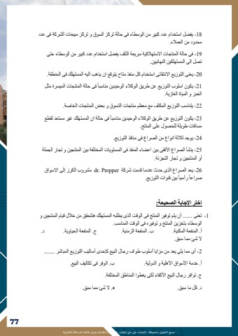 %u062c%u0645%u064a%u0639 %u0627%u0644%u062d%u0642%u0648%u0642 %u0645%u062d%u0641%u0648%u0638%u0629 %u0640 %u0627%u0625%u0644%u0639%u062a%u062f%u0627%u0621 %u0639%u0649%u0644 %u062d%u0642 %u0627%u0645%u0644%u0624%u0644%u0641 %u0628%u0627%u0644%u0646%u0633%u062e %u0623%u0648 %u0627%u0644%u0637%u0628%u0627%u0639%u0629 %u064a%u0639%u0631%u0636 %u0641%u0627%u0639%u0644%u0647 %u0644%u0644%u0645%u0633%u0627%u0626%u0644%u0629 %u0627%u0644%u0642%u0627%u0646%u0648%u0646%u064a%u0629777518 -%u064a%u0641%u0636%u0644 %u0627%u0633%u062a%u062e%u062f%u0627%u0645 %u0639%u062f%u062f %u0643%u0628%u064a%u0631 %u0645%u0646 %u0627%u0644%u0648%u0633%u0637%u0627%u0621 %u0641%u0649 %u062d%u0627%u0644%u0629 %u062a%u0631%u0643%u0632 %u0627%u0644%u0633%u0648%u0642 %u0648 %u062a%u0631%u0643%u0632 %u0645%u0628%u064a%u0639%u0627%u062a %u0627%u0644%u0634%u0631%u0643%u0629 %u0641%u0649 %u0639%u062f%u062f %u0645%u062d%u062f%u0648%u062f %u0645%u0646 %u0627%u0644%u0639%u0645%u0627%u0644%u0621.19 -%u0641%u0649 %u062d%u0627%u0644%u0629 %u0627%u0644%u0645%u0646%u062a%u062c%u0627%u062a %u0627%u0627%u0644%u0633%u062a%u0647%u0627%u0644%u0643%u064a%u0629 %u0633%u0631%u064a%u0639%u0629 %u0627%u0644%u062a%u0644%u0641 %u064a%u0641%u0636%u0644 %u0627%u0633%u062a%u062e%u062f%u0627%u0645 %u0639%u062f%u062f %u0643%u0628%u064a%u0631 %u0645%u0646 %u0627%u0644%u0648%u0633%u0637%u0627%u0621 %u062d%u062a%u0649 %u062a%u0635%u0644 %u0627%u0644%u0649 %u0627%u0644%u0645%u0633%u062a%u0647%u0644%u0643%u064a%u0646 %u0627%u0644%u0646%u0647%u0627%u0626%u064a%u064a%u0646.20 -%u064a%u0639%u0646%u0649 %u0627%u0644%u062a%u0648%u0632%u064a%u0639 %u0627%u0627%u0644%u0646 %u062a%u0642%u0627%u0626%u0649 %u0627%u0633%u062a%u062e%u062f%u0627%u0645 %u0643%u0644 %u0645%u0646%u0641%u0630 %u0645%u062a%u0627%u062d %u064a%u062a%u0648%u0642%u0639 %u0627%u0646 %u064a%u0630%u0647%u0628 %u0627%u0644%u064a%u0647 %u0627%u0644%u0645%u0633%u062a%u0647%u0644%u0643 %u0641%u0649 %u0627%u0644%u0645%u0646%u0637%u0642%u0629. %u064b %u0641%u0649 %u062d%u0627%u0644%u0629 %u0627%u0644%u0645%u0646%u062a%u062c%u0627%u062a %u0627%u0644%u0645%u064a%u0633%u0631%u0629 %u0645%u062b%u064421 -%u064a%u0643%u0648%u0646 %u0627%u0633%u0644%u0648%u0628 %u0627%u0644%u062a%u0648%u0632%u064a%u0639 %u0639%u0646 %u0637%u0631%u064a%u0642 %u0627%u0644%u0648%u0643%u0627%u0644%u0621 %u0627%u0644%u0648%u062d%u064a%u062f%u064a%u0646 %u0645%u0646%u0627%u0633%u0628%u0627%u0627%u0644%u062e%u0628%u0632 %u0648 %u0627%u0644%u0645%u064a%u0627%u0629 %u0627%u0644%u063a%u0627%u0632%u064a%u0629.22 -%u064a%u062a%u0646%u0627%u0633%u0628 %u0627%u0644%u062a%u0648%u0632%u064a%u0639 %u0627%u0644%u0645%u0643%u062b%u0641 %u0645%u0639 %u0645%u0639%u0638%u0645 %u0645%u0646%u062a%u062c%u0627%u062a %u0627%u0644%u062a%u0633%u0648%u0642 %u0648 %u0628%u0639%u0636 %u0627%u0644%u0645%u0646%u062a%u062c%u0627%u062a %u0627%u0644%u062e%u0627%u0635%u0629.%u064b %u0641%u0649 %u062d%u0627%u0644%u0629 %u0627%u0646 %u0627%u0644%u0645%u0633%u062a%u0647%u0644%u0643 %u063a%u064a%u0631 %u0645%u0633%u062a%u0639%u062f %u0644%u0642%u0637%u063923 -%u064a%u0643%u0648%u0646 %u0627%u0644%u062a%u0648%u0632%u064a%u0639 %u0639%u0646 %u0637%u0631%u064a%u0642 %u0627%u0644%u0648%u0643%u0627%u0644%u0621 %u0627%u0644%u0648%u062d%u064a%u062f%u064a%u0646 %u0645%u0646%u0627%u0633%u0628%u0627%u0645%u0633%u0627%u0641%u0627%u062a %u0637%u0648%u064a%u0644%u0629 %u0644%u0644%u062d%u0635%u0648%u0644 %u0639%u0644%u0649 %u0627%u0644%u0645%u0646%u062a%u062c.24 -%u064a%u0648%u062c%u062f %u062b%u0627%u0644%u062b%u0629 %u0627%u0646%u0648%u0627%u0639 %u0645%u0646 %u0627%u0644%u0635%u0631%u0627%u0639 %u0641%u0649 %u0645%u0646%u0627%u0641%u0630 %u0627%u0644%u062a%u0648%u0632%u064a%u0639. 25 -%u064a%u0646%u0634%u0623 %u0627%u0644%u0635%u0631%u0627%u0639 %u0627%u0623%u0644%u0641%u0642%u0649 %u0628%u064a%u0646 %u0627%u0639%u0636%u0627%u0621 %u0627%u0644%u0645%u0646%u0641%u0630 %u0641%u0649 %u0627%u0644%u0645%u0633%u062a%u0648%u064a%u0627%u062a %u0627%u0644%u0645%u062e%u062a%u0644%u0641%u0629 %u0628%u064a%u0646 %u0627%u0644%u0645%u0646%u062a%u062c%u064a%u0646 %u0648 %u062a%u062c%u0627%u0631 %u0627%u0644%u062c%u0645%u0644%u0629 %u0623%u0648 %u0627%u0644%u0645%u0646%u062a%u062c%u064a%u0646 %u0648 %u062a%u062c%u0627%u0631 %u0627%u0644%u062a%u062c%u0632%u0626%u0629. 26 -%u064a%u0639%u062f %u0627%u0644%u0635%u0631%u0627%u0639 %u0627%u0644%u0630%u0649 %u062d%u062f%u062b %u0639%u0646%u062f%u0645%u0627 %u0642%u062f%u0645%u062a %u0634%u0631%u0643%u0629 Propper. dr %u0645%u0634%u0631%u0648%u0628 %u0627%u0644%u0643%u0631%u0632 %u0625%u0644%u0649 %u0627%u0627%u0644%u0633%u0648%u0627%u0642 %u064b %u0628%u064a%u0646 %u0642%u0646%u0648%u0627%u062a %u0627%u0644%u062a%u0648%u0632%u064a%u0639.%u064b %u0631%u0623%u0633%u064a%u0627%u0635%u0631%u0627%u0639%u0627%u0627%u062e%u062a%u0631 %u0627%u0625%u0644%u062c%u0627%u0628%u0629 %u0627%u0644%u0635%u062d%u064a%u062d%u0629: 1 -%u062a%u0639%u0646%u0649 ....... %u0623%u0646 %u064a%u062a%u0645 %u062a%u0648%u0641%u064a%u0631 %u0627%u0644%u0645%u0646%u062a%u062c %u0641%u0649 %u0627%u0644%u0648%u0642%u062a %u0627%u0644%u0630%u0649 %u064a%u0637%u0644%u0628%u0647 %u0627%u0644%u0645%u0633%u062a%u0647%u0644%u0643 %u0647%u062a%u062a%u062d%u0642%u0642 %u0645%u0646 %u062e%u0627%u0644%u0644 %u0642%u064a%u0627%u0645 %u0627%u0644%u0645%u0646%u062a%u062c%u064a%u0646 %u0648 %u0627%u0644%u0648%u0633%u0637%u0627%u0621 %u0628%u062a%u062e%u0632%u064a%u0646 %u0627%u0644%u0645%u0646%u062a%u062c %u0648 %u062a%u0648%u0641%u064a%u0631%u0647 %u0641%u0649 %u0627%u0644%u0648%u0642%u062a %u0627%u0644%u0645%u0646%u0627%u0633%u0628.%u0623. %u0627%u0644%u0645%u0646%u0641%u0639%u0629 %u0627%u0644%u0645%u0643%u0646%u064a%u0629. %u0628. %u0627%u0644%u0645%u0646%u0641%u0639%u0629 %u0627%u0644%u0632%u0645%u0646%u064a%u0629. %u062c. %u0627%u0644%u0645%u0646%u0641%u0639%u0629 %u0627%u0644%u062d%u064a%u0627%u0648%u064a%u0629. %u062f. %u0627%u0644 %u0634%u0626 %u0645%u0645%u0627 %u0633%u0628%u0642. 2 -%u0623%u0649 %u0645%u0645%u0627 %u064a%u0644%u0649 %u064a%u0639%u062f %u0645%u0646 %u0645%u0632%u062