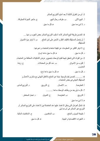 %u062c%u0645%u064a%u0639 %u0627%u0644%u062d%u0642%u0648%u0642 %u0645%u062d%u0641%u0648%u0638%u0629 %u0640 %u0627%u0625%u0644%u0639%u062a%u062f%u0627%u0621 %u0639%u0649%u0644 %u062d%u0642 %u0627%u0645%u0644%u0624%u0644%u0641 %u0628%u0627%u0644%u0646%u0633%u062e %u0623%u0648 %u0627%u0644%u0637%u0628%u0627%u0639%u0629 %u064a%u0639%u0631%u0636 %u0641%u0627%u0639%u0644%u0647 %u0644%u0644%u0645%u0633%u0627%u0626%u0644%u0629 %u0627%u0644%u0642%u0627%u0646%u0648%u0646%u064a%u06297876%u064b %u0644%u0644%u062a%u0648%u0632%u064a%u0639 %u0627%u0644%u0645%u0628%u0627%u0634%u06313 -%u0623%u0649 %u0645%u0646 %u0627%u0644%u0637%u0631%u0642 %u0627%u0644%u062a%u0627%u0644%u064a%u0629 %u0627%u0644 %u064a%u0639%u062f %u0623%u0633%u0644%u0648%u0628%u0627%u0623. %u0627%u0644%u0628%u064a%u0639 %u0627%u0622%u0644%u0644%u0649. %u0628. %u0637%u0648%u0627%u0641 %u0631%u062c%u0627%u0644 %u0627%u0644%u0628%u064a%u0639. %u062c. %u0645%u062a%u0627%u062c%u0631 %u0627%u0644%u062a%u062c%u0632%u0626%u0629 %u0627%u0644%u0645%u0645%u0644%u0648%u0643%u0629. %u062f. %u0627%u0644 %u0634%u0626 %u0645%u0645%u0627 %u0633%u0628%u0642. %u0647. %u0643%u0644 %u0645%u0627 %u0633%u0628%u0642.4 -%u062a%u062a%u0636%u0645%u0646 %u0637%u0631%u064a%u0642%u0629 %u0627%u0644%u0628%u064a%u0639 %u0627%u0644%u0645%u0628%u0627%u0634%u0631 %u0643%u0623%u062d%u062f %u0623%u0633%u0627%u0644%u064a%u0628 %u0627%u0644%u062a%u0648%u0632%u064a%u0639 %u0627%u0644%u0645%u0628%u0627%u0634%u0631 %u0628%u0639%u0636 %u0627%u0644%u0639%u064a%u0648%u0628 %u0648 %u0645%u0646%u0647%u0627 .... %u0623. %u0623%u0646 %u064a%u062a%u062d%u0645%u0644 %u0627%u0644%u0645%u0633%u062a%u0647%u0644%u0643 %u062a%u0643%u0627%u0644%u064a%u0641 %u0627%u0644%u0646%u0642%u0644 %u0648 %u0627%u0644%u0634%u062d%u0646 %u0639%u0644%u0649 %u062b%u0645%u0646 %u0627%u0644%u0645%u0646%u062a%u062c. %u0628. %u0627%u0644 %u062a%u0648%u0641%u0631 %u0645%u064a%u0632%u0629 %u0627%u0644%u062a%u0633%u0648%u0642 %u0644%u0644%u0645%u0633%u062a%u0647%u0644%u0643.%u062c. %u0627%u0644 %u062a%u0648%u0641%u0631 %u0627%u0644%u0643%u062b%u064a%u0631 %u0645%u0646 %u0627%u0644%u0645%u0639%u0644%u0648%u0645%u0627%u062a %u0639%u0646 %u0643%u064a%u0641%u064a%u0629 %u0627%u0633%u062a%u062e%u062f%u0627%u0645 %u0627%u0644%u0645%u0646%u062a%u062c%u0627%u062a %u0648 %u062a%u062c%u0631%u0628%u062a%u0647%u0627. %u062f. %u0643%u0644 %u0645%u0627 %u0633%u0628%u0642. %u0647. %u0643%u0644 %u0645%u0627 %u0633%u0628%u0642 %u0645%u0627%u0639%u062f%u0627 )%u0628(.5 -%u0645%u0646 %u0627%u0644%u0641%u0648%u0627%u0626%u062f %u0627%u0644%u062a%u0649 %u062a%u062a%u062d%u0642%u0642 %u0646%u062a%u064a%u062c%u0629 %u0644%u0642%u064a%u0627%u0645 %u0627%u0644%u0648%u0633%u0637%u0627%u0621 %u0628%u062a%u062c%u0645%u064a%u0639 %u0648 %u0639%u0631%u0636 %u0627%u0644%u062a%u0634%u0643%u064a%u0627%u0644%u062a %u0627%u0644%u0645%u062e%u062a%u0644%u0641%u0629 %u0645%u0646 %u0627%u0644%u0645%u0646%u062a%u062c%u0627%u062a.%u0623. %u0627%u0644%u0642%u0631%u0628 %u0645%u0646 %u0627%u0623%u0644%u0633%u0648%u0627%u0642. %u0628. %u0639%u062f%u062f %u0623%u0642%u0644 %u0645%u0646 %u0627%u0644%u0645%u0639%u0627%u0645%u0627%u0644%u062a. %u062c. %u0632%u064a%u0627%u062f%u0629 %u0627%u0644%u0645%u062e%u0632%u0648%u0646. %u062f. %u0643%u0644 %u0645%u0627 %u0633%u0628%u0642. %u0647. %u0643%u0644 %u0645%u0627 %u0633%u0628%u0642 %u0645%u0627%u0639%u062f%u0627 )%u062c(6 ............ -%u062a%u062a%u0636%u0645%u0646 %u0642%u064a%u0627%u0645 %u0627%u0644%u0648%u0633%u064a%u0637 %u0646%u064a%u0627%u0628%u0629 %u0639%u0646 %u0627%u0644%u0645%u0646%u062a%u062c %u0628%u0627%u0627%u0644%u062a%u0641%u0627%u0642 %u0627%u0644%u0646%u0647%u0627%u0626%u0649 %u0645%u0639 %u0645%u0634%u062a%u0631%u0649 %u0627%u0623%u0644%u0639%u0645%u0627%u0644 %u0648 %u0627%u0644%u0645%u0633%u062a%u0647%u0644%u0643 %u0627%u0644%u0646%u0647%u0627%u0626%u0649 %u0641%u0649 %u0628%u0639%u0636 %u0627%u0644%u0645%u0646%u062a%u062c%u0627%u062a. %u0623. %u0627%u0644%u0645%u0641%u0627%u0648%u0636%u0629. %u0628. %u0627%u0627%u0644%u062a%u0635%u0627%u0644. %u062c. %u0627%u0644%u062a%u0631%u0648%u064a%u062c. %u062f. %u0627%u0644%u062a%u0648%u0632%u064a%u0639 %u0627%u0644%u0645%u0627%u062f%u0649.7 -%u0643%u0644 %u0645%u0627 %u064a%u0644%u0649 %u064a%u0639%u062f %u0645%u0646 %u0648%u0638%u0627%u0626%u0641 %u0627%u0644%u0648%u0633%u0637%u0627%u0621 %u0645%u0627%u0639%u062f %u0627 ........... %u0623. %u0627%u0644%u062a%u0631%u0648%u064a%u062c. %u0628. %u0627%u0644%u0645%u0641%u0627%u0648%u0636%u0629. %u062c. %u0627%u0644%u062a%u0645%u0648%u064a%u0644. %u062f. %u062a%u062d%u0645%u0644 %u0627%u0644%u0645%u062e%u0627%u0637%u0631. %u0647. %u0627%u0644 %u0634%u0626 %u0645%u0645%u0627 %u0633%u0628%u0642.8 -%u062a%u062a%u0645%u062b%u0644 %u0627%u0644%u0639%u0648%u0627%u0645%u0644 %u0627%u0644%u062a%u0649 %u064a%u0645%u0643%u0646 %u0627%u0627%u0644%u0639%u062a%u0645%u0627%u062f %u0639%u0644%u064a%u0647%u0627 %u0639%u0646%u062f %u0627%u0644%u0645%u0641%u0627%u0636%u0644%u0629 %u0628%u064a%u0646 %u0627%u0627%u0644%u0639%u062a%u0645%u0627%u062f %u0639%u0644%u0649 %u0627%u0644%u062a%u0648%u0632%u064a%u0639 %u0627%u0644%u0645%u0628%u0627%u0634%u0631 %u0623%u0648 %u0627%u0644%u062a%u0648%u0632%u064a%u0639 %u063a%u064a%u0631 %u0627%u0644%u0645%u0628%u0627%u0634%u0631 %u0641%u0649 %u0623%u0649 %u0645%u0645%u0627 %u064a%u0644%u0649 %u0623. %u0637%u0628%u064a%u0639%u0629 %u0627%u0644%u0633%u0648%u0642 %u0648 %u0627%u0644%u0645%u0646%u062a%u062c. %u0628. %u0627%u0644%u0645%u0646%u0627%u0641%u0633%u0648%u0646. %u062c. %u0627%u0627%u0644%u0645%u0643%u0627%u0646%u064a%u0627%u062a %u0627%u0644%u0645%u0627%u0644%u064a%u0629. %u062f. %u0627%u0644%u062a%u063a%u064a%u0631%u0627%u062a %u0627%u0627%u0644%u0642%u062a%u0635%u0627%u062f%u064a%u0629 %u0648 %u0627%u0644%u0628%u064a%u0626%u064a%u0629. %u0647. %u0643%u0644 %u0645%u0627 %u0633%u0628%u0642.