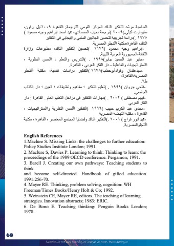 %u062c%u0645%u064a%u0639 %u0627%u0644%u062d%u0642%u0648%u0642 %u0645%u062d%u0641%u0648%u0638%u0629 %u0640 %u0627%u0625%u0644%u0639%u062a%u062f%u0627%u0621 %u0639%u0649%u0644 %u062d%u0642 %u0627%u0645%u0644%u0624%u0644%u0641 %u0628%u0627%u0644%u0646%u0633%u062e %u0623%u0648 %u0627%u0644%u0637%u0628%u0627%u0639%u0629 %u064a%u0639%u0631%u0636 %u0641%u0627%u0639%u0644%u0647 %u0644%u0644%u0645%u0633%u0627%u0626%u0644%u0629 %u0627%u0644%u0642%u0627%u0646%u0648%u0646%u064a%u062968%u0627%u0646%u064b%u064f%u0628%u064d%u062c%u062e %u064a%u0648%u0634%u0644 %u0646%u0647%u0632%u0641%u0643%u065b%u0648 %u0627%u0646%u064f%u0628%u0644%u0644 %u0627%u0646%u064b%u0648%u0643%u064a %u0627%u0646%u0645%u0655%u064a%u0659 %u0646%u0647%u0632%u0648%u0639%u064b%u062e: %u0627%u0646%u0645%u0628%u0652%u0648%u062d 4229%u065b%u064e%u0645 %u062b%u0648%u0627%u0654%u064c%u060c %u064d%u0632%u065b%u0655%u0627%u0647%u062f %u0643%u065b%u0647%u0659.(4229) %u0631%u0648%u0639%u064b%u062e %u064e%u063a%u065b%u062a %u0627%u0646%u063e%u0635%u0628%u0643%u0658%u060c %u062f%u0645%u062d%u0645 %u0623%u063d%u064b%u0644 %u0625%u062b%u0648%u0627%u0652%u065b%u0649 %u0654%u0639%u065b%u0651 %u064a%u063e%u064b%u0655%u0643 ( 3997). %u0643%u0647%u0627%u064d%u062e %u0631%u063a%u0648%u065a%u062c%u065b%u062e %u0646%u0632%u063e%u064e%u065b%u064d %u0627%u0646%u063a%u0628%u064e%u062c%u065b%u064d %u0627%u0646%u064e%u0647%u062c%u0659 %u0654%u0627%u0625%u0646%u065b%u063a%u0628%u062b%u0659 %u0641%u0659 %u0627%u0646%u0632%u0641%u0643%u065b%u0648%u0627%u0646%u064f%u0628%u0644%u0644%u060c %u0627%u0646%u0645%u0628%u0652%u0648%u062d%u060c%u064a%u0643%u0632%u062c%u062e %u0627%u0623%u0646%u064f%u063a%u0647%u0655 %u0627%u0646%u064b%u0635%u0648%u065a%u062e.-%u0625%u062b%u0648%u0627%u0652%u065b%u0649 %u0654%u0639%u065b%u0651 %u064a%u063e%u064b%u0655%u0643 (3998). %u0631%u063e%u064e%u065b%u064d %u0627%u0646%u0632%u0641%u0643%u065b%u0648 %u0627%u0646%u064f%u0628%u0644%u0644%u060c %u064a%u0637%u062c%u0655%u063b%u0628%u062f %u0654%u0649%u0627%u0647%u062d %u0627%u0646%u0636%u0645%u0628%u0641%u062e%u060c%u0627%u0646%u063a%u064b%u0653%u0655%u0647%u065a%u062e %u0627%u0646%u063c%u0648%u062b%u065b%u062e %u0627%u0646%u0647%u065b%u062c%u065b%u062e.-%u0639%u0628%u062b%u0648 %u063b%u062c%u0644 %u0627%u0646%u063e%u064b%u065b%u0644 %u0639%u0628%u062b%u0648(3999) . %u0627%u0646%u0632%u0644%u0647%u065a%u064c %u0654%u0627%u0646%u0632%u063c%u0647%u0649 : %u0627%u0623%u0646%u064e%u064c %u0627%u0646%u064f%u0638%u0648%u065a%u062e %u060c %u0627%u0627%u0646%u064e%u0632%u0648%u0627%u0631%u065b%u063a%u065b%u0628%u062f %u0654%u0627%u0646%u0641%u0628%u063b%u0647%u065b%u062e - %u0643%u0627%u0647 %u0627%u0646%u0641%u0643%u0648 %u0627%u0646%u063c%u0648%u062b%u0659 %u060c %u0627%u0646%u0645%u0628%u0652%u0648%u062d.-%u064d%u065b%u0644%u063b%u0636%u064b%u0628%u064c %u0654%u0641%u0624%u0627%u0643%u0623%u062b%u0655%u063d%u0637%u062a(3999).%u0627%u0646%u0632%u0641%u0643%u065b%u0648 %u0643%u0647%u0627%u064d%u0628%u062f %u064e%u0641%u064e%u065b%u062e%u060c %u064a%u0643%u0632%u062c%u062e %u0627%u0623%u0646%u064f%u063a%u0647%u0655 %u0627%u0646%u064b%u0635%u0648%u065a%u062e%u060c%u0627%u0646%u0645%u0628%u0652%u0648%u062d%u060c%u063a4.-%u0641%u0632%u063e%u0659 %u0639%u0648%u0654%u0627%u064c (3999) . %u0631%u063c%u0647%u065b%u0649 %u0627%u0646%u0632%u0641%u0643%u065b%u0648 %u061b %u064a%u0641%u0628%u0652%u065b%u0649 %u0654%u0631%u0637%u062c%u065b%u0645%u0628%u062f %u061b %u0627%u0646%u063c%u065b%u064d %u061b %u0643%u0627%u0647 %u0627%u0646%u0643%u0632%u0628%u0629 %u0627%u0646%u063a%u0628%u064a%u063c%u0659.-%u0641%u0653%u065b%u0649 %u064a%u0635%u0637%u0641%u0657 ( 4224) . %u064a%u0653%u0628%u0647%u0627%u062f %u0627%u0646%u0632%u0641%u0643%u065b%u0648 %u0641%u0659 %u064a%u0648%u0627%u063d%u0645 %u0627%u0646%u0632%u063c%u0647%u065b%u0649 %u0627%u0646%u063c%u0628%u0648 . %u0627%u0646%u0645%u0628%u0652%u0648%u062d : %u0643%u0627%u0647 %u0627%u0646%u0641%u0643%u0648 %u0627%u0646%u063c%u0648%u062b%u0659-%u064a%u063a%u0644%u0658 %u063b%u062c%u0644 %u0627%u0646%u0643%u0648%u065a%u0649 %u063d%u062c%u065b%u062a (3998). %u0627%u0646%u0632%u0641%u0643%u065b%u0648 %u0627%u0623%u0646%u064e%u064c %u0627%u0646%u064f%u0638%u0648%u065a%u062e %u0654%u0627%u0627%u0646%u064e%u0632%u0648%u0627%u0631%u065b%u063a%u065b%u0628%u062f %u060c %u0627%u0646%u0645%u0628%u0652%u0648%u062d %u060c %u064a%u0643%u0632%u062c%u062e %u0627%u0646%u064f%u0653%u0639%u062e %u0627%u0646%u064b%u0635%u0648%u065a%u062e.-%u062f%u0645%u062d%u0645 %u0623%u064e%u0655%u0647 %u0641%u0648%u0627%u0637 ( 4228). %u0627%u0646%u0632%u0641%u0643%u065b%u0648 %u0627%u0646%u064f%u0628%u0644%u0644 %u0654%u0644%u0639%u0628%u065a%u0628 %u0627%u0646%u064b%u063a%u0632%u064b%u063a %u0627%u0646%u064b%u063c%u0628%u0635%u0648 %u060c %u0627%u0646%u0645%u0628%u0652%u0648%u062d %u060c %u064a%u0643%u0632%u062c%u062e %u0627%u0623%u0646%u064f%u063a%u0647%u0655%u0627%u0646%u064b%u0635%u0648%u065a%u062e.English References1.Maclure S. Missing Links: the challenges to further education:Policy Studies Institute London; 1991.2. Maclure S, Davies P. Learning to think: Thinking to learn: theproceedings of the 1989 OECD conference: Pergamon; 1991.3. Barell J. Creating our own pathways: Teaching students to thinkand become self-directed. Handbook of gifted education. 1991:256-70.4. Mayer RE. Thinking, problem solving, cognition: WHFreeman/Times Books/Henry Holt & Co; 1992.5. Weinstein CE, Mayer RE, editors. The teaching of learningstrategies. Innovation abstracts; 1983: ERIC.6. De Bono E. Teaching thinking: Penguin Books London; 1978..