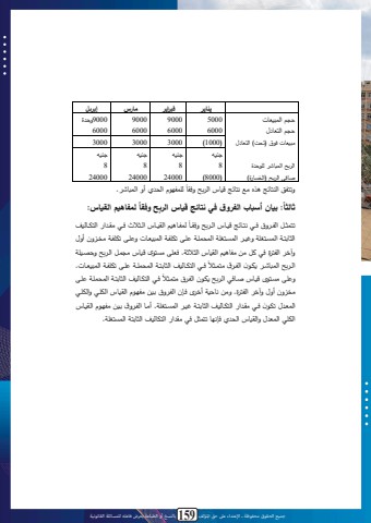 جميع الحقوق محفوظة ـ اإلعتداء عىل حق املؤلف 159 بالنسخ أو الطباعة يعرض فاعله للمسائلة القانونية997 * الباب الثاني: أنعسة محاسبة التكاليف.يشاير فبراير مارس إبريل مؼ الط م ات مؼ الك ادؿ5000600090006000900060009000ك لة6000م م ات فؾؽ اتت( الك ادؿ 1000 )3000 3000 3000ال ا الطباش لرؾ لةصافي ال ا ال سارة(جظم 8 8000)جظم 824000جظم 824000جظم 824000ل لرطف ؾـ التل ك الطباش .كاكفق الظكاه يف ما كاه ؽماس ال ا كفةاً لسفاهيػ القياس:ً: بيان أسباب الفروق في نتائج قياس الربح وفقاثالثال لطفػػاؿمؼ الؾمػػاس الػػثمث فػػي مةػػلار الكاػػالمواكطثػػا الفػػ كؽ فػػي كػػاه ؽمػػاس الػػ ا كفةػػاالثابكػ الطسػكغر كءتػ الطسػكغر الطتطرػ قرػأل اارفػ الط م ػات كقرػأل اارفػ م ػ كف كؿكآخ الفك ة في ما مؽ مفاؿمؼ الؾماس الثمب . ف رأل مسكؾى ؽماس ممطػا الػ ا ك صػتر ل فػي الكاػالمو الثابكػػ الطتطرػ قرػأل اارفػ الط م ػػات.الػ ا الطباشػ سوػؾف الفػػ ؽ مكطػثمل فػي الكاػالمو الثابكػ الطتطرػ قرػألكقرأل مسػكؾى ؽمػاس صػافي الػ ا سوػؾف الفػ ؽ مكطػثمم كف كؿ كآخ الفك ة. كمؽ ا م خ ى فػمف الفػ كؽ بػتؽ مف ػؾـ الؾمػاس الارػي كالارػيالط ػلؿ ااػؾف فػي مةػلار الكاػالمو الثابكػ ءتػ الطسػكغر . مػا الفػ كؽ بػتؽ مف ػؾـ الؾمػاسالاري الط لؿ كالؾماس التل فم ا اكطثا في مةلار الكاالمو الثابك الطسكغر .