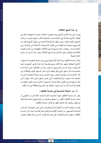 جميع الحقوق محفوظة ـ اإلعتداء عىل حق املؤلف 23 بالنسخ أو الطباعة يعرض فاعله للمسائلة القانونية22 * الباب األول: المفاهيم األساسية لمحاسبة التكاليفج. مبجأ تنديق العالقات: ه حة لمة ميةدل اله .ة اد اري ميةدل ح ةلل ال.ةم ي حند ةد الا.ة ل ي حا ةد ةااله لةةةو اد اري ح ةةة تف ةةةا ا خها اةةة ي الاصللةةةف ل ةةةو م.ةةةهلى ا اري بةةةو اخةةةوالا.هلى اد اري اللاحد حهة حن ةق ا ارف الاج ة ف الجحة ةا مه مهة ال .ة ف انةل مة الضةةةة ري ح .ةةةة اةةةةصا الها يةةةةد ةةةةا لةةةةو اد ارف ةةةةف ا شةةةةه ةةةةا الهةةةةداخو بةةةةي ا خها اةةة ي له مةةة للةةةف اةةة رف حج.ةةةيق الار ةةة ي اللب أ ةةةف بةةةي ل .ةةة اللحةةةدف ي مة م ة اا ها تف إ ا ارحه لم للف ا ميدل حج.يق الار ة ي تاهية ميةدل لس سة اد ارف الند ثف ي اا تاد انهة م الااملمة ي لما.ةهلل ي ي خ حه ح من س ف اله ل بهصا الايدل ح ح ا لا ل اد ارلةف الاصهم ةف تظهة اةصا الهة ح تاةلرف ااةنف لجةد الةدا ح ة رل الااملمة ي لهةص الا.ةةةهلل ين حيةةةث انةةةل مةةة الضةةة ري ل تلةةةل من سةةة اله ةةة ل لمةةة ارتةةةف ح مةةةفت خها ا ي كو م.هلى ا اري كو ب ف ا ارلةف اخةو الا.ةهلى اللاحةد الار ة ي بةي اةص ا خها اة ي اضةه الة ا ل يةد للةف ةا حند ةد نلع ةف الااملمة ي الهةا ةد حنه خه لدف م.هلل ي ا ارلف الااملم ي الها حصإ م.ةهلى ا اري بصاحةل له حة لمة ي لن خة ي الا.ةهلل ي اد ارلةف تنيةث ح ةل الااملمة يللةف اة رف حاةا اله ة رل ة اللار ف به ل . ل و ما تح ل . ت لل ف لي الض رلف الالم ف ا لاي الل 3 .دور المعخفة المحاسبية في محاسبة التكاليف:تاهي لم من س ف اله ل ح لا مهصاا لام الان س ف لصلف كة مة ال ي اةا ل يح.هاد من س ف اله ل ال ثي م لالله م ه م م ا لالي الان سة ف الا ل ةف م ح لل حاد و اص الا ا لهه ق م لاداف من س ف اله ل ييجاةةةة ح.ةةةةههدف الان سةةةة ف الا ل ةةةةف انهةةةة م الااملمةةةة ي الهةةةةا ح ةةةةا ت حه خةةةة ي لاةةةةن الااةةمنف الصةة رخيي لةة اللحةةدف ا هاةة تف الةةص لهةة ااها مةة ي بهةة ن ةةا من سةة ف اله ل ح.ههدف انه م الااملم ي الها حه ا ارف اللحةدف لمة ةا محة ي ال لالةد النةد