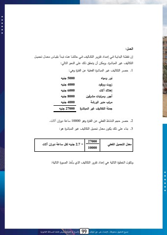 جميع الحقوق محفوظة ـ اإلعتداء عىل حق املؤلف 99 بالنسخ أو الطباعة يعرض فاعله للمسائلة القانونية87 * الباب الثاني: أنعسة محاسبة التكاليف.الحتتل:إف ةظػػ ال لاسػػ فػػي إقػػلاد اة ػػ الكاػػالمو فػػي الكظػػا ػػيف ا ػػل دؾمػػاس م ػػلؿ اتطتػػا الكاالمو ءت الطباش ة. ك طوؽ ف يكتةق ذلػ قرأل الظتؾ الكالي:1 .ص الكاالمو ءت الطباش ة الف رم قؽ الفك ة ك ي:نؽر ومياهزيؽت ووقؽدإىالك آالتأجؽر ومرتبات مذرفيؼمرتب مدير الؽرشة9999 جشيو9999 جشيو9999 جشيو7999 جشيو9999 جشيوجسمة التكاليف غير السباشرة 98999 جشيو2 .ص مؼ الظشاو الف ري قؽ الفك ة ك ؾ 10000 ساق دكراف آلت.3 .بظاو قرأل ذلػ سوؾف م لؿ اتطتا الكاالمو ءت الطباش ة ؾ:معدل التحسيل الفعمي9899999999= 8.9 جشيو لكل ساعة دوران آالتكااؾف ال ظؾة الكالم ي إقلاد اة الكاالمو الي ساخي الصؾرة الكالم :