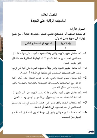 %u062c%u0645%u064a%u0639 %u0627%u0644%u062d%u0642%u0648%u0642 %u0645%u062d%u0641%u0648%u0638%u0629 %u0640 %u0627%u0625%u0644%u0639%u062a%u062f%u0627%u0621 %u0639%u0649%u0644 %u062d%u0642 %u0627%u0645%u0644%u0624%u0644%u0641 %u0628%u0627%u0644%u0646%u0633%u062e %u0623%u0648 %u0627%u0644%u0637%u0628%u0627%u0639%u0629 %u064a%u0639%u0631%u0636 %u0641%u0627%u0639%u0644%u0647 %u0644%u0644%u0645%u0633%u0627%u0626%u0644%u0629 %u0627%u0644%u0642%u0627%u0646%u0648%u0646%u064a%u0629196%u0627%u0644%u0641%u0635%u0644 %u0627%u0644%u0639%u0627%u0634%u0631%u0623%u0633%u0627%u0633%u064a%u0627%u062a %u0627%u0644%u0631%u0642%u0627%u0628%u0629 %u0639%u0645%u0649 %u0627%u0644%u062c%u0648%u062f%u0629%u0627%u0644%u0633%u0624%u0627%u0644 %u0627%u0623%u0644%u0648%u0644:%u0642%u0645 %u0628%u062a%u062d%u062f%u064a%u062f %u0627%u0644%u0645%u0641%u0647%u0648%u0645 %u0623%u0648 %u0627%u0644%u0645%u0635%u0637%u0645%u062d %u0627%u0644%u0639%u0645%u0645%u064a %u0627%u0644%u062e%u0627%u0635 %u0628%u0627%u0644%u0639%u0628%u0627%u0631%u0627%u062a %u0627%u0644%u062a%u0627%u0644%u064a%u0629 %u060c %u0645%u0639 %u0648%u0636%u0639 %u0625%u062c%u0627%u0628%u062a%u0643 %u0641%u064a %u0635%u0648%u0631%u0629 %u062c%u062f%u0648%u0644 %u0643%u0645%u0627%u064a%u0645%u064a : %u0631%u0642%u0645 %u0627%u0644%u0639%u0628%u0627%u0631%u0629 %u0627%u0644%u0645%u0641%u0647%u0648%u0645 %u0623%u0648 %u0627%u0644%u0645%u0635%u0637%u0645%u062d %u0627%u0644%u0639%u0645%u0645%u064a1------------------ %u064b %u0644%u0648 %u062a%u0639%u0631%u0641 %u0627%u0644%u062c%u0648%u062f%u0629 %u0639%u0645%u0649 %u0623%u0646%u064a%u0627 %u0635%u0641%u0627%u062a %u0623%u06481 -%u0623%u062d%u062f %u0645%u062f%u0627%u062e%u0644 %u0645%u0641%u064a%u0648%u0645 %u0627%u0644%u062c%u0648%u062f%u0629 %u0648%u0627%u0644%u0630%u064a %u0648%u0641%u0642%u0627%u062e%u0635%u0627%u0626%u0635 %u062a%u062d%u062f%u062f %u0645%u062f%u0649 %u0645%u0627%u0644%u0626%u0645%u0629 %u0627%u0644%u0645%u0646%u062a%u062c %u0623%u0644%u062f%u0627%u0621 %u0627%u0644%u0648%u0638%u064a%u0641%u0629 %u0627%u0644%u0645%u0637%u0645%u0648%u0628%u0629 %u0645%u0646%u0648 %u0628%u0627%u0644%u0634%u0643%u0644 %u0627%u0644%u0630%u064a %u064a%u062a%u0648%u0642%u0639%u0648 %u0627%u0644%u0639%u0645%u064a%u0644. %u064b %u0644%u0648 %u062a%u0639%u0631%u0641 %u0627%u0644%u062c%u0648%u062f%u0629 %u0639%u0645%u0649 %u0623%u0646%u064a%u0627 %u0623%u0645%u0631 %u0641%u0631%u062f%u064a2 -%u0623%u062d%u062f %u0645%u062f%u0627%u062e%u0644 %u0645%u0641%u064a%u0648%u0645 %u0627%u0644%u062c%u0648%u062f%u0629 %u0648%u0627%u0644%u0630%u064a %u0648%u0641%u0642%u0627%u064a%u0639%u062a%u0645%u062f %u0639%u0645%u0649 %u062a%u0641%u0636%u064a%u0627%u0644%u062a %u0627%u0644%u0645%u0633%u062a%u062e%u062f%u0645 %u0627%u0644%u062a%u064a %u064a%u0637%u0645%u0628%u064a%u0627 %u0641%u064a %u0627%u0644%u0633%u0645%u0639%u0629 %u0623%u0648 %u0627%u0644%u062e%u062f%u0645%u0629.%u064b %u0644%u0648 %u062a%u0639%u0631%u0641 %u0627%u0644%u062c%u0648%u062f%u0629 %u0639%u0645%u0649 %u0623%u0633%u0627%u0633 %u0623%u0646%u064a%u06273 -%u0623%u062d%u062f %u0645%u062f%u0627%u062e%u0644 %u0645%u0641%u064a%u0648%u0645 %u0627%u0644%u062c%u0648%u062f%u0629 %u0648%u0627%u0644%u0630%u064a %u0648%u0641%u0642%u0627%u0627%u0644%u062a%u0648%u0627%u0641%u0642 %u0645%u0639 %u0627%u0644%u0645%u0648%u0627%u0635%u0641%u0627%u062a %u0648%u0627%u0644%u0645%u0645%u0627%u0631%u0633%u0627%u062a %u0627%u0644%u062a%u0635%u0646%u064a%u0639%u064a%u0629 %u0648%u0627%u0644%u062a%u0634%u063a%u064a%u0645%u064a%u0629 %u0648%u0627%u0644%u064a%u0646%u062f%u0633%u064a%u0629 %u0648%u0627%u0644%u062a%u064a %u064a%u062a%u0645 %u062a%u062d%u062f%u064a%u062f%u0649%u0627 %u0645%u0646 %u062e%u0627%u0644%u0644 %u0627%u0644%u062a%u0635%u0645%u064a%u0645.%u064b %u0644%u0648 %u062a%u0639%u0631%u0641 %u0627%u0644%u062c%u0648%u062f%u0629 %u0639%u0645%u0649 %u0623%u0646%u064a%u0627 %u0627%u0644%u062a%u0645%u064a%u0632 %u0623%u0648 4 -%u0623%u062d%u062f %u0645%u062f%u0627%u062e%u0644 %u0645%u0641%u064a%u0648%u0645 %u0627%u0644%u062c%u0648%u062f%u0629 %u0648%u0627%u0644%u0630%u064a %u0648%u0641%u0642%u0627%u0627%u0644%u0645%u0627%u0644%u0626%u0645%u0629 %u0644%u0627%u0644%u0633%u062a%u062e%u062f%u0627%u0645 %u0639%u0646%u062f %u0645%u0633%u062a%u0648%u0649 %u0645%u0642%u0628%u0648%u0644 %u0645%u0646 %u0627%u0644%u0633%u0639%u0631 %u0628%u0645%u0627 %u064a%u062d%u0642%u0642 %u0631%u0636%u0627%u0621 %u0627%u0644%u0639%u0645%u064a%u0644.5 -%u0623%u062d%u062f %u0645%u062d%u062f%u062f%u0627%u062a %u0627%u0644%u062c%u0648%u062f%u0629 %u0648%u0627%u0644%u0630%u064a %u064a%u0634%u064a%u0631 %u0625%u0644%u064a %u063a%u0631%u0636 %u0627%u0644%u0645%u0635%u0645%u0645 %u0641%u064a %u062a%u0636%u0645%u064a%u0646 %u0628%u0639%u0636 %u0627%u0644%u062e%u0635%u0627%u0626%u0635 %u0623%u0648 %u0639%u062f%u0645 %u062a%u0636%u0645%u064a%u0646%u064a%u0627 %u0641%u064a %u0627%u0644%u0633%u0645%u0639%u0629 %u0623%u0648 %u0627%u0644%u062e%u062f%u0645%u0629.6 -%u0623%u062d%u062f %u0645%u062d%u062f%u062f%u0627%u062a %u0627%u0644%u062c%u0648%u062f%u0629 %u0648%u0627%u0644%u0630%u064a %u064a%u0634%u064a%u0631 %u0625%u0644%u0649 %u062f%u0631%u062c%u0629 %u062a%u0637%u0627%u0628%u0642 %u0627%u0644%u0633%u0645%u0639%u0629 %u0623%u0648 %u0627%u0644%u062e%u062f%u0645%u0629 %u0645%u0639 %u0627%u0644%u063a%u0631%u0636 %u0645%u0646 %u062a%u0635%u0645%u064a%u0645%u064a%u0627.