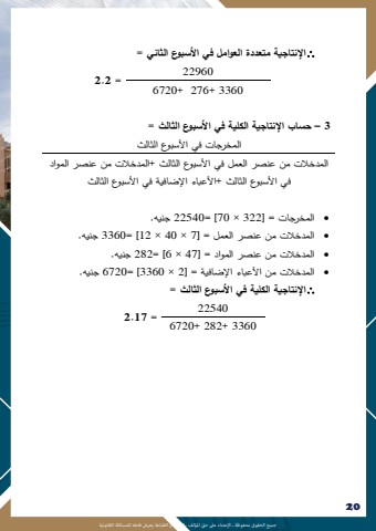 %u062c%u0645%u064a%u0639 %u0627%u0644%u062d%u0642%u0648%u0642 %u0645%u062d%u0641%u0648%u0638%u0629 %u0640 %u0627%u0625%u0644%u0639%u062a%u062f%u0627%u0621 %u0639%u0649%u0644 %u062d%u0642 %u0627%u0645%u0644%u0624%u0644%u0641 %u0628%u0627%u0644%u0646%u0633%u062e %u0623%u0648 %u0627%u0644%u0637%u0628%u0627%u0639%u0629 %u064a%u0639%u0631%u0636 %u0641%u0627%u0639%u0644%u0647 %u0644%u0644%u0645%u0633%u0627%u0626%u0644%u0629 %u0627%u0644%u0642%u0627%u0646%u0648%u0646%u064a%u062920%uf05c%u0627%u0625%u0644%u0646%u062a%u0627%u062c%u064a%u0629 %u0645%u062a%u0639%u062f%u062f%u0629 %u0627%u0644%u0639%u0648%u0627%u0645%u0644 %u0641%u064a %u0627%u0623%u0644%u0633%u062d%u0648%u0639 %u0627%u0644%u062b%u0627%u0646%u064a =22960= 2.23360+ 276+ 67203 %u2013 %u064a%u0633%u0627%u0628 %u0627%u0625%u0644%u0646%u062a%u0627%u062c%u064a%u0629 %u0627%u0644%u0643%u0645%u064a%u0629 %u0641%u064a %u0627%u0623%u0644%u0633%u062d%u0648%u0639 %u0627%u0644%u062b%u0627%u0644%u062b =%u0627%u0644%u0645%u062e%u0631%u062c%u0627%u062a %u0641%u064a %u0627%u0623%u0644%u0633%u0628%u0648%u0639 %u0627%u0644%u062b%u0627%u0644%u062b%u0627%u0644%u0645%u062f%u062e%u0627%u0644%u062a %u0645%u0646 %u0639%u0646%u0635%u0631 %u0627%u0644%u0639%u0645%u0644 %u0641%u064a %u0627%u0623%u0644%u0633%u0628%u0648%u0639 %u0627%u0644%u062b%u0627%u0644%u062b +%u0627%u0644%u0645%u062f%u062e%u0627%u0644%u062a %u0645%u0646 %u0639%u0646%u0635%u0631 %u0627%u0644%u0645%u0648%u0627%u062f %u0641%u064a %u0627%u0623%u0644%u0633%u0628%u0648%u0639 %u0627%u0644%u062b%u0627%u0644%u062b +%u0627%u0623%u0644%u0639%u0628%u0627%u0621 %u0627%u0625%u0644%u0636%u0627%u0641%u064a%u0629 %u0641%u064a %u0627%u0623%u0644%u0633%u0628%u0648%u0639 %u0627%u0644%u062b%u0627%u0644%u062b%uf0b7 %u0627%u0644%u0645%u062e%u0631%u062c%u0627%u062a = [322 %u00d7 70= [22540 %u062c%u0646%u064a%u0648.%uf0b7 %u0627%u0644%u0645%u062f%u062e%u0627%u0644%u062a %u0645%u0646 %u0639%u0646%u0635%u0631 %u0627%u0644%u0639%u0645%u0644 = [7 %u00d7 40 %u00d7 12= [3360 %u062c%u0646%u064a%u0648.%uf0b7 %u0627%u0644%u0645%u062f%u062e%u0627%u0644%u062a %u0645%u0646 %u0639%u0646%u0635%u0631 %u0627%u0644%u0645%u0648%u0627%u062f = [47 %u00d7 6= [282 %u062c%u0646%u064a%u0648.%uf0b7 %u0627%u0644%u0645%u062f%u062e%u0627%u0644%u062a %u0645%u0646 %u0627%u0623%u0644%u0639%u0628%u0627%u0621 %u0627%u0625%u0644%u0636%u0627%u0641%u064a%u0629 = [2 %u00d7 3360= [6720 %u062c%u0646%u064a%u0648.%uf05c%u0627%u0625%u0644%u0646%u062a%u0627%u062c%u064a%u0629 %u0627%u0644%u0643%u0645%u064a%u0629 %u0641%u064a %u0627%u0623%u0644%u0633%u062d%u0648%u0639 %u0627%u0644%u062b%u0627%u0644%u062b =22540= 17.23360+ 282+ 6720