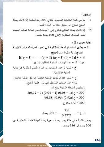 %u062c%u0645%u064a%u0639 %u0627%u0644%u062d%u0642%u0648%u0642 %u0645%u062d%u0641%u0648%u0638%u0629 %u0640 %u0627%u0625%u0644%u0639%u062a%u062f%u0627%u0621 %u0639%u0649%u0644 %u062d%u0642 %u0627%u0645%u0644%u0624%u0644%u0641 %u0628%u0627%u0644%u0646%u0633%u062e %u0623%u0648 %u0627%u0644%u0637%u0628%u0627%u0639%u0629 %u064a%u0639%u0631%u0636 %u0641%u0627%u0639%u0644%u0647 %u0644%u0644%u0645%u0633%u0627%u0626%u0644%u0629 %u0627%u0644%u0642%u0627%u0646%u0648%u0646%u064a%u0629204%u0627%u0644%u0645%u0637%u0645%u0648%u0628:1 %u2013 %u0645%u0627 %u0649%u064a %u0643%u0645%u064a%u0629 %u0627%u0644%u062e%u0627%u0645%u0627%u062a %u0627%u0644%u0645%u0637%u0645%u0648%u0628%u0629 %u0625%u0644%u0646%u062a%u0627%u062c 300 %u0648%u062d%u062f%u0629 %u0633%u062b%u0645%u064a%u0645%u0629 %u0625%u0630%u0627 %u0643%u0627%u0646%u062b%u062a %u0648%u062d%u062b%u062f%u0629 %u0627%u0644%u0645%u0646%u062a%u062c %u062a%u062d%u062a%u0627%u062c %u0625%u0644%u0649 %u0648%u062d%u062f%u0629 %u0648%u0627%u062d%u062f%u0629 %u0645%u0646 %u0627%u0644%u0645%u0627%u062f%u0629 %u0627%u0644%u062e%u0627%u0645.2 %u2013 %u0625%u0630%u0627 %u0643%u0627%u0646%u062b%u062b%u062a %u0648%u062d%u062b%u062b%u062f%u0629 %u0627%u0644%u0645%u0646%u062b%u062b%u062a%u062c %u062a%u062d%u062a%u062b%u062b%u0627%u062c %u0625%u0644%u062b%u062b%u0649 3 %u0648%u062d%u062b%u062b%u062f%u0627%u062a %u0645%u062b%u062b%u0646 %u0627%u0644%u0645%u062b%u062b%u0627%u062f%u0629 %u0627%u0644%u062e%u062b%u062b%u0627%u0645%u060c %u0627%u062d%u0633%u062b%u062b%u0628 %u0643%u0645%u064a%u0629 %u0627%u0644%u062e%u0627%u0645%u0627%u062a %u0627%u0644%u0645%u0637%u0645%u0648%u0628%u0629 %u0625%u0644%u0646%u062a%u0627%u062c 100 %u0648%u062d%u062f%u0629 %u0633%u0645%u064a%u0645%u0629.%u0625%u062c%u0627%u0628%u0629 %u062a%u0645%u0631%u064a%u0646 )1: )1 %u2013 %u064a%u0645%u0643%u0640%u0640%u0646 %u0627%u0633%u0640%u0640%u062a%u062e%u062f%u0627%u0645 %u0627%u0644%u0645%u0639%u0627%u062f%u0644%u0640%u0640%u0629 %u0627%u0644%u062a%u0627%u0644%u064a%u0640%u0640%u0629 %u0641%u0640%u0640%u064a %u062a%u062d%u062f%u064a%u0640%u0640%u062f %u0643%u0645%u064a%u0640%u0640%u0629 %u0627%u0644%u062e%u0627%u0645%u0640%u0640%u0627%u062a %u0627%u0644%u0627%u0644%u0632%u0645%u0640%u0640%u0629 %u0625%u0644%u0646%u062a%u0627%u062c %u0643%u0645%u064a%u0629 %u0633%u0645%u064a%u0645%u0629 %u0645%u0646 %u0627%u0644%u0645%u0646%u062a%u062c:%u0643 = %u062e [)1 %u2013 %u06391( )1 %u2013 %u06392( )1 %u2013 %u06393( ........ )1 %u2013 %u0639 %u0646(]%u062d%u064a%u062b : %u0643 = %u0639%u062f%u062f %u0627%u0644%u0648%u062d%u062f%u0627%u062a %u0627%u0644%u0633%u0645%u064a%u0645%u0629 %u0627%u0644%u0645%u0637%u0645%u0648%u0628 %u0625%u0646%u062a%u0627%u062c%u064a%u0627.%u062e = %u0643%u0645%u064a%u0629 %u0623%u0648 %u0639%u062f%u062f %u0627%u0644%u0648%u062d%u062f%u0627%u062a %u0645%u062b%u0646 %u0627%u0644%u0645%u062b%u0648%u0627%u062f %u0627%u0644%u062e%u062b%u0627%u0645 %u0627%u0644%u0645%u0637%u0645%u0648%u0628%u062b%u0629 %u0641%u062b%u064a %u0628%u062f%u0627%u064a%u062b%u0629 %u0627%u0644%u0639%u0645%u0645%u064a%u0629 %u0627%u0625%u0644%u0646%u062a%u0627%u062c%u064a%u0629.%u0639 = %u0646%u0633%u0628%u0629 %u0639%u062f%u062f %u0627%u0644%u0648%u062d%u062f%u0627%u062a %u0627%u0644%u0645%u0639%u064a%u0628%u0629 %u0627%u0644%u0646%u0627%u062a%u062c%u0629 %u0639%u0646 %u0643%u0644 %u0639%u0645%u0645%u064a%u0629 %u0625%u0646%u062a%u0627%u062c%u064a%u0629.%u0646 = %u0639%u062f%u062f %u0639%u0645%u0645%u064a%u0627%u062a %u0627%u0644%u062a%u0634%u063a%u064a%u0644 %u0627%u0644%u062a%u064a %u064a%u0645%u0631 %u0639%u0645%u064a%u064a%u0627 %u0627%u0644%u0645%u0646%u062a%u062c.%u0648%u0628%u062a%u0637%u0628%u064a%u0642 %u0627%u0644%u0645%u0639%u0627%u062f%u0644%u0629 %u0627%u0644%u0633%u0627%u0628%u0642%u0629 %u064a%u0646%u062a%u062c %u0623%u0646:300 = %u062e [)1 %u2013 08.0( )1 %u2013 04.0( )1 %u2013 12.0.[)300 = %u062e [)92.0( )96.0( )88.0.[)300 = 7772.0 %u062e %uf05c %u062e =300= 386 %u0648%u062d%u062f%u0629.7772.0%u0648%u0645%u0639%u0646%u0649 %u0630%u0644%u0643 %u0623%u0646%u0648 %u0641%u064a %u062d%u0627%u0644%u0629 %u0648%u062c%u0648%u062f %u0648%u062d%u062f%u0627%u062a %u0645%u0639%u064a%u0628%u0629 %u0632%u0627%u062f%u062a %u0643%u0645%u064a%u0629 %u0627%u0644%u062e%u0627%u0645%u0627%u062a %u0627%u0644%u0645%u0637%u0645%u0648%u0628%u0629 %u0645%u062b%u0646 300 %u0648%u062d%u062f%u0629 %u0625%u0644%u0649 386 %u0648%u062d%u062f%u0629.