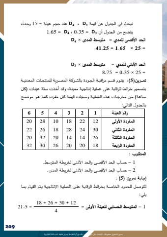 %u062c%u0645%u064a%u0639 %u0627%u0644%u062d%u0642%u0648%u0642 %u0645%u062d%u0641%u0648%u0638%u0629 %u0640 %u0627%u0625%u0644%u0639%u062a%u062f%u0627%u0621 %u0639%u0649%u0644 %u062d%u0642 %u0627%u0645%u0644%u0624%u0644%u0641 %u0628%u0627%u0644%u0646%u0633%u062e %u0623%u0648 %u0627%u0644%u0637%u0628%u0627%u0639%u0629 %u064a%u0639%u0631%u0636 %u0641%u0627%u0639%u0644%u0647 %u0644%u0644%u0645%u0633%u0627%u0626%u0644%u0629 %u0627%u0644%u0642%u0627%u0646%u0648%u0646%u064a%u0629209%u0646%u0628%u062d%u062b %u0641%u064a %u0627%u0644%u062c%u062f%u0648%u0644 %u0639%u0646 %u0642%u064a%u0645%u0629 D3 %u060c D4 %u0639%u0646%u062f %u062d%u062c%u0645 %u0639%u064a%u0646%u062b%u0629 = 15 %u0648%u062d%u062b%u062f%u0629%u060c %u064a%u062a%u0636%u062d %u0645%u0646 %u0627%u0644%u062c%u062f%u0648%u0644 %u0623%u0646 D3 = 35.0 %u060c D4 = 65.1%u0627%u0644%u062d%u062f %u0627%u0623%u0644%u0642%u0635%u0649 %u0644%u0645%u0645%u062f%u064a = %u0645%u062a%u0648%u0633%u0637 %u0627%u0644%u0645%u062f%u0649 %u00d7 D4 = 25 %u00d7 65.1 = 25.41 %u0627%u0644%u062d%u062f %u0627%u0623%u0644%u062f%u0646%u064a %u0644%u0645%u0645%u062f%u064a = %u0645%u062a%u0648%u0633%u0637 %u0627%u0644%u0645%u062f%u0649 %u00d7 D3 = 25 %u00d7 35.0 = 75.8%u062a%u0645%u0640%u0640%u0640%u0631%u064a%u0646)5 :)%u064a%u0642%u062b%u062b%u0648%u0645 %u0642%u0633%u062b%u062b%u0645 %u0645%u0631%u0627%u0642%u0628%u062b%u062b%u0629 %u0627%u0644%u062c%u062b%u062b%u0648%u062f%u0629 %u0628%u0627%u0644%u0634%u062b%u062b%u0631%u0643%u0629 %u0627%u0644%u0645%u0635%u062b%u062b%u0631%u064a%u0629 %u0644%u0645%u0645%u0646%u062a%u062c%u062b%u062b%u0627%u062a %u0627%u0644%u0645%u0639%u062f%u0646%u064a%u062b%u062b%u0629 %u0628%u062a%u0635%u0645%u064a%u0645 %u062e%u0631%u0627%u0626%u0637 %u0644%u0645%u0631%u0642%u0627%u0628%u0629 %u0639%u0645%u0649 %u0639%u0645%u0645%u064a%u0629 %u0625%u0646%u062a%u0627%u062c%u064a%u062b%u0629 %u0645%u0639%u064a%u0646%u062b%u0629%u060c %u0648%u0642%u062b%u062f %u0623%u062e%u062b%u0630%u062a %u0633%u062b%u062a%u0629 %u0639%u064a%u0646%u062b%u0627%u062a )%u0643%u062b%u0644 %u0633%u062b%u062b%u0627%u0639%u0629( %u0645%u062b%u062b%u0646 %u0645%u062e%u0631%u062c%u062b%u062b%u0627%u062a %u0649%u062b%u062b%u0630%u0647 %u0627%u0644%u0639%u0645%u0645%u064a%u062b%u062b%u0629 %u0648%u0633%u062b%u062b%u062c%u0645%u062a %u0642%u064a%u0645%u062b%u062b%u0629 %u0643%u062b%u062b%u0644 %u0645%u0641%u062b%u062b%u0631%u062f%u0629 %u0643%u0645%u062b%u062b%u0627 %u0649%u062b%u062b%u0648 %u0645%u0648%u0636%u062b%u062b%u062d %u0628%u0627%u0644%u062c%u062f%u0648%u0644 %u0627%u0644%u062a%u0627%u0644%u064a: %u0631%u0642%u0645 %u0627%u0644%u0639%u064a%u0646%u0629 1 2 3 4 5 6%u0627%u0644%u0645%u0641%u0631%u062f%u0629 %u0627%u0623%u0644%u0648%u0644%u0649%u0627%u0644%u0645%u0641%u0631%u062f%u0629 %u0627%u0644%u062b%u0627%u0646%u064a%u0627%u0644%u0645%u0641%u0631%u062f%u0629 %u0627%u0644%u062b%u0627%u0644%u062b%u0629%u0627%u0644%u0645%u0641%u0631%u062f%u0629 %u0627%u0644%u0631%u0627%u0628%u0639%u0629123026182224142018281420101820262826323020222032%u0627%u0644%u0645%u0637%u0645%u0648%u0628 : 1 %u2013 %u062d%u0633%u0627%u0628 %u0627%u0644%u062d%u062f %u0627%u0623%u0644%u0642%u0635%u0649 %u0648%u0627%u0644%u062d%u062f %u0627%u0623%u0644%u062f%u0646%u0649 %u0644%u062e%u0631%u064a%u0637%u0629 %u0627%u0644%u0645%u062a%u0648%u0633%u0637.2 %u2013 %u062d%u0633%u0627%u0628 %u0627%u0644%u062d%u062f %u0627%u0623%u0644%u0642%u0635%u0649 %u0648%u0627%u0644%u062d%u062f %u0627%u0623%u0644%u062f%u0646%u0649 %u0644%u062e%u0631%u064a%u0637%u0629 %u0627%u0644%u0645%u062f%u0649.%u0625%u062c%u0627%u0628%u0629 %u062a%u0645%u0631%u064a%u0646 )5: )%u0644%u0645%u062a%u0648%u0635%u062b%u0644 %u0644%u0645%u062d%u062b%u062f%u0648%u062f %u0627%u0644%u062e%u0627%u0635%u062b%u0629 %u0628%u062e%u062b%u0631%u0627%u0626%u0637 %u0627%u0644%u0631%u0642%u0627%u0628%u062b%u0629 %u0639%u0645%u062b%u0649 %u0627%u0644%u0639%u0645%u0645%u064a%u062b%u0629 %u0627%u0625%u0644%u0646%u062a%u0627%u062c%u064a%u062b%u0629 %u064a%u062b%u062a%u0645 %u0627%u0644%u0642%u064a%u062b%u0627%u0645 %u0628%u0645%u062b%u0627 %u064a%u0645%u064a:1 %u2013 %u0627%u0644%u0645%u062a%u0648%u0633%u0637 %u0627%u0644%u062d%u0633%u0627%u0628%u064a %u0644%u0645%u0639%u064a%u0646%u0629 %u0627%u0623%u0644%u0648%u0644%u0649 =12 + 30 + 26 + 18= 5.214
