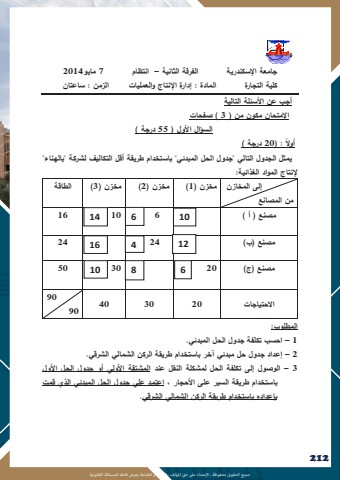 %u062c%u0645%u064a%u0639 %u0627%u0644%u062d%u0642%u0648%u0642 %u0645%u062d%u0641%u0648%u0638%u0629 %u0640 %u0627%u0625%u0644%u0639%u062a%u062f%u0627%u0621 %u0639%u0649%u0644 %u062d%u0642 %u0627%u0645%u0644%u0624%u0644%u0641 %u0628%u0627%u0644%u0646%u0633%u062e %u0623%u0648 %u0627%u0644%u0637%u0628%u0627%u0639%u0629 %u064a%u0639%u0631%u0636 %u0641%u0627%u0639%u0644%u0647 %u0644%u0644%u0645%u0633%u0627%u0626%u0644%u0629 %u0627%u0644%u0642%u0627%u0646%u0648%u0646%u064a%u0629212%u062c%u0627%u0645%u0639%u0629 %u0627%u0625%u0644%u0633%u0643%u0646%u062f%u0631%u064a%u0629 %u0627%u0644%u0641%u0631%u0642%u0629 %u0627%u0644%u062b%u0627%u0646%u064a%u0629 %u2013 %u0627%u0646%u062a%u0638%u0627%u0645 7 %u0645%u0627%u064a%u06484102%u0643%u0645%u064a%u0629 %u0627%u0644%u062a%u062c%u0627%u0631%u0629 %u0627%u0644%u0645%u0627%u062f%u0629 : %u0625%u062f%u0627%u0631%u0629 %u0627%u0625%u0644%u0646%u062a%u0627%u062c %u0648%u0627%u0644%u0639%u0645%u0645%u064a%u0627%u062a %u0627%u0644%u0632%u0645%u0646 : %u0633%u0627%u0639%u062a%u0627%u0646 %u0623%u062c%u0628 %u0639%u0646 %u0627%u0623%u0644%u0633%u0626%u0645%u0629 %u0627%u0644%u062a%u0627%u0644%u064a%u0629 %u0627%u0625%u0644%u0645%u062a%u062d%u0627%u0646 %u0645%u0643%u0648%u0646 %u0645%u0646 ) 3 ) %u0635%u0641%u062d%u0627%u062a%u0627%u0644%u0633%u0624%u0627%u0644 %u0627%u0623%u0644%u0648%u0644 ) 55 %u062f%u0631%u062c%u0629 (%u064b : )41 %u062f%u0631%u062c%u0629 (%u0623%u0648%u0627%u0644 %u064a%u0645%u062b%u0644 %u0627%u0644%u062c%u062f%u0648%u0644 %u0627%u0644%u062a%u0627%u0644%u064a \%u062c%u062f%u0648%u0644 %u0627%u0644%u062d%u0644 %u0627%u0644%u0645%u0628%u062f%u0626%u064a\ %u0628%u0627%u0633%u062a%u062e%u062f%u0627%u0645 %u0637%u0631%u064a%u0642%u0629 %u0623%u0642%u0644 %u0627%u0644%u062a%u0643%u0627%u0644%u064a%u0641 %u0644%u0634%u0631%u0643%u0629 \%u0628%u0627%u0644%u064a%u0646%u0627%u0621\ %u0625%u0644%u0646%u062a%u0627%u062c %u0627%u0644%u0645%u0648%u0627%u062f %u0627%u0644%u063a%u0630%u0627%u0626%u064a%u0629: %u0625%u0644%u0649 %u0627%u0644%u0645%u062e%u0627%u0632%u0646%u0645%u0646 %u0627%u0644%u0645%u0635%u0627%u0646%u0639%u0645%u062e%u0632%u0646 )0 )%u0645%u062e%u0632%u0646 )4 )%u0645%u062e%u0632%u0646 )3 )%u0627%u0644%u0637%u0627%u0642%u0629%u0645%u0635%u0646%u0639 ) %u0623 ( 6 01 06%u0645%u0635%u0646%u0639 )%u0628( 42 42%u0645%u0635%u0646%u0639 )%u062c( 41 31 5191%u0627%u0627%u0644%u062d%u062a%u064a%u0627%u062c%u0627%u062a 41 31 2191%u0627%u0644%u0645%u0637%u0645%u0648%u0628:0 %u2013 %u0627%u062d%u0633%u0628 %u062a%u0643%u0645%u0641%u0629 %u062c%u062f%u0648%u0644 %u0627%u0644%u062d%u0644 %u0627%u0644%u0645%u0628%u062f%u0626%u064a.4 %u2013 %u0625%u0639%u062f%u0627%u062f %u062c%u062f%u0648%u0644 %u062d%u0644 %u0645%u0628%u062f%u0626%u064a %u0622%u062e%u0631 %u0628%u0627%u0633%u062a%u062e%u062f%u0627%u0645 %u0637%u0631%u064a%u0642%u0629 %u0627%u0644%u0631%u0643%u0646 %u0627%u0644%u0634%u0645%u0627%u0644%u064a %u0627%u0644%u0634%u0631%u0642%u064a.3 %u2013 %u0627%u0644%u0648%u0635%u0648%u0644 %u0625%u0644%u0649 %u062a%u0643%u0645%u0641%u0629 %u0627%u0644%u062d%u0644 %u0644%u0645%u0634%u0643%u0645%u0629 %u0627%u0644%u0646%u0642%u0644 %u0639%u0646%u062f %u0627%u0644%u0645%u0634%u062a%u0642%u0629 %u0627%u0623%u0644%u0648%u0644%u064a %u0623%u0648 %u062c%u062f%u0648%u0644 %u0627%u0644%u062d%u0644 %u0627%u0623%u0644%u0648%u0644%u0628%u0627%u0633%u062a%u062e%u062f%u0627%u0645 %u0637%u0631%u064a%u0642%u0629 %u0627%u0644%u0633%u064a%u0631 %u0639%u0645%u0649 %u0627%u0623%u0644%u062d%u062c%u0627%u0631 %u060c %u0627%u0639%u062a%u0645%u062f %u0639%u0645%u064a %u062c%u062f%u0648%u0644 %u0627%u0644%u062d%u0644 %u0627%u0644%u0645%u0628%u062f%u0626%u064a %u0627%u0644%u0630%u064a %u0642%u0645%u062a %u0628%u0625%u0639%u062f%u0627%u062f%u0647 %u0628%u0627%u0633%u062a%u062e%u062f%u0627%u0645 %u0637%u0631%u064a%u0642%u0629 %u0627%u0644%u0631%u0643%u0646 %u0627%u0644%u0634%u0645%u0627%u0644%u064a %u0627%u0644%u0634%u0631%u0642%u064a.10 64 1614126 8 10