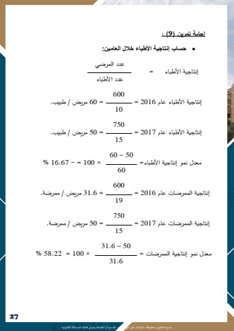 %u062c%u0645%u064a%u0639 %u0627%u0644%u062d%u0642%u0648%u0642 %u0645%u062d%u0641%u0648%u0638%u0629 %u0640 %u0627%u0625%u0644%u0639%u062a%u062f%u0627%u0621 %u0639%u0649%u0644 %u062d%u0642 %u0627%u0645%u0644%u0624%u0644%u0641 %u0628%u0627%u0644%u0646%u0633%u062e %u0623%u0648 %u0627%u0644%u0637%u0628%u0627%u0639%u0629 %u064a%u0639%u0631%u0636 %u0641%u0627%u0639%u0644%u0647 %u0644%u0644%u0645%u0633%u0627%u0626%u0644%u0629 %u0627%u0644%u0642%u0627%u0646%u0648%u0646%u064a%u062927%u0625%u062c%u0627 %u0629 %u062a%u0645%u0631%u064a%u0646 )9: )%uf0b7 %u062d%u0633%u0627%u0628 %u0625%u0646%u062a%u0627%u062c%u064a%u0629 %u0627%u0623%u0644%u0637%u0628%u0627%u0621 %u062e%u0627%u0644%u0644 %u0627%u0644%u0639%u0627%u0645%u064a :%u0625%u0646%u062a%u0627%u062c%u064a%u0629 %u0627%u0623%u0644%u0637%u0628%u0627%u0621 =%u0639%u062f%u062f %u0627%u0644%u0645%u0631%u0636%u064a%u0639%u062f%u062f %u0627%u0623%u0644%u0637%u0628%u0627%u0621%u0625%u0646%u062a%u0627%u062c%u064a%u0629 %u0627%u0623%u0644%u0637%u0628%u0627%u0621 %u0639%u0627%u0645 2016= 600= 60 %u0645%u0631%u064a%u0636 / %u0637%u0628%u064a%u0628.10%u0625%u0646%u062a%u0627%u062c%u064a%u0629 %u0627%u0623%u0644%u0637%u0628%u0627%u0621 %u0639%u0627%u0645 2017= 750= 50 %u0645%u0631%u064a%u0636 / %u0637%u0628%u064a%u0628.15%u0645%u0639%u062f%u0644 %u0646%u0645%u0648 %u0625%u0646%u062a%u0627%u062c%u064a%u0629 %u0627%u0623%u0644%u0637%u0628%u0627%u0621= 50 %u2013 60%u00d7 100 - = 67.16% 60%u0625%u0646%u062a%u0627%u062c%u064a%u0629 %u0627%u0644%u0645%u0645%u0631%u0636%u0627%u062a %u0639%u0627%u0645 2016= 600= 6.31 %u0645%u0631%u064a%u0636 / %u0645%u0645%u0631%u0636%u0629.19%u0625%u0646%u062a%u0627%u062c%u064a%u0629 %u0627%u0644%u0645%u0645%u0631%u0636%u0627%u062a %u0639%u0627%u0645 2017= 750= 50 %u0645%u0631%u064a%u0636 / %u0645%u0645%u0631%u0636%u0629.15%u0645%u0639%u062f%u0644 %u0646%u0645%u0648 %u0625%u0646%u062a%u0627%u062c%u064a%u0629 %u0627%u0644%u0645%u0645%u0631%u0636%u0627%u062a =50 %u2013 6.31%u00d7 100 = 22.58% 6.31