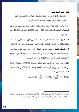 %u062c%u0645%u064a%u0639 %u0627%u0644%u062d%u0642%u0648%u0642 %u0645%u062d%u0641%u0648%u0638%u0629 %u0640 %u0627%u0625%u0644%u0639%u062a%u062f%u0627%u0621 %u0639%u0649%u0644 %u062d%u0642 %u0627%u0645%u0644%u0624%u0644%u0641 %u0628%u0627%u0644%u0646%u0633%u062e %u0623%u0648 %u0627%u0644%u0637%u0628%u0627%u0639%u0629 %u064a%u0639%u0631%u0636 %u0641%u0627%u0639%u0644%u0647 %u0644%u0644%u0645%u0633%u0627%u0626%u0644%u0629 %u0627%u0644%u0642%u0627%u0646%u0648%u0646%u064a%u06298182)*( %u0642%u064a%u0627%u0633 %u0642%u064a%u0645%u0629 %u0627%u0644%u0645%u0639%u0644%u0648%u0645%u0627%u062a:%u0648%u0641%u0642%u0627 %u0644%u0646%u0638%u0631%u064a%u0629 %u0627%u0644%u0642%u0631%u0627%u0631%u0627%u062a %u0641%u0625%u0646 %u0642%u064a%u0645%u0629 %u0627%u0644%u0645%u0639%u0644%u0648%u0645%u0627%u062a %u062a%u062a%u0645%u062b%u0644 %u0641%u064a %u0627%u0644%u062a%u062d%u0633%u0646 %u0641%u064a %u0642%u064a%u0645%u0629 %u0627%u0644%u0642%u0631%u0627%u0631 %u0646%u062a%u064a%u062c%u0629 %u0644%u062a%u0648%u0627%u0641%u0631 %u0645%u0639%u0644%u0648%u0645%u0627%u062a %u0625%u0636%u0627%u0641%u064a%u0629 %u0644%u0645%u062a%u062e%u0644 %u0627%u0644%u0642%u0631%u0627%u0631. %u0648%u0639%u062f%u0627%u062f%u0629 %u0628%u0648%u0627%u0627%u062f%u0645 %u0645%u062a %u062f %u0627%u0644%u0642%u062f%u0631%u0627%u0631 %u0628%u0639%u062f%u0646%u0629 %u0628%u062f%u0646%u0627%u0626%u0644 %u0644%u064a %u062a%u062f%u0627%u0631 %u0623%u0641%u0636%u062f%u0644 %u0628%u062f%u0646%u0628%u0644 %u0645%u062f%u0645 %u0628%u064a%u0646 %u062f%u0627 %u0641%u062f%u064a %u0641%u062f %u0648 %u0627%u0644%u0645%u0639%u0644%u0648%u0645%u0627%u062a %u0627%u0644%u0645%u062a%u0627 %u0629 %u0644%u0645 %u0648%u062a %u0627%u062a %u0627 %u0627%u0644%u0642%u0631%u0627%u0631 %u0648 %u0646%u0627%u0643 %u0627 %u062f%u0629 %u0638%u062f %u0631%u0648 %u0628%u062f%u062a%u0645 %u0627%u062a %u062f%u0627 %u0627%u0644%u0642%u062f%u0631%u0627%u0631%u0627%u062a %u062a%u062d%u062a %u0627 %u064a: 1 %u2013 %u0638%u0640%u0640%u0631%u0648%u0641 %u0627%u0644%u062a:%u064a%u0640%u0640%u062f %u0627%u0644%u062a%u0640%u0640%u0627%u0645: %u0641%u062f%u064a %u062f %u0627%u0644%u062d%u0627%u0644%u062f%u0629 %u064a%u0644%u062f%u0648 %u0644%u062f%u0646%u062a %u0645%u062a %u062f %u0627%u0644%u0642%u062f %u0627%u0631%u0631 %u0645%u0639%u0644%u0648%u0645%u062f%u0627%u062a%u0643%u0627%u0645%u0644%u0629 %u0648%u062f%u0642%u064a%u0642%u0629 %u0639%u0645 %u0627%u0644%u0628%u0646%u0627%u0626%u0644 %u0627%u0644%u0645%u062a%u0627 %u0629 %u0648 %u0644%u0648 %u0627 %u062a%u0645%u0627 %u0646%u0648 %u0628%u0644 %u0628%u0646%u0628%u0644 %u0648 100%%u06482 %u2013 %u0638%u0640%u0631%u0648%u0641 %u0627%u0644%u062e%u0637%u0640%u0631: %u062a%u062d%u062f %u0638%u062f%u0631%u0648 %u0627%u0644 %u0637%u062f%u0631 %u064a%u0644%u062f%u0648 %u0644%u062f%u0646%u062a %u0645%u062a %u062f %u0627%u0644%u0642%u062f %u0627%u0631%u0631 %u0645%u0639%u0644%u0648%u0645%u062f%u0627%u062a%u0639%u062f%u0645 %u0627%u0644%u0628%u062f%u0646%u0627%u0626%u0644 %u0627%u0644%u0645%u062a%u0627 %u062f%u0629 %u0648%u0627 %u062a%u0645%u062f%u0627 %u062a %u062f%u0646%u0648 %u0628%u062f%u0644 %u0628%u062f%u0646%u0628%u0644 %u0645%u0646 %u062f%u0627 %u0628%u0627%u062f%u0631 %u0623 %u0628 %u062f%u0646 %u0645%u062c%u0645%u062f%u0648%u062d %u0627 %u062a%u0645%u0627 %u062a %u0644%u0644%u0628%u0646%u0628%u0644 %u0627%u0644%u0648%u0627 %u0646 %u0639%u0645 100 %%u0623%u0648 %u0627%u0644%u0648%u0627 %u0646 %u0627%u0644%u0635%u062d%u064a%u0647%u0648 %u0645%u0640%u062b%u0627%u0644%u064b: %u0628%u062f%u0646%u0628%u0644 %u0645%u0639%u062f%u064a%u0645 %u0628%u062a%u0631%u062a%u062f%u0645 %u0639%u0644%u064a%u062f%u0645 %u062a%u062d%u0642%u064a%u062f%u0642 %u0645%u0628%u064a%u0639%u062f%u0627%u062a 000.10 %u0628%u0627 %u062a%u0645%u062f%u0627 50 %%u062a%u0641%u062f%u064a %u0627%u0644%u062f%u0629 %u062f%u0646%u0648 %u0631%u0648%u0627 %u0648 %u0623%u0648 %u0645%u0628%u064a%u0639%u062f%u0627%u062a 000.5 %u0628%u0627 %u062a%u0645%u062f%u0627 50 %%u0641%u062f%u064a %u0627%u0644%u062f%u0629 %u062f%u0646%u0648 %u0643%u0633%u0627%u062f%u0648 %u0642%u064a%u0645%u0629 %u0627%u0644%u0628%u0646%u0628%u0644 : 000.10 + %u00d7 000.5 = %u00d7 7500 %u0627%u0646%u064a%u0645)( %u062a%u0645 %u0623%u0639%u0646%u0627%u062f %u0627 %u0627%u0644%u062c %u0628%u0627 %u0639%u062a%u0645%u0627%u062f %u0639%u0644%u0649 %u0627%u0644%u0645%u0631%u0627%u0631 %u0627%u0644%u062a%u062f%u0627%u0644%u064a : %u0645%u0646%u062f%u0627 %u0627%u0644%u0648%u062f%u0631%u062f%u064a %u0648%u0627%u062f%u0627 %u0627%u0644%u0639%u0628%u062f%u0646%u0627 %u0645%u0642%u0646%u0645%u062f%u0629 %u0641%u062f%u064a %u0646%u0638%u062f%u0645 %u0627%u0644%u0645%u0639%u0644%u0648%u0645%u062f%u0627%u062a *%u0627%u0625%u0644%u062f%u0627%u0631 %u0629 : %u0627%u0644%u0645%u0641%u0627%u0647%u064a%u0645 %u0627%u0623%u0644%u0633%u0627%u0633%u064a%u0629 %u0648%u0627%u0644%u062a%u0637%u0628%u064a%u0642%u0627%u062a%u0648 %u0627%u0644%u0641%u0635%u0644 %u0627%u0644 %u0627%u0645 %u0627 2003%u0627 %u062f%u0627%u0631 %u0627%u0644%u062c%u0627%u0645%u0639%u0629 %u0627%u0644%u062c%u0646%u0628%u0646%u0629%u0648 5010050100
