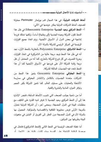%u062c%u0645%u064a%u0639 %u0627%u0644%u062d%u0642%u0648%u0642 %u0645%u062d%u0641%u0648%u0638%u0629 %u0640 %u0627%u0625%u0644%u0639%u062a%u062f%u0627%u0621 %u0639%u0649%u0644 %u062d%u0642 %u0627%u0645%u0644%u0624%u0644%u0641 %u0628%u0627%u0644%u0646%u0633%u062e %u0623%u0648 %u0627%u0644%u0637%u0628%u0627%u0639%u0629 %u064a%u0639%u0631%u0636 %u0641%u0627%u0639%u0644%u0647 %u0644%u0644%u0645%u0633%u0627%u0626%u0644%u0629 %u0627%u0644%u0642%u0627%u0646%u0648%u0646%u064a%u062911 18%u0623%u0633%u0627%u0633%u064a%u0627%u062a %u0625%u062f%u0627%u0631%u0629 %u0627%u0623%u0644%u0639%u0645%u0627%u0644 %u0627%u0644%u062f%u0648%u0644%u064a%u0629%u0623%u0646%u0645%u0627%u0637 %u0627%u0644%u0634%u0631%u0643%u0627%u062a %u0627%u0644%u062f%u0648%u0644%u064a%u0629: %u0641%u064a %u0647%u0630%u0627 %u0627%u0644%u0645%u062c%u0627%u0644 %u0642%u062f%u0645 %u0628%u064a%u0631%u0644%u0645%u062a%u0627%u0631 Perlmuter %u0645%u062d%u0627%u0648%u0644%u0629%u0644%u062a%u0635%u0646%u064a%u0641 %u0623%u0646%u0645%u0627%u0637 %u0627%u0644%u0634%u0631%u0643%u0627%u062a %u0627%u0644%u062f%u0648 %u0644%u064a%u0629 %u064a%u0645%u0643%u0646 %u0639%u0631%u0636%u0647%u0627 %u0641%u064a %u0627%u0622%u0644%u062a%u064a:%u0623- %u0627%u0644%u0646%u0645%u0637 %u0627%u0644%u0645%u0631%u0643%u0632%u064a %u0648%u062d%u064a%u062f %u0627%u0644%u062c%u0646%u0633%u064a%u0629 Enterprise Ethnocentric %u0641%u064a %u0638%u0644 %u0647%u0630%u0627 %u064b%u064b%u060c %u0648%u0644%u0643%u0646%u0647%u0627 %u062a%u0645%u062a%u0644%u0643 %u0641%u0631%u0648%u0639%u0627%u0627%u0644%u0646%u0645%u0637 %u062a%u0643%u0648%u0646 %u0627%u0644%u0634%u0631%u0643%u0629 %u0648%u062d%u064a%u062f%u0629 %u0627%u0644%u062c%u0646%u0633%u064a%u0629 )%u0623%u064a %u0648%u0637%u0646%u064a%u0629( %u0623%u0633%u0627%u0633%u0627%u0625%u0646%u062a%u0627%u062c%u064a%u0629 %u0641%u064a %u0628%u0639%u0636 %u0627%u0644%u062f%u0648%u0644 %u0623%u0648 %u0627%u0623%u0644%u0633%u0648%u0627%u0642 %u0627%u0623%u0644%u062c%u0646%u0628%u064a%u0629. %u0648%u064a%u062a%u0645 %u0627%u062a%u062e%u0627%u0630 %u062c%u0645%u064a%u0639 %u0627%u0644%u0642%u0631%u0627%u0631%u0627%u062a %u0627%u0644%u0631%u0626%u064a%u0633%u064a%u0629 %u0641%u064a %u0627%u0644%u0645%u0631%u0643%u0632 %u0627%u0644%u0631%u0626%u064a%u0633%u064a %u0644%u0644%u0634%u0631%u0643%u0629 %u0628%u0627%u0644%u062f%u0648%u0644%u0629 %u0627%u0623%u0644%u0645.%u0628- %u0627%u0644%u0646%u0645%u0637 %u0627%u0644%u0627%u0644%u0645%u0631%u0643%u0632 %u064a Enterprise Polycentric %u0628%u0627%u0644%u0645%u0642%u0627%u0631%u0646%u0629 %u0628%u0627%u0644%u0646%u0645%u0637 %u0627%u0623%u0644%u0648 %u0644%u060c %u0646%u062c%u062f %u0623%u0646%u0647 %u0641%u064a %u0638%u0644 %u0647%u0630%u0627 %u0627%u0644%u0646%u0645%u0637 %u062a%u0648%u062c%u062f %u062f%u0631%u062c%u0629 %u0639%u0627%u0644%u064a%u0629 %u0645%u0646 %u0627%u0644%u0627%u0644%u0645%u0631%u0643%u0632%u064a%u0629 %u0641%u064a %u0627%u062a%u062e%u0627%u0630 %u0627%u0644%u0642%u0631%u0627%u0631%u0627%u062a %u0648%u062d%u0631%u064a%u0629 %u0627%u0644%u062a%u0635%u0631%u0641 %u0641%u064a %u0643%u0644 %u0641%u0631%u0648%u0639 %u0627%u0644%u0634%u0631%u0643%u0629 %u0628%u0627%u0644%u062e%u0627%u0631%u062c%u060c %u0643%u0645%u0627 %u0623%u0646%u0647 %u0645%u0646 %u0627%u0644%u0645%u062d%u062a%u0645%u0644 %u0623%u0646 %u062a%u0642%u0644 %u062f%u0631%u062c%u0629 %u0631%u0642%u0627%u0628%u0629 %u0627%u0644%u0634%u0631%u0643%u0629 %u0627%u0623%u0644%u0645 %u0639%u0644%u0649 %u0641%u0631%u0648%u0639%u0647%u0627 %u0641%u064a %u0627%u0623%u0644%u0633%u0648%u0627%u0642 %u0627%u0623%u0644%u062c%u0646%u0628%u064a%u0629 %u0643%u0645%u0627 %u0623%u0646 %u0647%u0630%u0627 %u0627%u0644%u0646%u0645%u0637 %u062a%u062a%u0639%u062f%u062f %u0641%u064a%u0647 %u0627%u0644%u062c%u0646%u0633%u064a%u0627%u062a %u0627%u0644%u0645%u0627%u0644%u0643%u0629 %u0644%u0644%u0634%u0631%u0643%u0629.%u062c- %u0627%u0644%u0646%u0645%u0637 %u0627%u0644%u062c%u063a%u0631%u0627%u0641%u064a Enterprise Geocentric %u064a%u062a%u0645%u064a%u0632 %u0647%u0630%u0627 %u0627%u0644%u0646%u0645%u0637 %u0645%u0646 %u0627%u0644%u0634%u0631%u0643%u0627%u062a %u0645%u062a%u0639%u062f%u062f%u0629 %u0627%u0644%u062c%u0646%u0633%u064a%u0627%u062a %u0628%u0627%u0644%u062a%u0643%u0627%u0645%u0644 %u0648%u0627%u0627%u0644%u0646%u062a%u0634%u0627%u0631 %u0627%u0644%u062c%u063a%u0631%u0627%u0641%u064a %u0641%u064a %u0645%u0645%u0627%u0631%u0633%u0629%u0627%u0623%u0644%u0646%u0634%u0637%u0629 %u0648%u0627%u0644%u0639%u0645%u0644%u064a%u0627%u062a %u0639%u0644%u0649 %u0645%u0633%u062a%u0648%u0649 %u0627%u0644%u0639%u0627%u0644%u0645. %u0643%u0645%u0627 %u062a%u062a%u0645%u064a%u0632 %u0627%u0644%u0634%u0631%u0643%u0629 %u0628%u0643%u0628%u0631 %u0627%u0644%u062d%u062c%u0645%u0648%u062a%u0648%u0627%u0641%u0631 %u0627%u0644%u0645%u0648%u0627%u0631%u062f %u0627%u0644%u0645%u0627%u062f%u064a%u0629 %u0648%u0627%u0644%u0628%u0634%u0631%u064a%u0629 %u0648%u0627%u0644%u0641%u0646%u064a%u0629.%u0623%u0645%u0627 %u0645%u0646 %u0646%u0627%u062d%u064a%u0629 %u062c%u0648%u0627%u0646%u0628 %u0627%u0644%u0636%u0639%u0641 %u0627%u0644%u062a%u064a %u062a%u0634%u0648%u0628 %u0627%u0623%u0644%u0646%u0645%u0627%u0637 %u0627%u0644%u0633%u0627%u0628%u0642%u0629%u060c %u0641%u062a%u062c%u062f%u0631 %u0627%u0625%u0644%u0634%u0627%u0631%u0629 %u0647%u0646%u0627 %u0625%u0644%u0649 %u0623%u0646 %u0627%u0644%u0646%u0645%u0637 %u0627%u0644%u0645%u0631%u0643%u0632%u064a %u0648%u062d%u064a%u062f %u0627%u0644%u062c%u0646%u0633%u064a%u0629 %u0627%u0644 %u062a%u062a%u0648%u0641%u0631 %u0644%u062f%u064a%u0647 %u0627%u0644%u0642%u062f%u0631%u0629 %u0639%u0644%u0649 %u0627%u0644%u062a%u0643%u064a%u0641 %u0645%u0639 %u0645%u062a%u0637%u0644%u0628%u0627%u062a %u0627%u0644%u0628%u064a%u0626%u0629 %u0641%u064a %u0627%u0644%u062f%u0648%u0644 %u0627%u0644%u0645%u0636%u064a%u0641%u0629. %u0648%u0628%u0645%u0639%u0646%u0649 %u0622%u062e%u0631%u060c %u0623%u0646 %u0627%u0644%u0634%u0631%u0643%u0629 %u0627%u0644%u062f%u0648%u0644%u064a%u0629 %u062a%u062d%u0627%u0648%u0644%u0628%u0627%u0