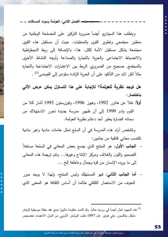 %u062c%u0645%u064a%u0639 %u0627%u0644%u062d%u0642%u0648%u0642 %u0645%u062d%u0641%u0648%u0638%u0629 %u0640 %u0627%u0625%u0644%u0639%u062a%u062f%u0627%u0621 %u0639%u0649%u0644 %u062d%u0642 %u0627%u0645%u0644%u0624%u0644%u0641 %u0628%u0627%u0644%u0646%u0633%u062e %u0623%u0648 %u0627%u0644%u0637%u0628%u0627%u0639%u0629 %u064a%u0639%u0631%u0636 %u0641%u0627%u0639%u0644%u0647 %u0644%u0644%u0645%u0633%u0627%u0626%u0644%u0629 %u0627%u0644%u0642%u0627%u0646%u0648%u0646%u064a%u06295333%u0627%u0644%u0641%u0635%u0644 %u0627%u0644%u062b%u0627%u0646%u064a: %u0627%u0644%u0639%u0648%u0644%u0645%u0629 %u0648%u0645%u0648%u062a %u0627%u0644%u0645%u0633%u0627%u0641%u0627%u062a%u064b %u0636%u0631%u0648%u0631%u0629 %u0627%u0644%u062a%u0631%u0643%u064a%u0632 %u0639%u0644%u0649 %u0627%u0644%u0645%u0635%u0644%u062d%u0629 %u0627%u0644%u0648%u0637%u0646%u064a%u0629 %u0645%u0646%u0648%u064a%u062a%u0637%u0644%u0628 %u0647%u0630%u0627 %u0627%u0644%u0633%u064a%u0646%u0627%u0631%u064a%u0648 %u0623%u064a%u0636%u0627%u0645%u0646%u0638%u0648%u0631 %u0645%u062c%u062a%u0645%u0639%u0649 %u0648%u062a%u0637%u0648%u064a%u0631 %u0627%u0644%u0642%u0631%u0649 %u0648%u0627%u0644%u0645%u062d%u0644%u064a%u0627%u062a. %u062d%u064a%u062b %u0623%u0646 %u0645%u0633%u062a%u0642%u0628%u0644 %u0647%u0630%u0647 %u0627%u0644%u0642%u0631%u0649%u0645%u062c%u062a%u0645%u0639%u0629 %u064a%u0634%u0643%u0644 %u0645%u0633%u062a%u0642%u0628%u0644 %u0627%u0623%u0644%u0645%u0629 %u0643%u0643%u0644. %u0647%u0630%u0627%u060c %u0628%u0627%u0625%u0644%u0636%u0627%u0641%u0629 %u0625%u0644%u0649 %u0631%u0628%u0637 %u0627%u0644%u062f%u064a%u0645%u0642%u0631%u0627%u0637%u064a%u0629 %u0648%u0627%u0627%u0644%u0646%u0636%u0628%u0627%u0637 %u0627%u0627%u0644%u062c%u062a%u0645%u0627%u0639%u0649 %u0648%u0627%u0644%u062d%u0631%u064a%u0629 %u0628%u0627%u0644%u062a%u062c%u0627%u0631%u0629 %u0648%u0627%u0644%u0635%u0646%u0627%u0639%u0629 %u0648%u0623%u0648%u062c%u0647 %u0627%u0644%u0646%u0634%u0627%u0637 %u0627%u0623%u0644%u062e%u0631%u0649%u0628%u0627%u0644%u0645%u062c%u062a%u0645%u0639. %u0635%u062d%u064a%u062d %u0645%u0646 %u0627%u0644%u0636%u0631%u0648%u0631%u064a %u0627%u0644%u0631%u0628%u0637 %u0628%u064a%u0646 %u0627%u0627%u0644%u0639%u062a%u0628%u0627%u0631%u0627%u062a %u0627%u0627%u0644%u062c%u062a%u0645%u0627%u0639%u064a%u0629 %u0648%u0627%u0644%u062a%u062c%u0627%u0631%u0629 %u064b %u0623%u0646 %u0627%u0644%u062d%u0631%u064a%u0629 %u0627%u0644%u0632%u0627%u0626%u062f%u0629 %u0633%u062a%u0624%u062f%u0649 %u0625%u0644%u0649 %u0627%u0644%u0641%u0648%u0636%u0649 %u0644%u0643%u0646 %u0627%u0644%u0628%u062f %u0645%u0646 %u0627%u0644%u062a%u0623%u0643%u064a%u062f %u0639%u0644%u0649. )8 )%u0645%u062b%u0627%u0644%u0647%u0644 %u062a%u0648%u062c%u062f %u0646%u0638%u0631%u064a%u0629 %u0644%u0644%u0639%u0648%u0644%u0645%u0629%u061f %u0644%u0625%u0644%u062c%u0627%u0628%u0629 %u0639%u0644%u0649 %u0647%u0630%u0627 %u0627%u0644%u062a%u0633%u0627%u0624%u0644 %u064a%u0645%u0643%u0646 %u0639%u0631%u0636 %u0627%u0622%u0644%u062a%u064a%u0628%u0627%u062e%u062a%u0635%u0627%u0631:%u0627 %u0639%u0646 %u0647%u0627%u0646%u0632%u0631%u064b 9111 %u060c%u0648%u0647%u064a%u0648%u0632 9111 %u060c%u0648%u0641%u064a%u0632%u0631%u0633%u062a%u0648%u0646 9115 %u0623%u0634%u0627%u0631 %u0643%u0627%u0644 %u0645%u0646 %u0623%u0648%u0627%u0644: %u0646%u0642%u0627%u0644%u0627%u0644%u062a%u0648%u0645 %u0648%u0627%u062f%u0645 9111 %u0625%u0644%u0649 %u0623%u0646 %u0638%u0647%u0648%u0631 %u0645%u062f%u0631%u0633%u0629 %u062c%u062f%u064a%u062f%u0629 %u062a%u062d%u0631%u0631 %u0627%u0627%u0644%u0633%u062a%u0647%u0627%u0644%u0643 %u0645%u0646 %u0633%u0645%u0627%u062a%u0647 %u0627%u0644%u0636%u0627%u0631%u0629 %u064a%u0639%u062a%u0628%u0631 %u0623%u062d%u062f %u062f%u0639%u0627%u0626%u0645 %u0646%u0638%u0631%u064a%u0629 %u0627%u0644%u0639%u0648%u0644%u0645%u0629.%u0648%u062a%u062a%u0644%u062e%u0635 %u0622%u0631%u0627%u0621 %u0647%u0630%u0647 %u0627%u0644%u0645%u062f%u0631%u0633%u0629 %u0641%u064a %u0623%u0646 %u0627%u0644%u0633%u0644%u0639 %u062a%u0645%u062b%u0644 %u062e%u0627%u0645%u0627%u062a %u0645%u0627%u062f%u064a%u0629 %u0648%u063a%u064a%u0631 %u0645%u0627%u062f%u064a%u0629 %u062a%u0643%u062a%u0633%u0628 %u0645%u0639%u0627%u0646%u064a %u062b%u0642%u0627%u0641%u064a%u0629 %u0645%u0646 %u062c%u0627%u0646%u0628%u064a%u0646:%u064b%uf02d %u0627%u0644%u062c%u0627%u0646%u0628 %u0627%u0623%u0644%u0648%u0644: %u0647%u0648 %u0627%u0644%u0645%u0646%u062a%u062c %u0627%u0644%u0630%u064a %u064a%u0636%u0639 %u0628%u0639%u0636 %u0627%u0644%u0645%u0639%u0627%u0646%u064a %u0641%u064a %u0627%u0644%u0633%u0644%u0639%u0629 %u0645%u0633%u062a%u063a%u0627%u0644%u0627%u0644%u062a%u0635%u0645%u064a%u0645 %u0648%u0627%u0644%u0644%u0648%u0646 %u0648%u0627%u0644%u063a%u0627%u0644%u0641 %u0648%u0645%u0631%u0643%u0632 %u0627%u0625%u0644%u0646%u062a%u0627%u062c %u0648%u063a%u064a%u0631%u0647%u0627... %u0648%u062a%u062a%u0645 %u062a%u0631%u062c%u0645%u0629 %u0647%u0630%u0647 %u0627%u0644%u0645%u0639%u0627%u0646%u0649%u0625%u0644%u0649 %u0645%u0627 %u064a%u0631%u064a%u062f%u0647 %u0627%u0625%u0644%u0646%u0633%u0627%u0646 %u0645%u0646 %u0642%u0648%u0629 %u0648%u062c%u0645%u0627%u0644 %u0648%u0639%u0627%u0637%u0641%u0629 %u0625%u0644%u062e ...%uf02d %u0623%u0645%u0627 %u0627%u0644%u062c%u0627%u0646%u0628 %u0627%u0644%u062b%u0627%u0646%u064a: %u0641%u0647%u0648 %u0627%u0644%u0645%u0633%u062a%u0647%u0644%u0643 %u0648%u0644%u064a%u0633 %u0627%u0644%u0645%u0646%u062a%u062c%u060c %u0648%u0644%u0647%u0630%u0627 %u0627%u0644 %u064a%u0648%u062c%u062f %u0645%u0628%u0631%u0631 %u0644%u0644%u062e%u0648%u0641 %u0645%u0646 %u0627%u0627%u0644%u0633%u062a%u0639%u0645%u0627%u0631 %u0627%u0644%u062b%u0642%u0627%u0641%u064a %u0637%u0627%u0644%u0645%u0627 %u0623%u0646 %u0623%u0633%u0627%u0633 %u0627%u0644%u062b%u0642%u0627%u0641%u0629 %u0647%u0648 %u0627%u0644%u0645%u0639%u0646%u0649 %u0627%u0644%u0630%u064a %u064b. %u0648%u0642%u062f %u0642%u0627%u0645%u062a %u062d%u0643%u0648%u0645%u0629 %u0645%u0627%u0644%u064a%u0632%u064a%u0627 %u0628%u0645%u0646%u0639