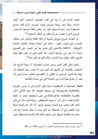 %u062c%u0645%u064a%u0639 %u0627%u0644%u062d%u0642%u0648%u0642 %u0645%u062d%u0641%u0648%u0638%u0629 %u0640 %u0627%u0625%u0644%u0639%u062a%u062f%u0627%u0621 %u0639%u0649%u0644 %u062d%u0642 %u0627%u0645%u0644%u0624%u0644%u0641 %u0628%u0627%u0644%u0646%u0633%u062e %u0623%u0648 %u0627%u0644%u0637%u0628%u0627%u0639%u0629 %u064a%u0639%u0631%u0636 %u0641%u0627%u0639%u0644%u0647 %u0644%u0644%u0645%u0633%u0627%u0626%u0644%u0629 %u0627%u0644%u0642%u0627%u0646%u0648%u0646%u064a%u06295763%u0627%u0644%u0641%u0635%u0644 %u0627%u0644%u062b%u0627%u0646%u064a: %u0627%u0644%u0639%u0648%u0644%u0645%u0629 %u0648%u0645%u0648%u062a %u0627%u0644%u0645%u0633%u0627%u0641%u0627%u062a%u0627%u0644%u0645%u0642%u064a%u062f %u0627%u0625%u0644%u0634%u0627%u0631%u0629 %u0625%u0644%u0649 %u0645%u0627 %u062c%u0627%u0621 %u0641%u064a %u0643%u062a%u0627%u0628 %u0627%u0644%u0641%u064a%u0644%u0633%u0648%u0641 %u0627%u0644%u0645%u0639%u0627%u0635%u0631 %u0627%u0644%u0630%u064a %u0623%u0639%u062a%u0646%u0642 %u064b %u0648%u0647%u0648 %u0631%u0648%u062c%u064a%u0629 %u062c%u0627%u0631%u0648%u062f%u0649 )%u0631%u062c%u0627%u0621 %u062c%u0627%u0631%u0648%u062f%u0649 %u0627%u0622%u0644%u0646( %u0643%u064a%u0641 %u0646%u0635%u0646%u0639%u0627%u0625%u0644%u0633%u0627%u0644%u0645 %u062d%u062f%u064a%u062b%u0627%u064b %u0644%u0627%u0644%u0633%u062a%u0639%u0645%u0627%u0631%u064b %u0646%u0645%u0648%u0630%u062c%u064a%u0627%u0627%u0644%u0645%u0633%u062a%u0642%u0628%u0644%u061f %u062a%u0628%u062f%u0648 %u062f%u0639%u0648%u0629 %u0627%u0644%u0645%u0633%u064a%u062d%u064a%u0629 %u0628%u0623%u0646%u0647%u0627 %u062f%u064a%u0646 %u0639%u0627%u0644%u0645%u0649 %u0634%u0643%u0627%u0644. )8 )%u0627%u0644%u0631%u0648%u062d%u0649 %u0627%u0644%u0630%u064a %u0627%u0644 %u064a%u0646%u0641%u0635%u0644 %u0639%u0646 %u0623%u0649 %u0634%u0643%u0644 %u0645%u0646 %u0623%u0634%u0643%u0627%u0644 %u0627%u0627%u0644%u0633%u062a%u0639%u0645%u0627%u0631\%u0625%u0646 %u0627%u0644%u0639%u0648%u0644%u0645%u0629 %u0645%u0634%u0631%u0648%u0639 %u0625%u0645%u0628%u0631%u064a%u0627%u0644%u0649 %u0644%u062a%u0634%u0648%u064a%u0629 %u0623%u0648 %u0625%u0632%u0627%u0644%u0629 %u0627%u0644%u062b%u0642%u0627%u0641%u0629 %u0648%u0627%u0625%u0644%u064a%u0645%u0627%u0646 %u0644%u062f%u0649 %u0645%u062e%u062a%u0644%u0641 %u0627%u0644%u0634%u0639%u0648%u0628%u060c %u062d%u062a%u0649 %u064a%u0641%u0631%u0636 %u0639%u0644%u064a%u0647%u0645 %u2013 %u0639%u0627%u0644%u0648%u0629 %u0639%u0644%u0649 %u0623%u0633%u0644%u062d%u0629 %u0648%u062f%u0648%u0627%u0644%u0631%u0627%u062a %u0627%u0644%u0648%u0627%u0644%u064a%u0627%u062a %u0627%u0644%u0645%u062a%u062d%u062f%u0629 %u0627%u0623%u0644%u0645%u064a%u0631%u064a%u0643%u064a%u0629 %u2013 %u0627%u0644%u0627%u0644%u062b%u0642%u0627%u0641%u0629 %u0648%u0627%u0644%u0627%u0644%u0645%u0639%u0646%u0649 %u0627%u0644%u062a%u064a %u064a%u062a%u062d%u0644%u0649 %u0628%u0647%u0627 %u062f%u064a%u0646 %u0627%u0644%u064a%u062c%u0631%u0624 %u0639%u0644%u0649 %u0627%u0644%u062a%u0635%u0631%u064a%u062d %u0628%u0627%u0633%u0645%u0629%u060c %u0623%u0627%u0644 %u0648%u0647%u0648 %u062f%u064a%u0646 %u0648%u062d%u062f%u0627%u0646%u064a%u0629 %u0627%u0644%u0633%u0648%u0642. %u0647%u0630%u0627 %u0627%u0644%u062f%u064a%u0646 %u0627%u0644%u0630%u064a %u0644%u0646 %u064a%u0643%u0648%u0646 %u0641%u0642%u0637 %u0646%u0647%u0627%u064a%u0629. )3 )%u0627%u0644%u062a%u0627%u0631%u064a%u062e%u060c %u0648%u0644%u0643%u0646%u0647 %u0633%u064a%u0643%u0648%u0646 %u0645%u0648%u062a%u0627 %u0627%u0644%u0630%u064a %u0647%u0648 %u0643%u0627%u0645%u0646 %u0641%u064a%u0647 %u064b %u0644%u0625%u0644%u0646%u0633%u0627%u0646 %u0648%u0627%u0622%u0644%u0644%u0647 %u0648%u0623%u062e%u064a %u0627%u0631 %u0623%u0648 %u0646%u0647%u0627%u064a%u0629 %u0627%u0644%u062a%u0627%u0631%u064a%u062e %u0645%u062b%u0644 %u064b %u064a%u0645%u0643%u0646 %u0627%u0644%u0642%u0648%u0644 %u0644%u0644%u0630%u064a%u0646 %u064a%u062f%u0639%u0648%u0646 %u062a%u0635%u0627%u062f%u0645 %u0627%u0644%u062d%u0636%u0627 %u0627%u0631%u062a%u0647%u0627%u0646%u062a%u062c%u062a%u0648%u0646 %u0648%u0641%u0648%u0643%u0648%u064a%u0627%u0645%u0627 %u0628%u0623%u0646 %u0627%u0644%u062a%u0627%u0631%u064a%u062e %u0645%u062b%u0644 %u0627%u0644%u0646%u0647%u0631 %u0644%u064a%u0633 %u0644%u0647 %u0645%u0635%u0628 %u0633%u0648%u0649 %u0627%u0644%u0645%u062d%u064a%u0637%u060c %u0648%u0623%u0646 %u064b %u062a%u0647%u064a%u0626%u0629 %u0647%u0630%u0627 %u0627%u0644%u062a%u062d%u0648%u0644 %u0627%u0644%u0631%u0648%u062d%u0627%u0646%u0649 %u0623%u0648 %u0627%u0644%u062b%u0642%u0627%u0641%u064a %u0623%u0648 %u0627%u0627%u0644%u0642%u062a%u0635%u0627%u062f%u064a %u062a%u0639%u0646%u0649 %u0623%u0646%u0646%u0627%u0627%u0644%u0639%u0627%u0644%u0645%u0649 %u0633%u064a%u0627%u0633%u064a%u0627%u064a%u062c%u0628 %u0623%u0646 %u0646%u0636%u0639 %u0646%u0647%u0627%u064a%u0629 %u0644%u0645%u0627 %u064a%u062f%u0639%u0649 %u0628%u0627%u0644%u0639%u0648%u0644%u0645%u0629 %u0627%u0644%u062a%u064a %u0647%u064a %u0645%u0636%u0627%u062f%u0629 %u0644%u0644%u0639%u0627%u0644%u0645%u064a%u0629.%u0627: %u0627%u0644%u0639%u0648%u0645%u062d%u0644%u064a%u0629 %u0623%u0648 %u0627%u0644%u0645%u062d%u0644%u0643%u0648%u0646%u064a%u0629: %u0628%u062f%u0627%u064a%u0629 %u064a%u0645%u0643%u0646 %u0627%u0625%u0644%u0634%u0627%u0631%u0629 %u0625%u0644%u0649 %u0645%u0627 %u064a%u0633%u0645%u0649 %u0628%u0627%u0644%u0641%u0648%u0631%u062f%u064a%u0629 %u0627 %u062a%u0627%u0633%u0639%u0648%u0627%u0644%u0643%u0648%u0643%u0627%u0643%u0648%u0644%u064a%u0629 %u0648%u0627%u0644%u0645%u0627%u062c%u062f%u0648%u0646%u0627%u0644%u064a%u0629 %u0641%u064a %u0645%u0648%u0627%u062c%u0647%u0629 %u0627%u0644%u062a%u064a%u0648%u062a%u064a%u0629. %u0644%u0642%u062f %u0646%u062c%u062d %u0627%u0644%u062b%u0627%u0644%u062b%u064a %u0627%u0623%u0644%u0648%u0644 )%u0627%u0644%u0641%u0648%u0631%u062f%u064a%u0629 %u0648%u0627%u0644%u0643%u0648%u0643%u0627%u0648%u0644%u064a%u0629 %u0648%u0627%u0644%u0645%u0627%u062c%u062f%u0648%u0646%u0627%u0644%u064a%u0629( %u0641%u064a %u062a%u0628%u0646%u0649 %u0625%u063