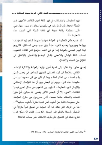 %u062c%u0645%u064a%u0639 %u0627%u0644%u062d%u0642%u0648%u0642 %u0645%u062d%u0641%u0648%u0638%u0629 %u0640 %u0627%u0625%u0644%u0639%u062a%u062f%u0627%u0621 %u0639%u0649%u0644 %u062d%u0642 %u0627%u0645%u0644%u0624%u0644%u0641 %u0628%u0627%u0644%u0646%u0633%u062e %u0623%u0648 %u0627%u0644%u0637%u0628%u0627%u0639%u0629 %u064a%u0639%u0631%u0636 %u0641%u0627%u0639%u0644%u0647 %u0644%u0644%u0645%u0633%u0627%u0626%u0644%u0629 %u0627%u0644%u0642%u0627%u0646%u0648%u0646%u064a%u06295961%u0627%u0644%u0641%u0635%u0644 %u0627%u0644%u062b%u0627%u0646%u064a: %u0627%u0644%u0639%u0648%u0644%u0645%u0629 %u0648%u0645%u0648%u062a %u0627%u0644%u0645%u0633%u0627%u0641%u0627%u062a%u062b%u0648%u0631%u0629 %u0627%u0644%u0645%u0639%u0644%u0648%u0645%u0627%u062a %u0648%u0627%u0627%u0644%u062a%u0635%u0627%u0627%u0644%u062a %u0641%u064a %u0642%u0647%u0631 %u062b%u0642%u0627%u0641%u0629 %u0627%u0644%u063a%u0631%u0628 %u0644%u0644%u062b%u0642%u0627%u0641%u0627%u062a %u0627%u0623%u0644%u062e%u0631%u0649. %u0641%u0645%u0646 %u0627%u0644%u062e%u0637%u0623 %u0627%u0627%u0644%u0639%u062a%u0642%u0627%u062f %u0628%u0623%u0646 %u0627%u0644%u0645%u0639%u0644%u0648%u0645%u0627%u062a %u0647%u064a %u0628%u0637%u0628%u064a%u0639%u062a%u0647%u0627 %u0645%u062d%u0627%u064a%u062f%u0629 %u0627%u0644 %u0636%u0631%u0631 %u0645%u0646%u0647%u0627. %u0641%u0647%u064a%u062a%u0623%u062a%u0649 %u0645%u062e%u062a%u0644%u0637%u0629 %u0628%u062b%u0642%u0627%u0641%u0629 %u0645%u0639%u064a%u0646%u0629 %u0623%u0649 %u062b%u0642%u0627%u0641%u0629 %u0627%u0644%u062f%u0648%u0644%u0629 %u0627%u0644%u062a%u064a %u0623%u0646%u062a%u062c%u062a %u0647%u0630%u0647 . )1 )%u0627%u0644%u0645%u0639%u0644%u0648%u0645%u0627%u062a%u064b %u0644%u0642%u062f %u0623%u0635%u0628%u062d %u0637%u0641%u0644 %u0627%u0644%u062e%u0637%u064a%u0626%u0629 %u0623%u0648 %u0644%u0646%u0627%u062a%u062c %u062b%u0648%u0631%u0629 %u0627%u0644%u0645%u0639%u0644%u0648%u0645%u0627%u062a%u064b %u0635%u0631%u064a%u062d%u0627%u0627%u0644%u0639%u0648%u0644%u0645%u0629 %u0646%u0645%u0648%u0630%u062c%u0627%u0648%u0645%u0631%u0648%u062c%u064a%u0647%u0627 %u0648%u0623%u0635%u0628%u062d %u0627%u0644%u063a%u0631%u0628 %u0639%u0628%u0627%u062f%u0627 %u0627%u0644%u0645%u0633%u062a%u0642%u0628%u0644. %u0641%u0627%u0644%u062a%u0631%u0648%u064a%u062c %u064b %u0628%u0631%u0648%u0627%u062f%u0647%u0627 %u0644%u0648%u062b%u0646 %u062c%u062f%u064a%u062f %u064a%u0633%u0645%u0649%u0644%u0647%u0630%u0627 %u0627%u0644%u0648%u0647%u0645 %u0627%u0644%u0645%u0633%u0645%u0649 %u0628%u0627%u0644%u0639%u0648%u0644%u0645%u0629 %u0625%u0646%u0645%u0627 %u0647%u0648 %u0641%u064a %u0627%u0623%u0644%u0635%u0644 %u0645%u0624%u0627%u0645%u0631%u0629 %u0644%u0642%u0647%u0631 %u062b%u0642%u0627%u0641%u0627%u062a %u0627%u0644%u0634%u0639%u0648%u0628 %u0644%u062d%u0633%u0627%u0628 %u062b%u0642%u0627%u0641%u0629 %u0627%u0644%u0647%u0627%u0645%u0634 %u0648%u0627%u0644%u0627%u0644%u0645%u0639%u0646%u0649 )%u0641%u0642%u062f%u0627%u0646 %u0627%u0644%u0647%u062f%u0641( %u0648%u0627%u0644%u0627%u0644%u0645%u0639%u064a%u0627%u0631 )%u0627%u0625%u0644%u062e%u0641%u0627%u0642 %u0641%u064a%u0627%u0644%u062a%u0648%u0627%u0641%u0642 %u0628%u064a%u0646 %u0627%u0644%u0647%u062f%u0641 %u0648%u0627%u0622%u0644%u0644%u064a%u0627%u062a(. : %u0648%u0627 %u0642%u0636%u064a%u0629 %u0623%u062e%u0631%u0649 %u062a%u0631%u062a%u0628%u0637 %u0628%u0627%u0644%u0639%u0648%u0644%u0645%u0629 %u0634%u0643%u0627%u0644%u064a%u0629 %u0627%u0625%u0644%u0639%u062a%u062f%u0627%u0621 %u0625%u062d%u062f%u0649 %u0639%u0634%u0631 %u0630%u0627 %u0646%u0638%u0631%u0646%u0627 %u0625%u0644%u0649%u0648%u0627%u0627%u0644%u062b%u0642%u0627%u0641%u064a %u0633%u0646%u0627%u0644%u062d%u0638 %u0623%u0646 %u0627%u0644%u0628%u062b %u0627%u0644%u0641%u0636%u0627%u0626%u0649 %u0627%u0644%u062a%u062c%u0627%u0631%u0649 %u0644%u0644%u062c%u0645%u0627%u0647%u064a%u0631 %u0641%u064a %u0628%u0639%u0636 %u0627%u0644%u062f%u0648%u0644 %u064b %u0628%u0647%u0627 %u0645%u0646%u064a%u0642%u062f%u0645 %u0644%u0645%u062d%u0627%u062a %u0645%u0646 %u0627%u0644%u0639%u0627%u0644%u0645 %u0627%u0644%u0645%u062a%u0642%u062f%u0645 %u0631%u0628%u0645%u0627 %u0644%u0645 %u062a%u0643%u0646 %u0645%u0646 %u0642%u0628%u0644 %u0645%u0635%u0631%u062d%u0627%u062d%u0643%u0648%u0645%u0627%u062a %u0647%u0630%u0647 %u0627%u0644%u062f%u0648%u0644. %u0648%u0628%u0631%u063a%u0645 %u0623%u0646 %u0627%u0644%u0628%u0639%u0636 %u064a%u0631%u0649 %u0623%u0646 %u0647%u0630%u0627 %u0627%u0644%u062a%u0648%u0627%u0635%u0644 %u0627%u0625%u0644%u0639%u0627%u0644%u0645%u064a%u0648%u0627%u0625%u0644%u0631%u0633%u0627%u0644 %u0627%u0644%u062c%u064a%u062f %u0644%u0644%u0645%u0639%u0644%u0648%u0645%u0627%u062a %u0642%u062f %u064a%u0642%u0631%u0628 %u0628%u064a%u0646 %u0627%u0644%u0634%u0639%u0648%u0628 %u0645%u0646 %u062e%u0627%u0644%u0644 %u062a%u0639%u0645%u064a%u0642 %u0641%u0647%u0645%u0647%u0627 %u064b %u0644%u0644%u062b%u0642%u0627%u0641%u0627%u062a %u0627%u0623%u0644%u062e%u0631%u0649%u060c %u0625%u0627%u0644 %u0623%u0646 %u064b %u0645%u062b%u064a %u0627%u0631%u0627%u0644%u0628%u0639%u0636 %u0627%u0622%u0644%u062e%u0631 %u064a%u062a%u0635%u0648%u0631 %u0623%u0646%u0647 %u0633%u064a%u0643%u0648%u0646 %u0623%u0645 %u0627%u0631%u0644%u0644%u0633%u062e%u0637 %u0648%u0627%u0627%u0644%u0633%u062a%u064a%u0627%u0621 %u0639%u0646%u062f%u0645%u0627 %u064a%u062d%u0635%u0644 %u0623%u0646%u0627%u0633 %u0645%u062d%u0631%u0648%u0645%u0648%u0646 %u0645%u0646 %u062d%u0642%u0648%u0642 %u0627%u0644%u0645%u0648%u0627%u0637%u0646%u0629%u064b %u0628%u0623%u0633%u0644%u0648%u0628 %u062d%u064a%u0627%u062a%u0647%u0645. )3 )%u0639%u0644%u0649 %u0645%u0639%u0644%u0648%u0645%u0627%u062a %u0643%u0627%u0641%u064a%u0629 %u0639%u0646 %u0623%u0633%u0644%u0648%u0628 %u0622%u062e%u0631 %u0644%u0644%u062d%u064a%u0627%u0629 %u0645%u0642%u0627%u0631%u0646%u0627%u064b %u0641%u064a%u064b %u0645%u062a%u0648%u0627%u0632%u0646%u0627%u0647%u0630%u0627 %u0641%u064a %u0627%u0644%u0648%u0642%u062a %u0627%u0644%u0630%u064a %u062a%u0641%u0634%u0644 %u0641%u064a%u0647 %u0622%u06