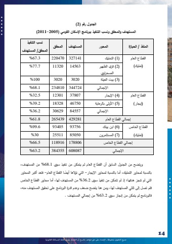 %u062c%u0645%u064a%u0639 %u0627%u0644%u062d%u0642%u0648%u0642 %u0645%u062d%u0641%u0648%u0638%u0629 %u0640 %u0627%u0625%u0644%u0639%u062a%u062f%u0627%u0621 %u0639%u0649%u0644 %u062d%u0642 %u0627%u0645%u0644%u0624%u0644%u0641 %u0628%u0627%u0644%u0646%u0633%u062e %u0623%u0648 %u0627%u0644%u0637%u0628%u0627%u0639%u0629 %u064a%u0639%u0631%u0636 %u0641%u0627%u0639%u0644%u0647 %u0644%u0644%u0645%u0633%u0627%u0626%u0644%u0629 %u0627%u0644%u0642%u0627%u0646%u0648%u0646%u064a%u062914 14%u0627%u0644%u062c%u062f%u0648%u0644 %u0631%u0642%u0645 )2 )%u0627%u0644%u0645%u0633%u062a%u0647%u062f%u0641 %u0648%u0627%u0644%u0645%u062d%u0642%u0642 %u0648%u0646%u0633%u0628 %u0627%u0644%u062a%u0646%u0641%u064a%u0630 %u0628%u0628%u0631%u0646%u0627%u0645%u062c %u0627%u0625%u0644%u0633%u0643%u0627%u0646 %u0627%u0644%u0642%u0648%u0645%u064a )2005 -2011 )%u0627%u0644%u0645%u0646%u0641%u0630 / %u0627%u0644%u062d%u064a%u0627%u0632%u0629 %u0627%u0644%u0645%u062d%u0648%u0631 %u0627%u0644%u0645%u0633%u062a%u0647%u062f%u0641 %u0627%u0644%u0645%u062d%u0642%u0642 %u0646%u0633%u0628 %u0627%u0644%u062a%u0646%u0641%u064a%u0630 %u0627%u0644%u0645%u062d%u0642%u0642/ %u0627%u0644%u0645%u0633%u062a%u0647%u062f%u0641 %u0627%u0644%u0642%u0637%u0627%u0639 %u0627%u0644%u0639%u0627%u0645 )%u062a%u0645%u0644%u064a%u0643()1 )%u0627%u0644%u062a%u0645%u0644%u064a%u0643 327141 220470 3.67 %)2 )%u0642%u0631%u064a %u0627%u0644%u0638%u0647%u064a%u0631%u0627%u0644%u0635%u062d %u0627%u0631%u0648%u064a14563 11320 7.77 %)3 )%u0628%u064a%u062a %u0627%u0644%u0639%u064a%u0644%u0629 3020 3020 100 %%u0627%u0625%u0644%u062c%u0645%u0627%u0644%u064a 344724 234810 1.68 %%u0627%u0644%u0642%u0637%u0627%u0639 %u0627%u0644%u0639%u0627%u0645 )%u0625%u064a%u062c%u0627%u0631()4 )%u0627%u0625%u0644%u064a%u062c%u0627%u0631 37807 12301 5.32 %)5 )%u0627%u0623%u0644%u0648%u0644%u0649 %u0628%u0627%u0644%u0631%u0639%u0627%u064a%u0629 46750 18328 2.39 %%u0627%u0625%u0644%u062c%u0645%u0627%u0644%u064a 84557 30629 2.36 %%u0625%u062c%u0645%u0627%u0644%u064a %u0627%u0644%u0642%u0637%u0627%u0639 %u0627%u0644%u0639%u0627%u0645 429281 265439 8.61 %%u0627%u0644%u0642%u0637%u0627%u0639 %u0627%u0644%u062e%u0627%u0635 )%u062a%u0645%u0644%u064a%u0643()6 )%u0627%u0628%u0646 %u0628%u064a%u062a%u0643 93756 93405 6.99 %)7 )%u0627%u0644%u0645%u0633%u062a%u062b%u0645%u0631%u0648%u0646 85050 25511 30 %%u0625%u062c%u0645%u0627%u0644%u064a %u0627%u0644%u0642%u0637%u0627%u0639 %u0627%u0644%u062e%u0627%u0635 178806 118916 5.66 %%u0627%u0625%u0644%u062c%u0645%u0627%u0644%u064a 608087 384355 2.63 % %u0648 %u064a%u062a%u0636%u062d %u0645%u0646 %u0627%u0644%u062c%u062f%u0648%u0644 %u0627%u0644%u0633%u0627%u0628%u0642 %u0623%u0646 %u0627%u0644%u0642%u0637%u0627%u0639 %u0627%u0644%u0639%u0627%u0645 %u0644%u0645 %u064a%u062a%u0645%u0643%u0646 %u0645%u0646 %u062a%u0646%u0641%u064a%u0630 %u0633%u0648%u064a 1.68 %%u0645%u0646 %u0627%u0644%u0645%u0633%u062a%u0647%u062f%u0641%u060c %u062a%u0648%u0627%u0644%u0647%u0627 %u0623%u064a - %u0641%u062a%u0639%u062f %u0623%u0643%u0628%u0631 %u0627%u0644%u0645%u062d%u0627%u0648%u0631 %u064b%u0636 %u0628%u0627%u0644%u0646%u0633%u0628%u0629 %u0644%u0645%u062d%u0627%u0648%u0631 %u0627%u0644%u062a%u0645%u0644%u064a%u0643%u060c %u0623%u0645%u0627 %u0628%u0627%u0644%u0646%u0633%u0628%u0629 %u0644%u0645%u062d%u0627%u0648%u0631 %u0627%u0625%u0644%u064a%u062c%u0627%u0631 - %u0627%u0644%u062a%u064a %u0627 %u0627%u0644%u0642%u0637%u0627%u0639 %u0627%u0644%u0639%u0627%u0645%u0627%u0644%u062a%u064a %u0644%u0645 %u062a%u0646%u062c%u0632 %u0647%u062f%u0641%u0647%u0627%u061b %u0625%u0630 %u0644%u0645 %u062a%u062a%u0645%u0643%u0646 %u0645%u0646 %u062a%u0646%u0641%u064a%u0630 %u0633%u0648%u0649 2.36 %%u0645%u0646 %u0627%u0644%u0645%u0633%u062a%u0647%u062f%u0641 %u0644%u0647%u0627%u060c %u0623%u0645%u0627 %u0645%u062d%u0627%u0648%u0631 %u0627%u0644%u0642%u0637%u0627%u0639 %u0627%u0644%u062e%u0627%u0635 %u0641%u0644%u0645 %u062a%u0635%u0644 %u0625%u0644%u0649 %u062b%u0644%u062b%u064a %u0627%u0644%u0645%u0633%u062a%u0647%u062f%u0641 %u0644%u0647%u0627%u060c %u0648%u0645%u0646 %u0647%u0646%u0627 %u064a%u062a%u0636%u062d %u0636%u0639%u0641 %u0648%u0639%u062f%u0645 %u0642%u062f%u0631%u0629 %u0627%u0644%u0628%u0631%u0646%u0627%u0645%u062c %u0639%u0644%u0649 %u062a%u062d%u0642%u064a%u0642 %u0627%u0644%u0645%u0633%u062a%u0647%u062f%u0641 %u0645%u0646%u0647%u060c %u0641%u0627%u0644%u0628%u0631%u0646%u0627%u0645%u062c %u0644%u0645 %u064a%u062a%u0645%u0643%u0646 %u0645%u0646 %u0625%u0646%u062c%u0627%u0632 %u0633%u0648%u064a 2.63 %%u0645%u0646 %u0625%u062c%u0645%u0627%u0644%u064a %u0627%u0644%u0645%u0633%u062a%u0647%u062f%u0641 .