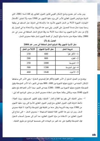 %u062c%u0645%u064a%u0639 %u0627%u0644%u062d%u0642%u0648%u0642 %u0645%u062d%u0641%u0648%u0638%u0629 %u0640 %u0627%u0625%u0644%u0639%u062a%u062f%u0627%u0621 %u0639%u0649%u0644 %u062d%u0642 %u0627%u0645%u0644%u0624%u0644%u0641 %u0628%u0627%u0644%u0646%u0633%u062e %u0623%u0648 %u0627%u0644%u0637%u0628%u0627%u0639%u0629 %u064a%u0639%u0631%u0636 %u0641%u0627%u0639%u0644%u0647 %u0644%u0644%u0645%u0633%u0627%u0626%u0644%u0629 %u0627%u0644%u0642%u0627%u0646%u0648%u0646%u064a%u062916 16 %u0648%u0645%u0646 %u062c%u0627%u0646%u0628 %u0622%u062e%u0631 %u062e%u0636%u0639 %u0628%u0631%u0646%u0627%u0645%u062c %u0627%u0625%u0644%u0633%u0643%u0627%u0646 %u0627%u0644%u0642%u0648%u0645%u064a %u0644%u0642%u0627%u0646%u0648%u0646 %u0627%u0644%u062a%u0645%u0648%u064a%u0644 %u0627%u0644%u0639%u0642%u0627%u0631%u064a %u0631%u0642%u0645 148 %u0644%u0633%u0646%u0629 2001 %u060c%u0627%u0644%u0630%u064a %u0627%u0634%u062a%u0631%u0637 %u0645%u0646%u062d %u0642%u0631%u0636 %u0627%u0644%u062a%u0645%u0648%u064a%u0644 %u0627%u0644%u0639%u0642%u0627%u0631%u064a %u0644%u0623%u0644%u0633%u0631 %u0627%u0644%u062a%u0649 %u064a%u0632%u064a%u062f %u062f%u062e%u0644%u0647%u0627 %u0627%u0644%u0634%u0647%u0631%u0649 %u0639%u0646 1500 %u062c%u0646%u064a%u0647%u060c %u0648%u0623%u0627%u0644 %u062a%u062a%u062c%u0627%u0648%u0632 %u0627%u0623%u0644%u0642%u0633%u0627%u0637/ %u0627%u0625%u0644%u064a%u062c%u0627%u0631%u0627%u062a %u0627%u0644%u0634%u0647%u0631%u064a%u0629 25 %%u0645%u0646 %u0627%u0644%u062f%u062e%u0644 %u0627%u0644%u0634%u0647%u0631%u064a %u0644%u0623%u0644%u0633%u0631%u0629%u060c %u0647%u0630%u0627 %u0628%u0627%u0625%u0644%u0636%u0627%u0641%u0629 %u0625%u0644%u0649 %u0627%u0634%u062a%u0631%u0627%u0637 %u0639%u0645%u0644 %u0627%u0644%u0645%u0633%u062a%u0641%u064a%u062f %u0641%u0649 %u0648%u0638%u064a%u0641%u0629 %u064b %u0644%u0644%u062d%u0635%u0648%u0644 %u0639%u0644%u0649 %u0627%u0644%u0642%u0631%u0636. %u0648%u0641%u064a %u0636%u0648%u0621 %u0647%u0630%u0647 %u0627%u0644%u0634%u0631%u0648%u0637%u060c %u0648%u0628%u0627%u0627%u0644%u0633%u062a%u0639%u0627%u0646%u0629 %u0628%u0645%u0627 %u0641%u064a %u0627%u0644%u062c%u062f%u0648%u0644 %u0631%u0642%u0645 %u0631%u0633%u0645%u064a%u0629 %u0628%u062d%u064a%u062b %u062a%u0645%u062b%u0644 %u0636%u0645%u0627%u0646%u0627% %u0645%u0646%u0647 %u0648%u0641%u0642 %u0634%u0631%u0627%u0626%u062d %u0627%u0644%u062f%u062e%u0644 %u0627%u0644%u0645%u062e%u062a%u0644%u0641%u0629 %u0641%u064a %u0645%u0635%u0631 %u0641%u064a %u0639%u0627%u0645 %u064b )3 )%u0639%u0646 %u062f%u062e%u0644 %u0627%u0623%u0644%u0633%u0631%u0629 %u0627%u0644%u0634%u0647%u0631%u0649 %u0648%u0645%u0627 %u062a%u0645%u062b%u0644%u0647 %u0646%u0633%u0628%u0629 25 %u0627 %u06442006 ,%u064a%u0645%u0643%u0646%u0646%u0627 %u0645%u0639%u0631%u0641%u0629 %u0645%u062f %u0649 %u0645%u0646%u0627%u0633%u0628%u0629 %u0645%u0628%u0627%u0644%u063a %u0627%u0625%u0644%u064a%u062c%u0627%u0631 %u0623%u0648 %u0627%u0644%u0642%u0633%u0637 %u0627%u0644%u0634%u0647%u0631%u0649 %u0644%u062f%u062e%u0644 %u0637%u0628%u0642%u0629 %u0645%u062d%u062f%u0648%u062f%u064a %u0627%u0644%u062f%u062e%u0644.%u0627%u0644%u062c%u062f%u0648%u0644 %u0631%u0642%u0645 )3 )%u062f%u062e%u0644 %u0627%u0623%u0644%u0633%u0631%u0629 %u0627%u0644%u0634%u0647%u0631%u0649 %u0648%u0641%u0627%u0642%u0627 %u0644%u0634%u0631%u0627%u0626%u062d %u0627%u0644%u062f%u062e%u0644 %u0627%u0644%u0645%u062e%u062a%u0644%u0641%u0629 %u0641%u0649 %u0645%u0635%u0631 %u0639%u0627%u0645 2006%u0634%u0631%u064a%u062d%u0629 %u0627%u0644%u062f%u062e%u0644 %u062f%u062e%u0644 %u0627%u0623%u0644%u0633%u0631%u0629 %u0627%u0644%u0634%u0647%u0631%u0649 25 %%u0645%u0646 %u0627%u0644%u062f%u062e%u0644 %u064b%u0631 600 1501 -%u0627%u0623%u0644%u0643%u062b%u0631 %u0641%u0642 %u06272 -%u0627%u0644%u0641%u0642%u0631%u0627%u0621 800 2003 -%u0627%u0644%u0645%u062a%u0648%u0633%u0637 1000 2504 -%u0641%u0648%u0642 %u0627%u0644%u0645%u062a%u0648%u0633%u0637 1200 3005 -%u0627%u0623%u0644%u063a%u0646%u064a%u0627%u0621 1840 460%u064b%u0631 )%u0645%u062d%u062f%u0648%u062f%u064a %u0627%u0644%u062f%u062e%u0644( - %u0648%u0647%u064a %u0627%u0623%u0644%u0633%u0631 %u0627%u0644%u062a%u0649 %u064a%u0633%u062a%u0647%u062f%u0641%u0647%u0627 %u0648 %u064a%u062a%u0636%u062d %u0645%u0646 %u0627%u0644%u062c%u062f%u0648%u0644 %u0627%u0644%u0633%u0627%u0628%u0642 %u0623%u0646 %u0627%u0623%u0644%u0633%u0631 %u0627%u0644%u0641%u0642%u064a%u0631%u0629 %u0648%u0627%u0623%u0644%u0643%u062b%u0631 %u0641%u0642 %u0627%u0627%u0625%u0644%u0633%u0643%u0627%u0646 %u0627%u0627%u0644%u062c%u062a%u0645%u0627%u0639%u0649 - %u062a %u062a%u0631%u0627%u0648%u062d %u062f%u062e%u0648%u0644%u0647%u0627 %u0627%u0644%u0634%u0647%u0631%u064a%u0629 %u0628%u064a%u0646 600 : 800 %u062c%u0646%u064a%u0647 %u0641%u0649 %u0627%u0644%u0634%u0647%u0631%u060c %u0623%u0645%u0627 %u0627%u0623%u0644%u0633%u0631 %u0627%u0644%u0645%u062a%u0648%u0633%u0637%u0629 %u0648%u0641%u0648%u0642%u0627%u0644%u0645%u062a%u0648%u0633%u0637%u0629%u060c %u0641%u062a%u062a%u0631%u0627%u0648%u062d %u062f%u062e%u0648%u0644%u0647%u0627 %u0627%u0644%u0634%u0647%u0631%u064a%u0629 %u0628%u064a%u0646 1000 : 1200 %u062c%u0646%u064a%u0647 %u0641%u0649 %u0627%u0644%u0634%u0647%u0631%u060c %u0628%u064a%u0646%u0645%u0627 %u0627%u0623%u0644%u0633%u0631 %u0627%u0644%u063a%u0646%u064a%u0629 %u0641%u0642%u062f %u0628%u0644%u063a %u062f%u062e%u0644%u0647%u0645 %u0627%u0644%u0634%u0647%u0631%u064a 1840 %u062c%u0646%u064a%u0647%u060c %u0648%u0628%u0627%u0644%u062a%u0627%u0644%u0649 %u064a%u0645%u0643%u0646%u0646%u0627 %u0645%u0639%u0631%u0641%u0629 %u0645%u062f%u0649 %u0627%u0633%u062a%u0641%u0627%u062f%u0629 %u0645%u062d%u062f%u0648%u062f%u064a %u0627%u0644%u062f%u062e%u0644 %u0645%u0646 %u0645%u062d%u0627%u0648%u0631 %u0627%u0644%u0628%u0631%u0646%u0627%u0645%u062c%u060c %u0643%u0645%u0627 %u064a%u0644%u064a :%u0623- %u0645%u062d%u0627%u0648%u0631 %u0627%u0644%u062a%u0645%u0644%u064a%u0643 %u0627%u0644%u062a%u064a %u064a%u0642%u0648%u0645 %u0628%u0647%u0627 %u0627%u0644%u0642%u0637%u0627%u0639 %u062
